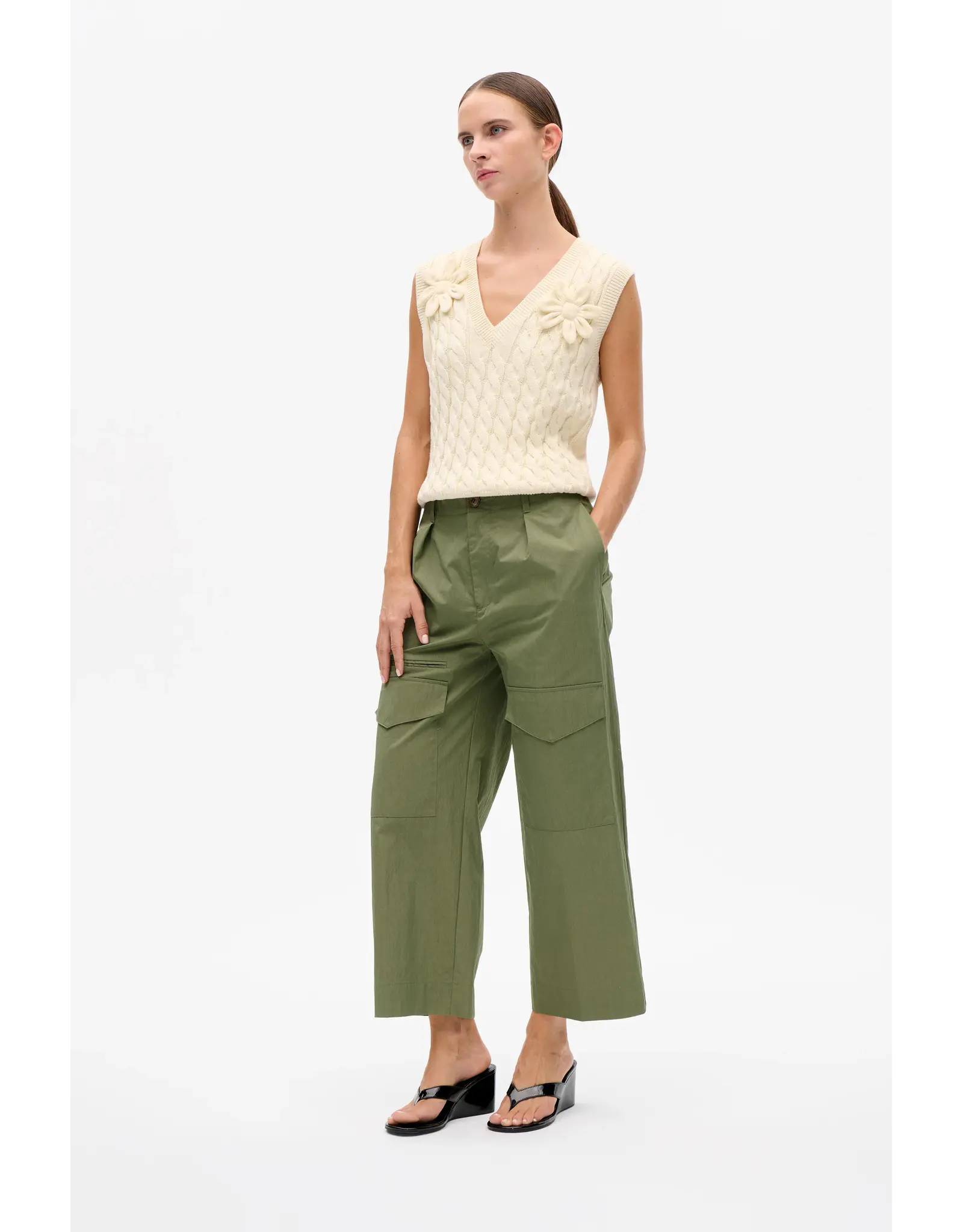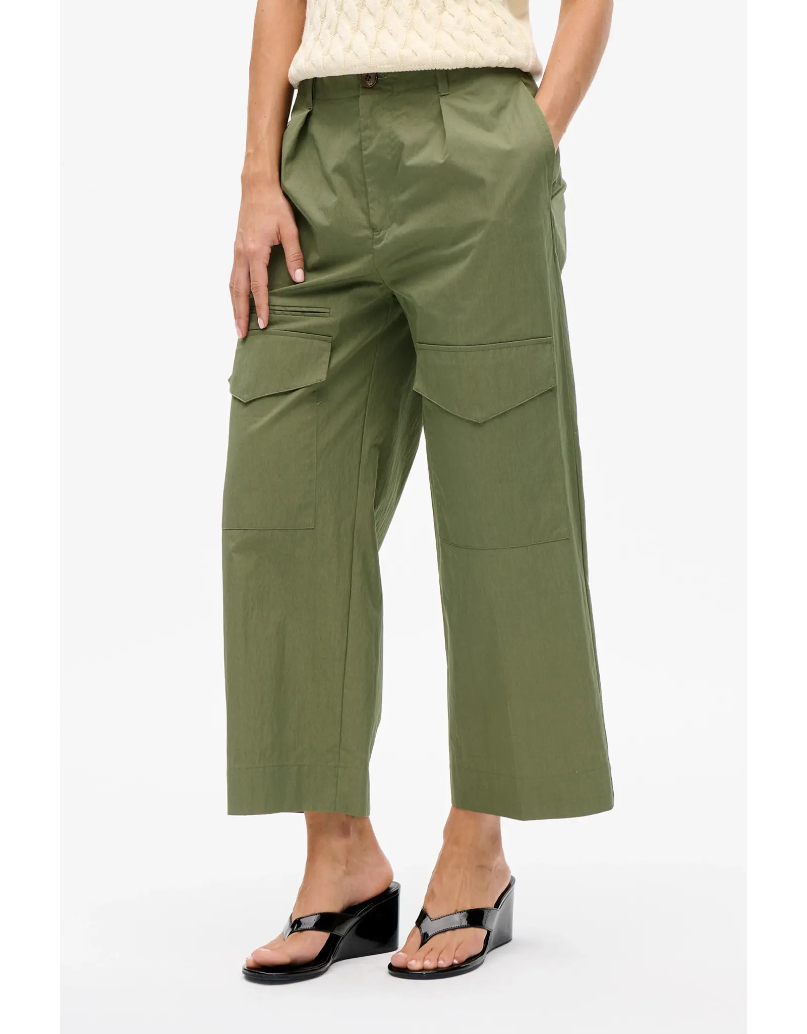 The Neria Trousers have a cargo-inspired design. Made in a cotton blend, they have a high waist with wide legs and pleats at the waistband, multiple pockets and belt loops.