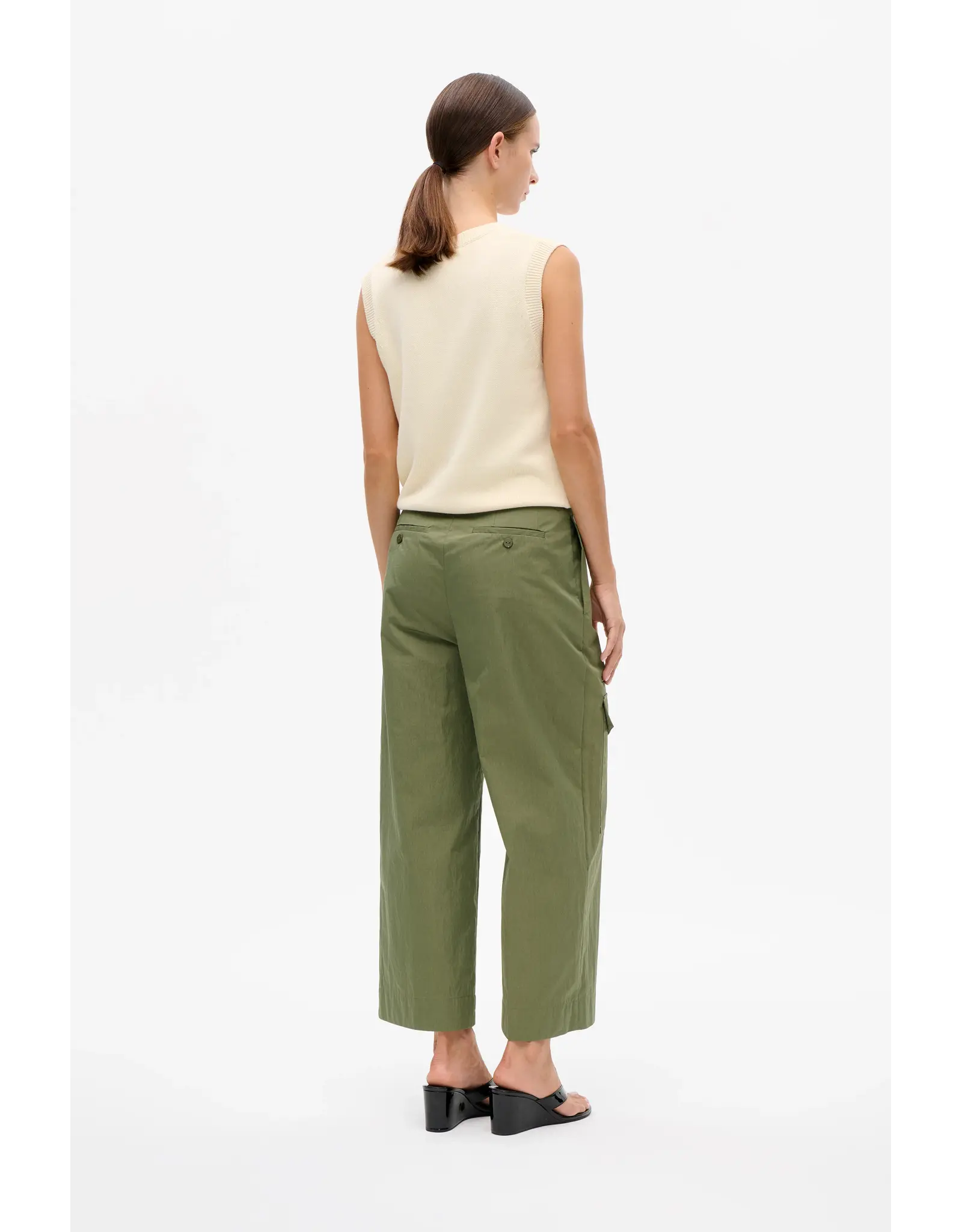 - Pleats at the waistband