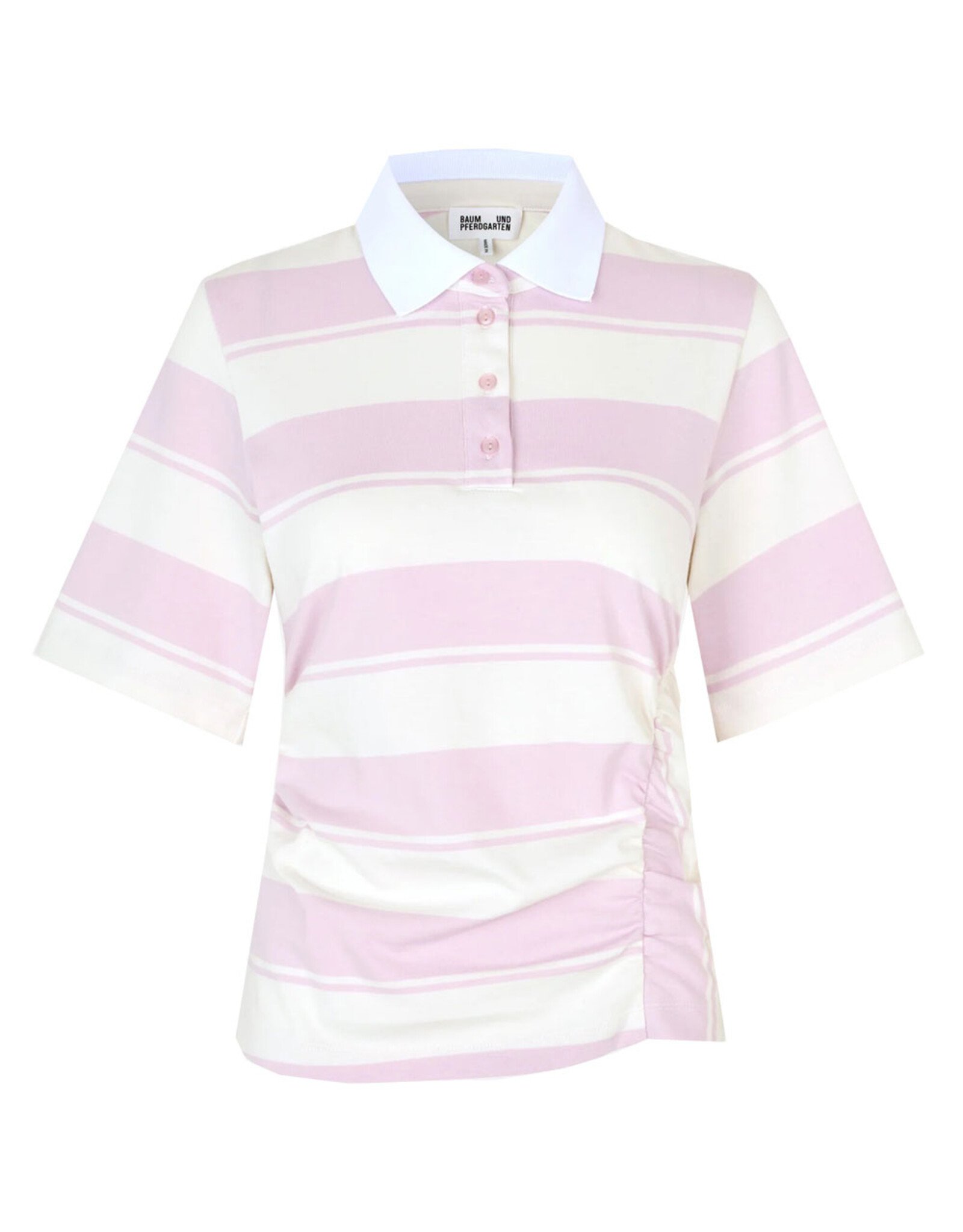 The Judite Top is a classic short-sleeved polo shirt made in soft organic cotton jersey. Designed with a relaxed, straight fit and ribbed collar with a three-button closure and ruching at the sides that creates a flattering drape.