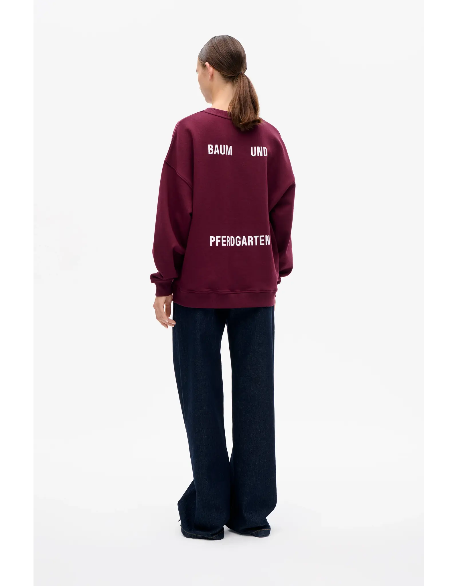 The Julle Sweatshirt is made in the softest organic cotton, it has an oversized fit with dropped shoulders and a classic crew neck. The sweatshirt has ribbed hemlines and a printed Baum und Pferdgarten logo at the chest and back.