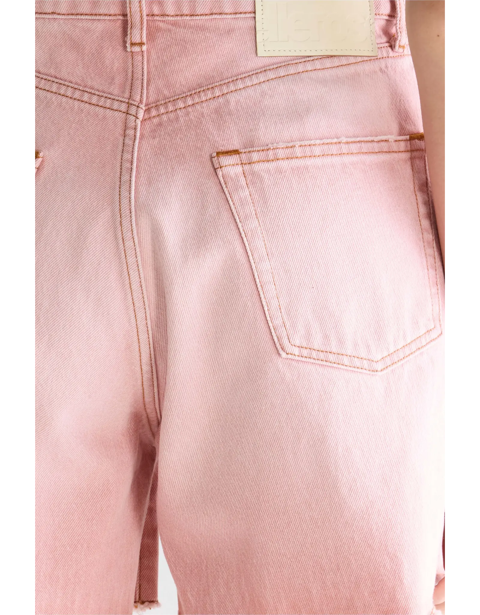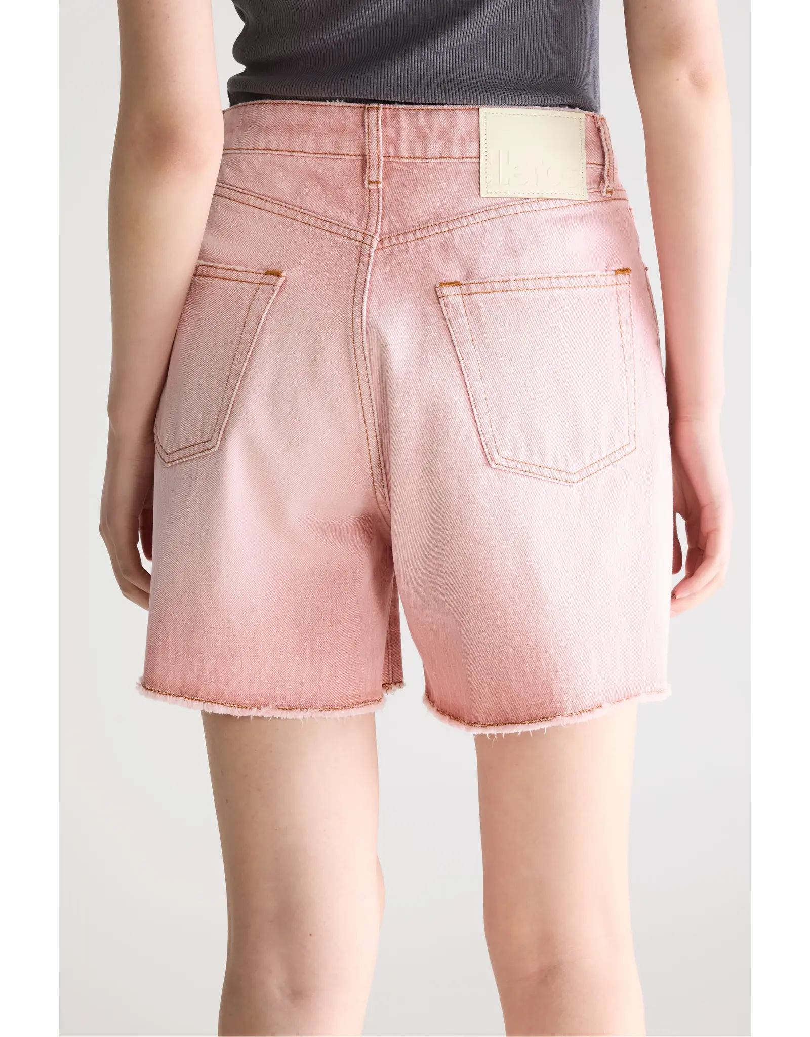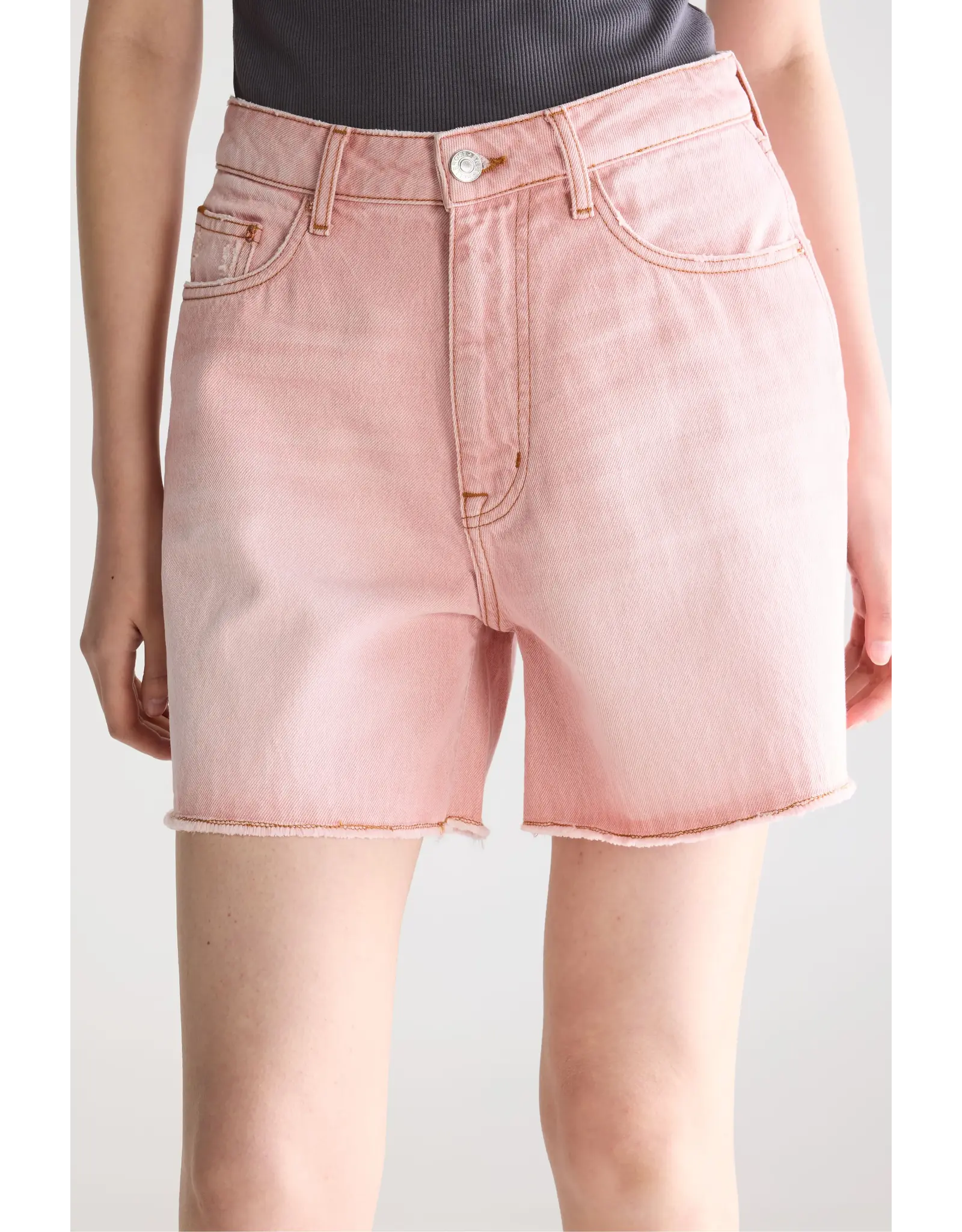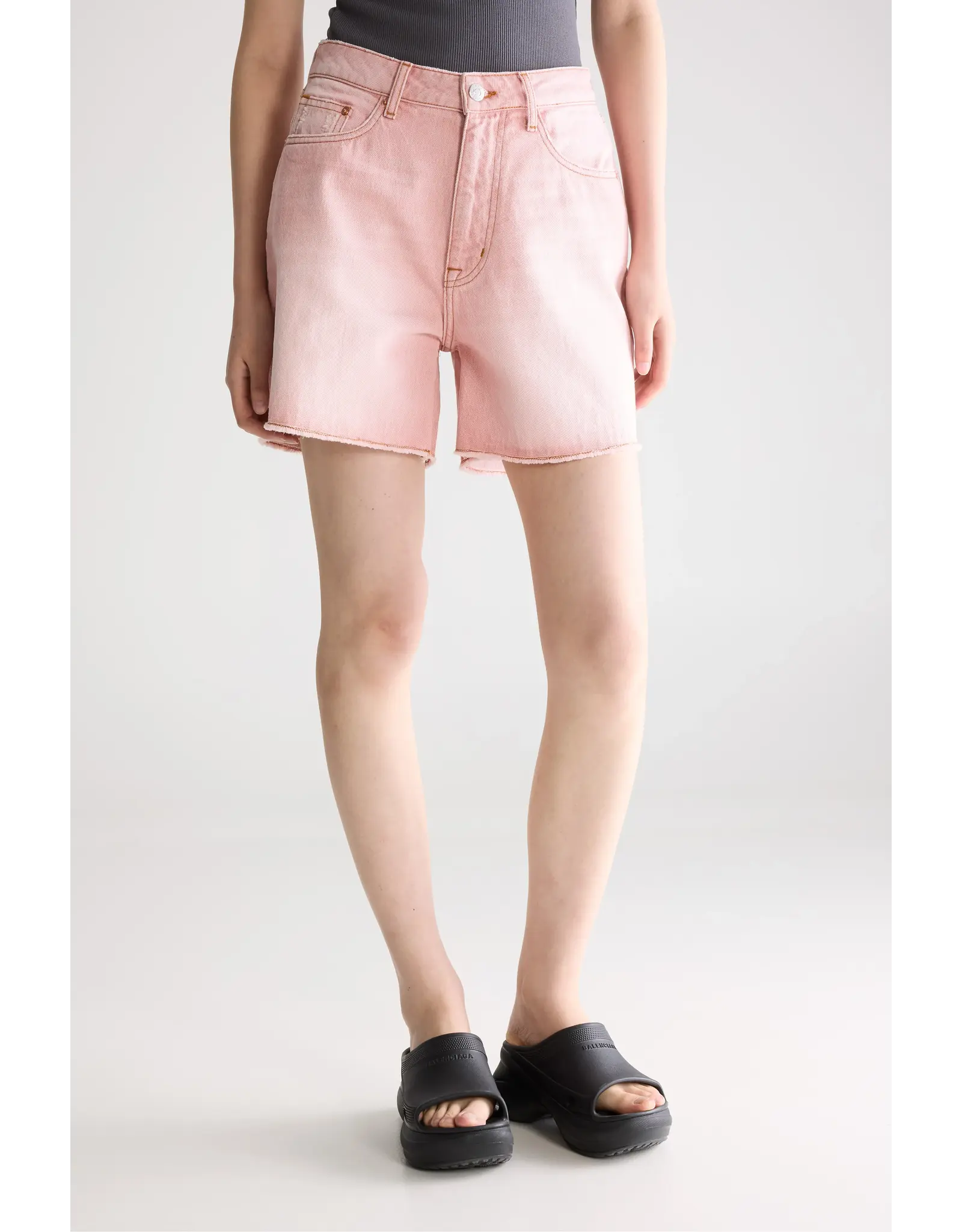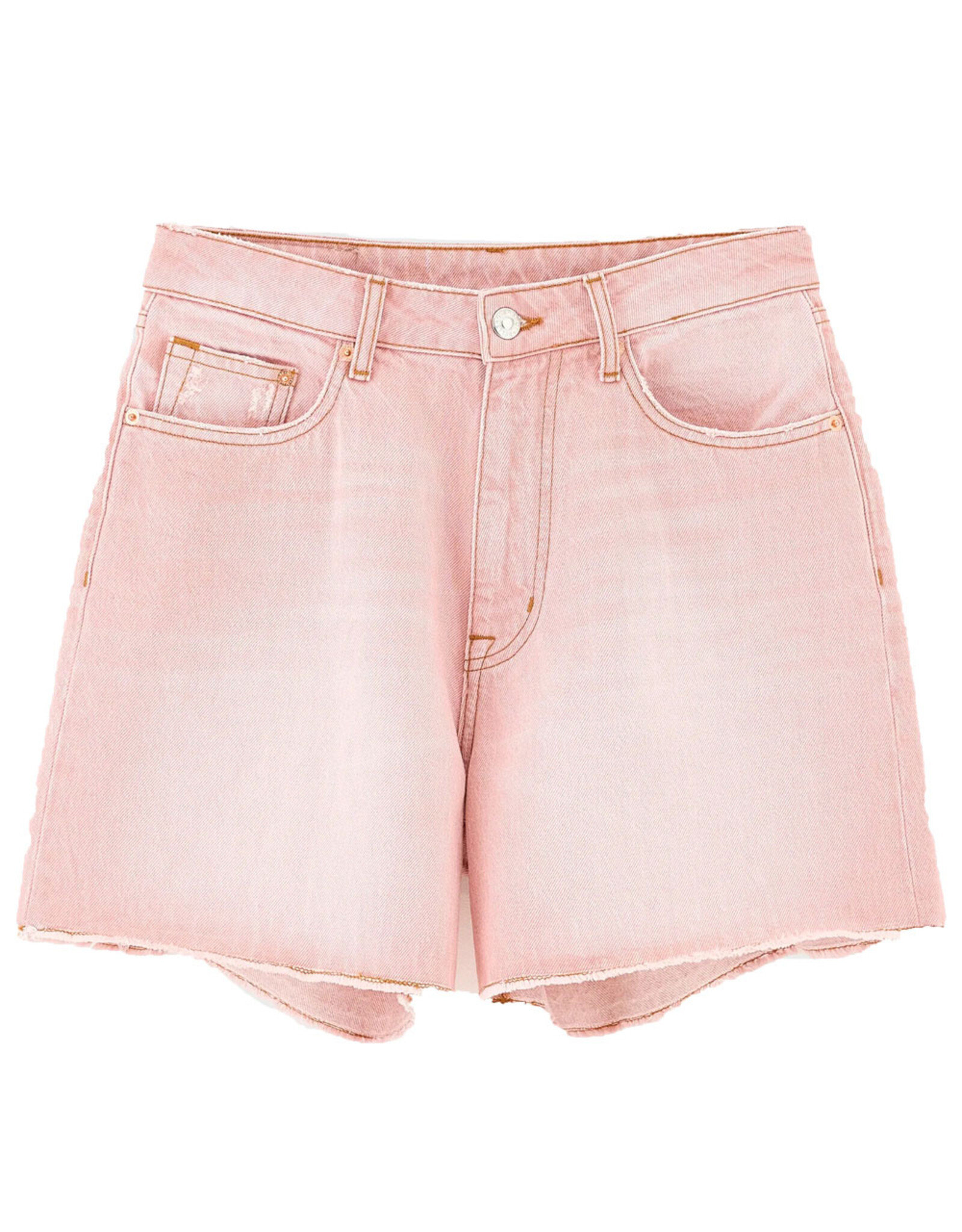 Boyfriend shorts van vervaagde roze denim met een langer silhouet, wijde pijpen en onafgewerkte zoom.Denim bermuda