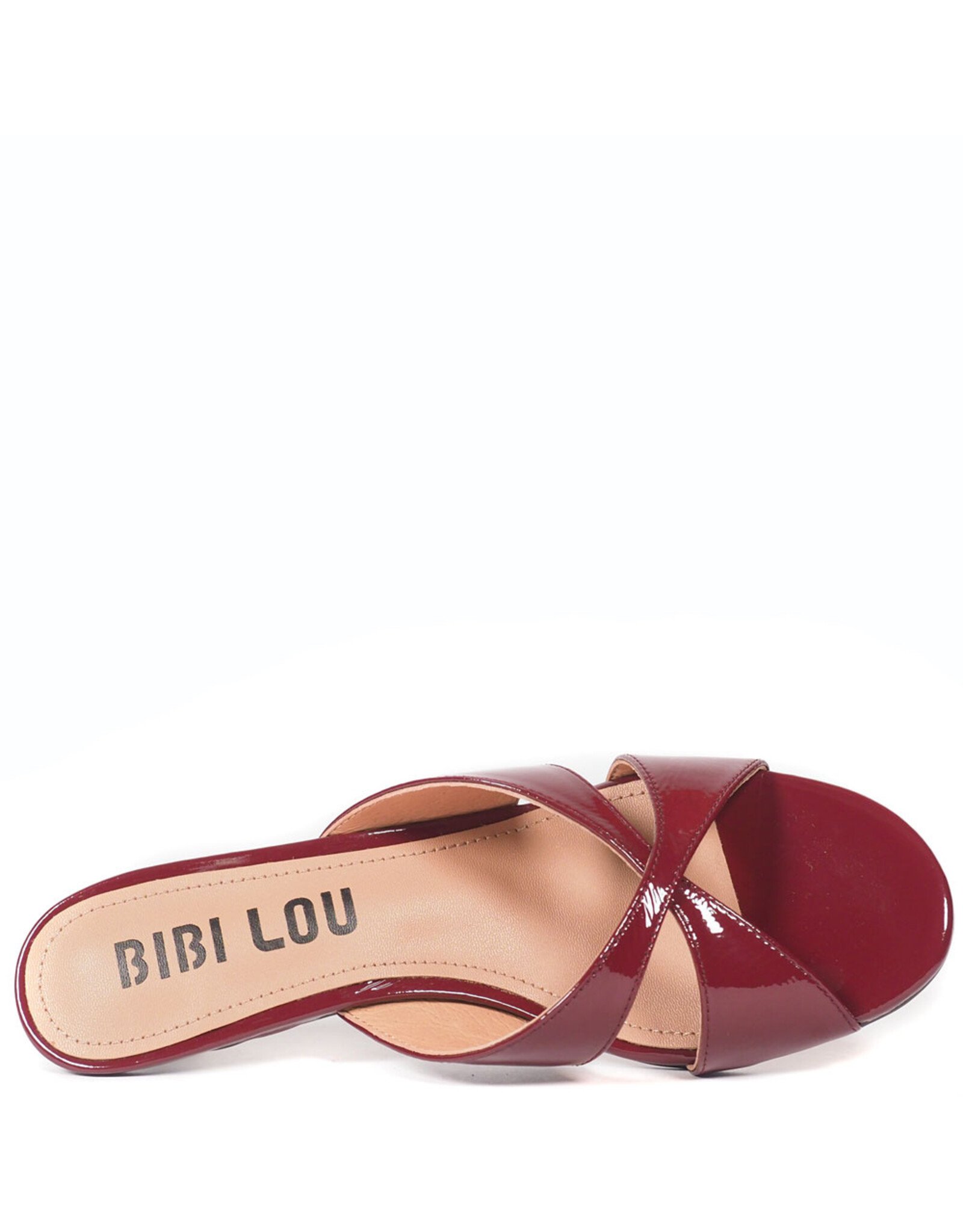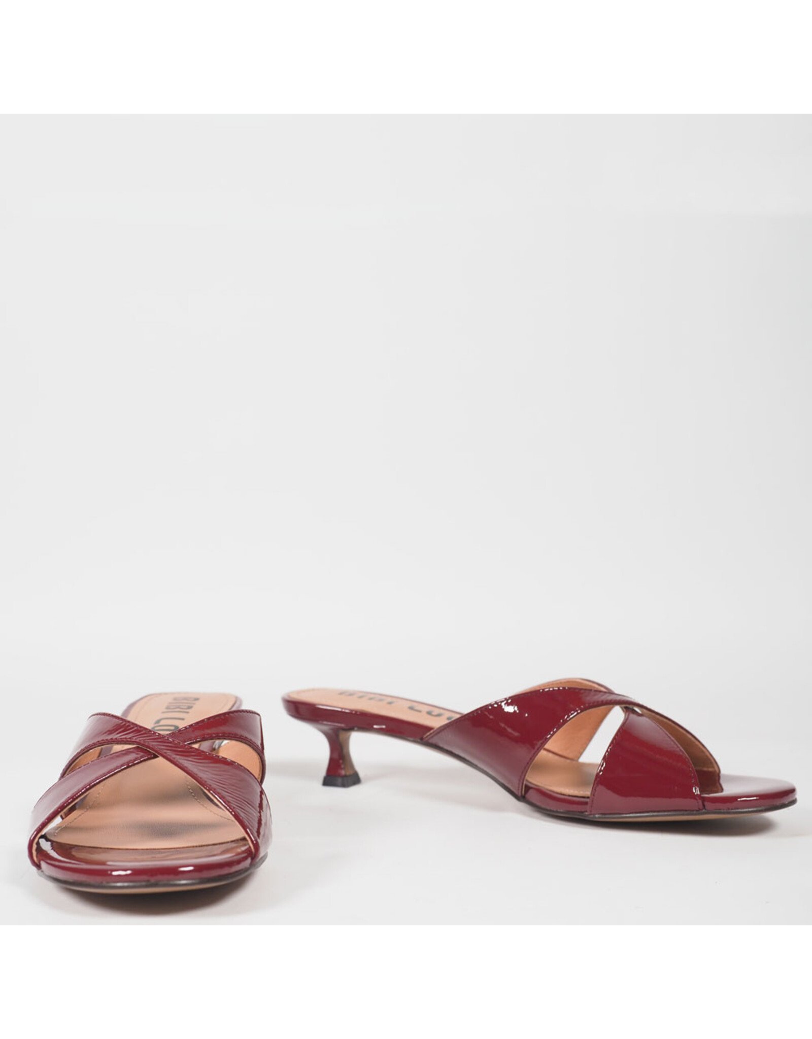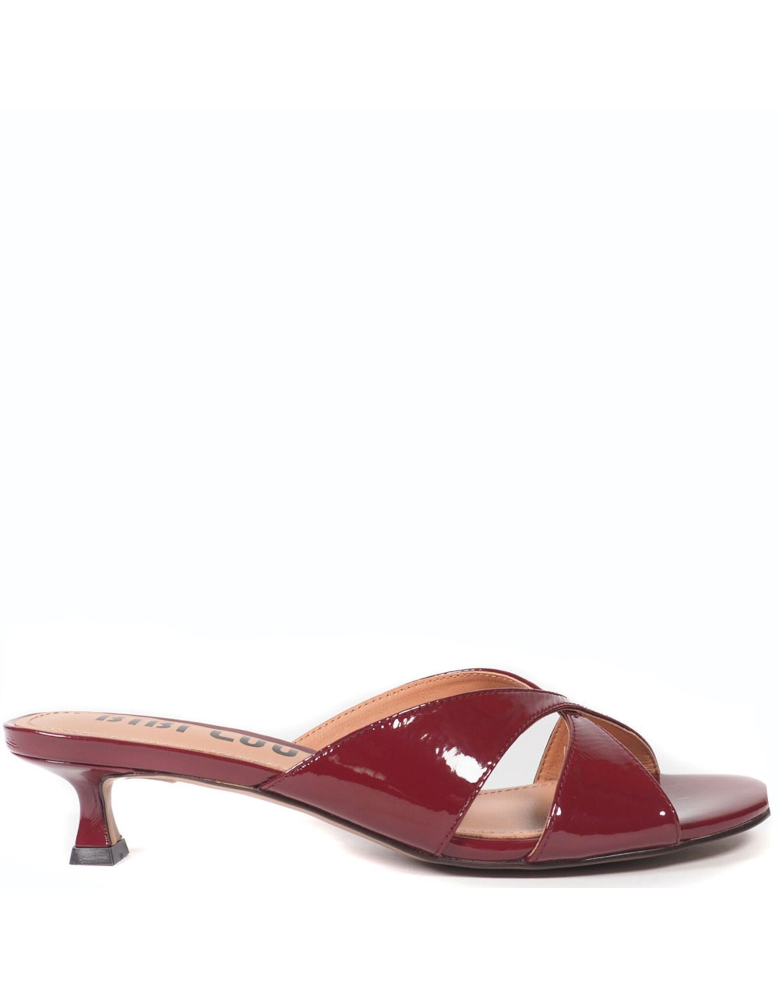 Stijlvolle muil uitgevoerd in glanzend bordeauxrood lakleer. De gekruiste banden over de wreef zorgen voor een elegante en flatterende pasvorm, terwijl de open teen een luchtige en zomerse uitstraling geeft. Het subtiele, licht uitlopende hakje voegt een verfijnd en vrouwelijk accent toe zonder in te leveren op comfort. Ideaal voor zowel casual chic als meer geklede momenten.