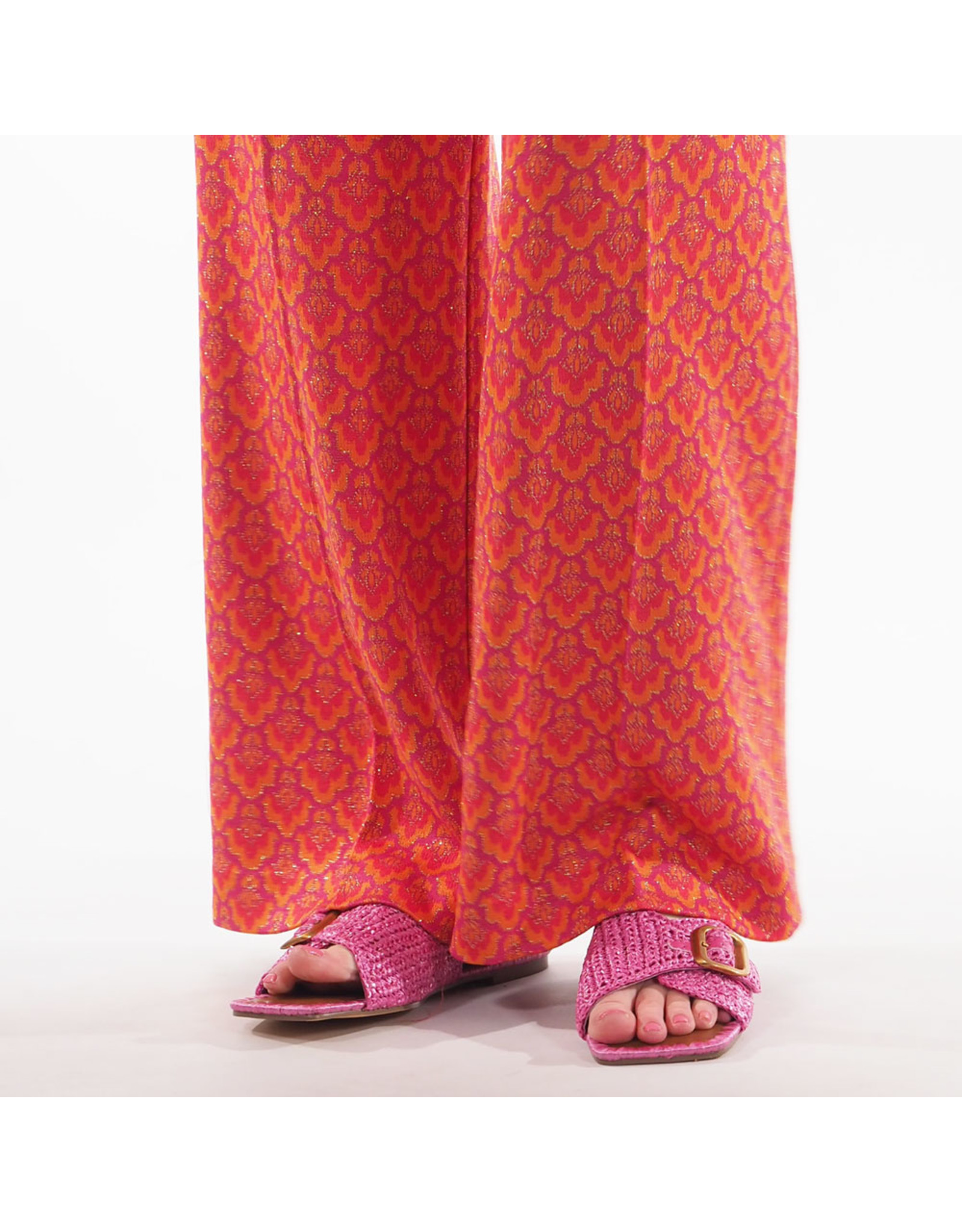 Fuchsia roze slippers met brede band van raffia en goudkleurige gesp. De ideale slipper voor de zomer!