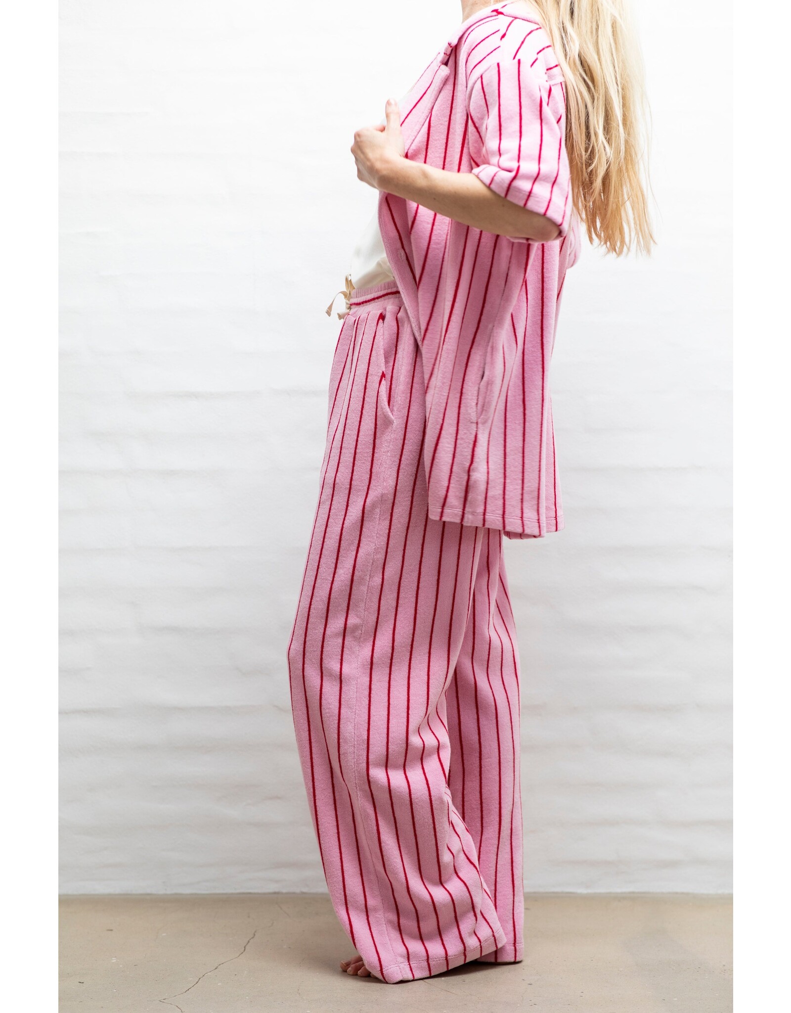 Linnen met contrasterende kleuren of een dessin kan doorlopen. Was een linnen kledingstuk daarom zeker de eerste paar wasbeurten op de hand of apart in de machine (maximaal 30ºC). In beide gevallen kunt u een anti-doorloop-doekje. Gebruik weinig vloeibaar wasmiddel en voeg 1 dl natuurazijn toe, dat houdt de kleuren beter vast. Laat bij handwas het kledingstuk nooit in het water staan. Breng het kledingstuk in model voordat u het laat drogen.