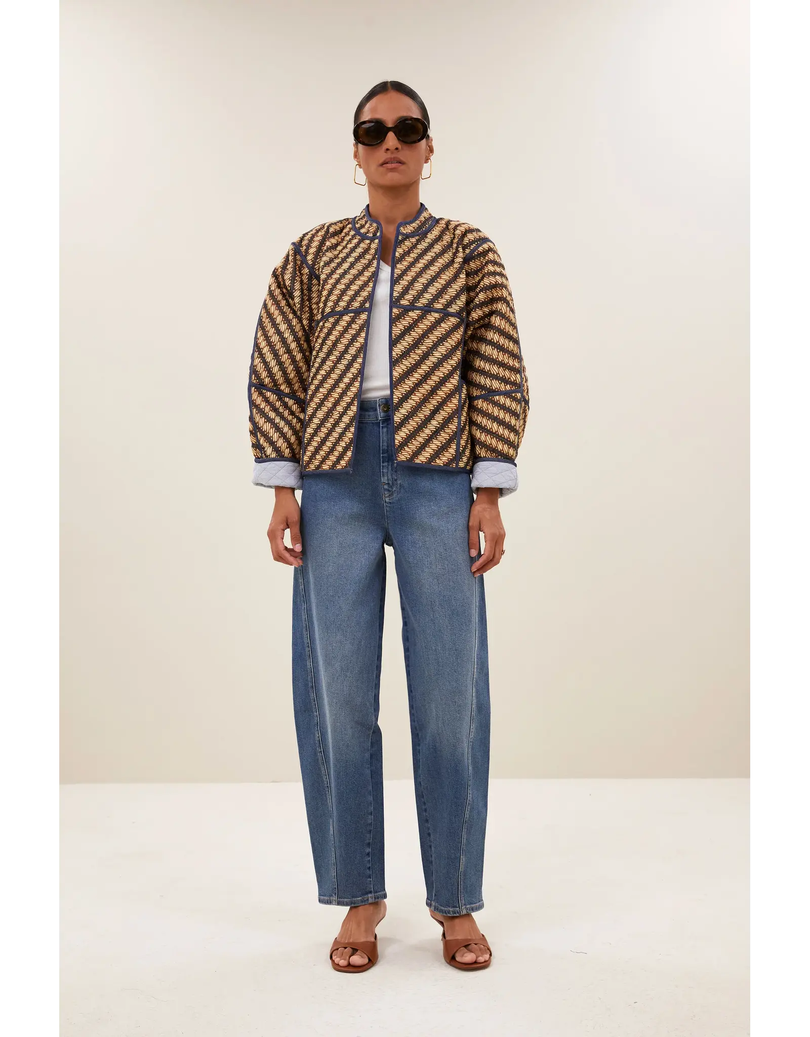 Ontdek de blossom manilla jacket met een losvallende pasvorm die moeiteloos comfort en stijl combineert. Deze casual jas heeft een ronde halslijn en handige zijzakken, perfect voor dagelijks gebruik. het lichte, geprinte ontwerp maakt het een veelzijdige keuze voor elke casual outfit. Ideaal voor wie op zoek is naar een ontspannen en modieuze look.