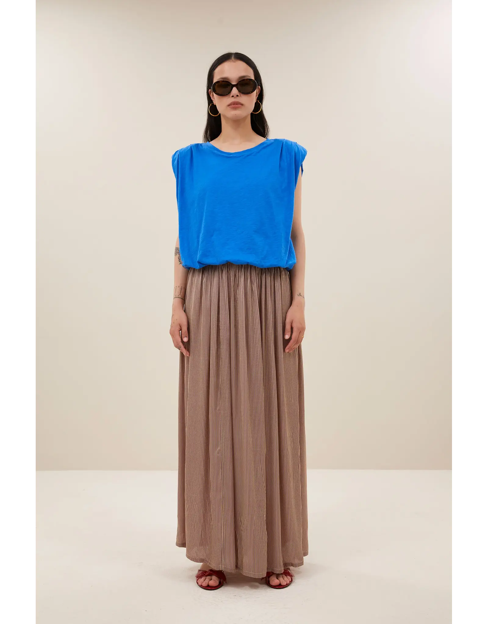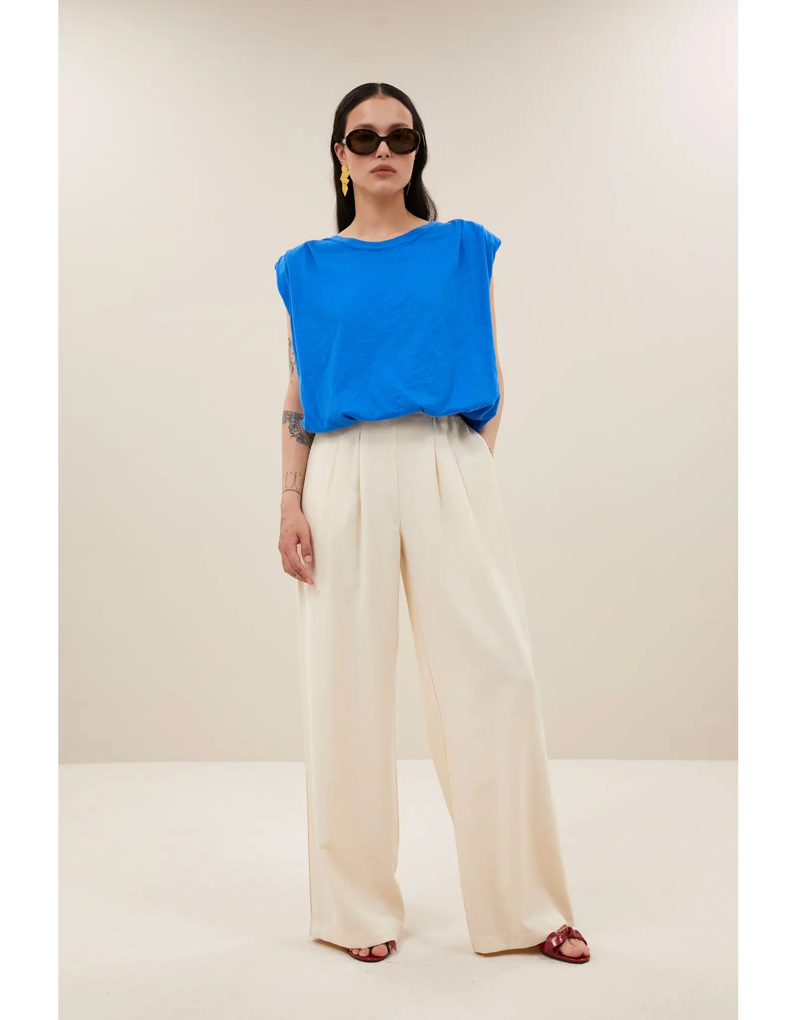 De nilou jersey top combineert een casual chic stijl met een comfortabele normale pasvorm. Dankzij de geplooide details en de ronde halslijn krijgt deze top een verfijnde uitstraling. De top heeft schoudervullingen. Ideaal voor wie stijl en comfort wil combineren.