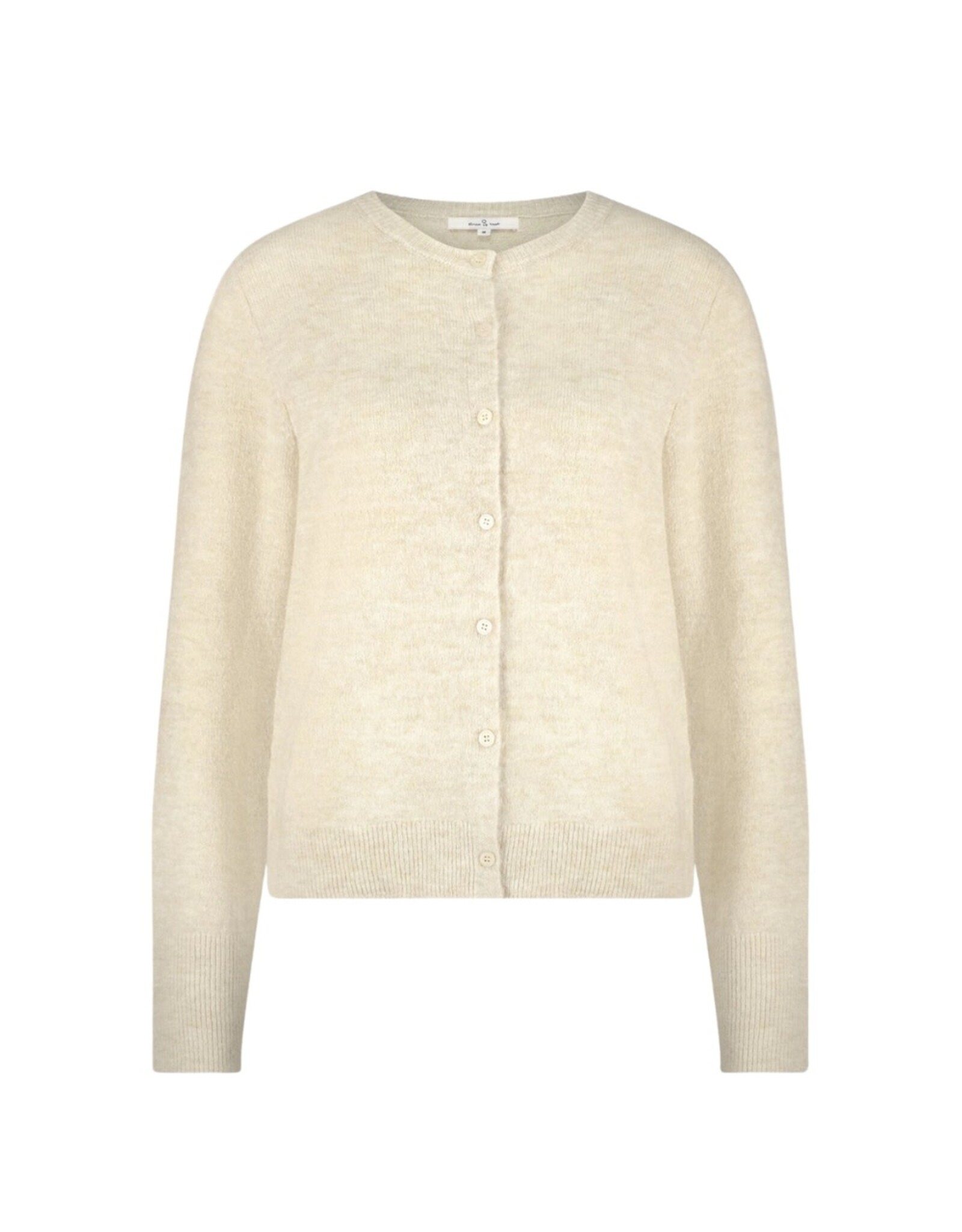 Een gebreid vest met sluitknopen langs de voorzijde, uitgevoerd in een creme tint. De Andy cardigan heeft regular fit en een ronde hals.
