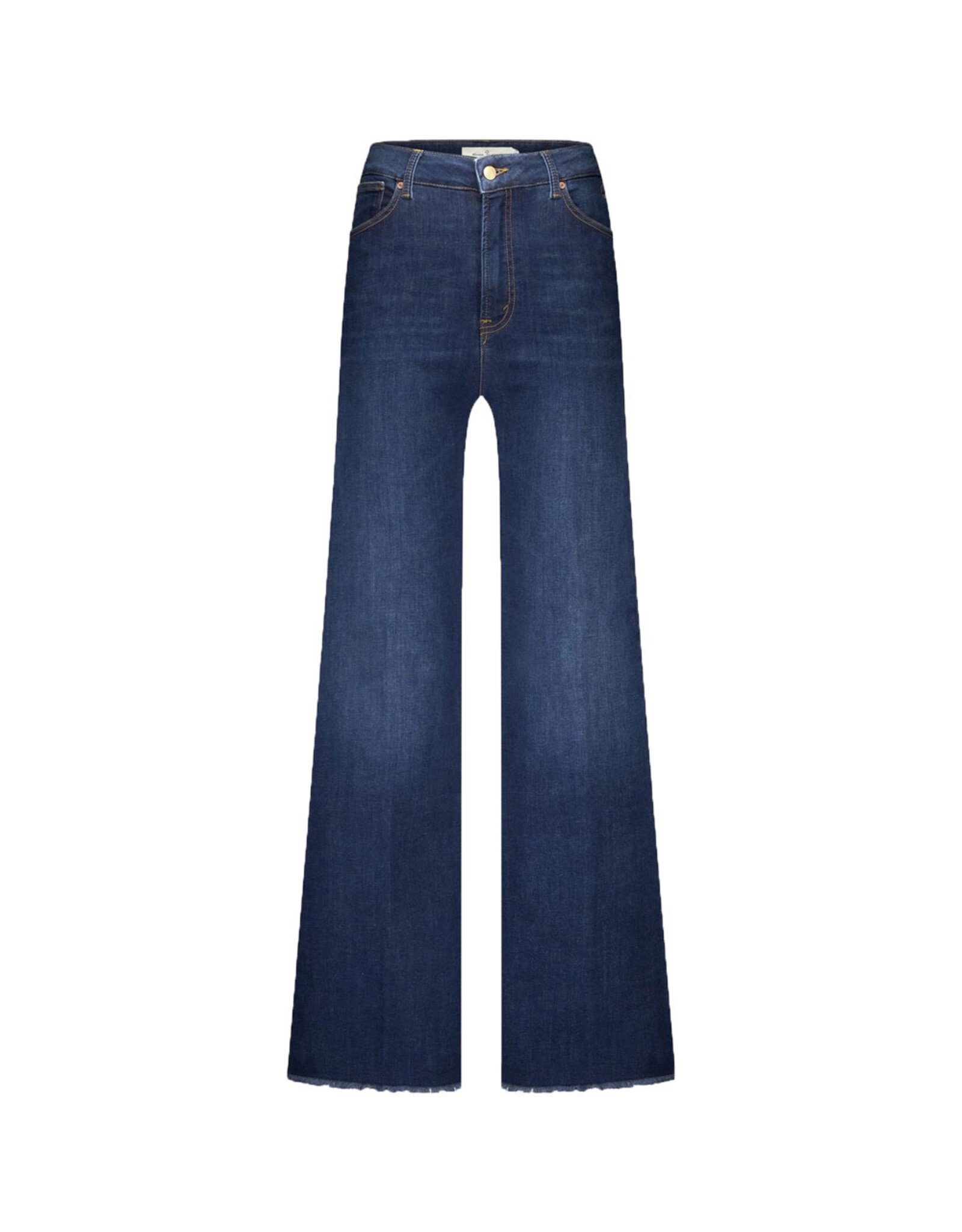 De Marlow is onze high waist denim met wijde, licht uitlopende broekspijpen en een gerafelde onderkant. Deze jeans is gemaakt van stretch katoen en heeft een donkerblauwe wassing met minimaal contrast. Dit model is verkrijgbaar in meerdere wassingen.