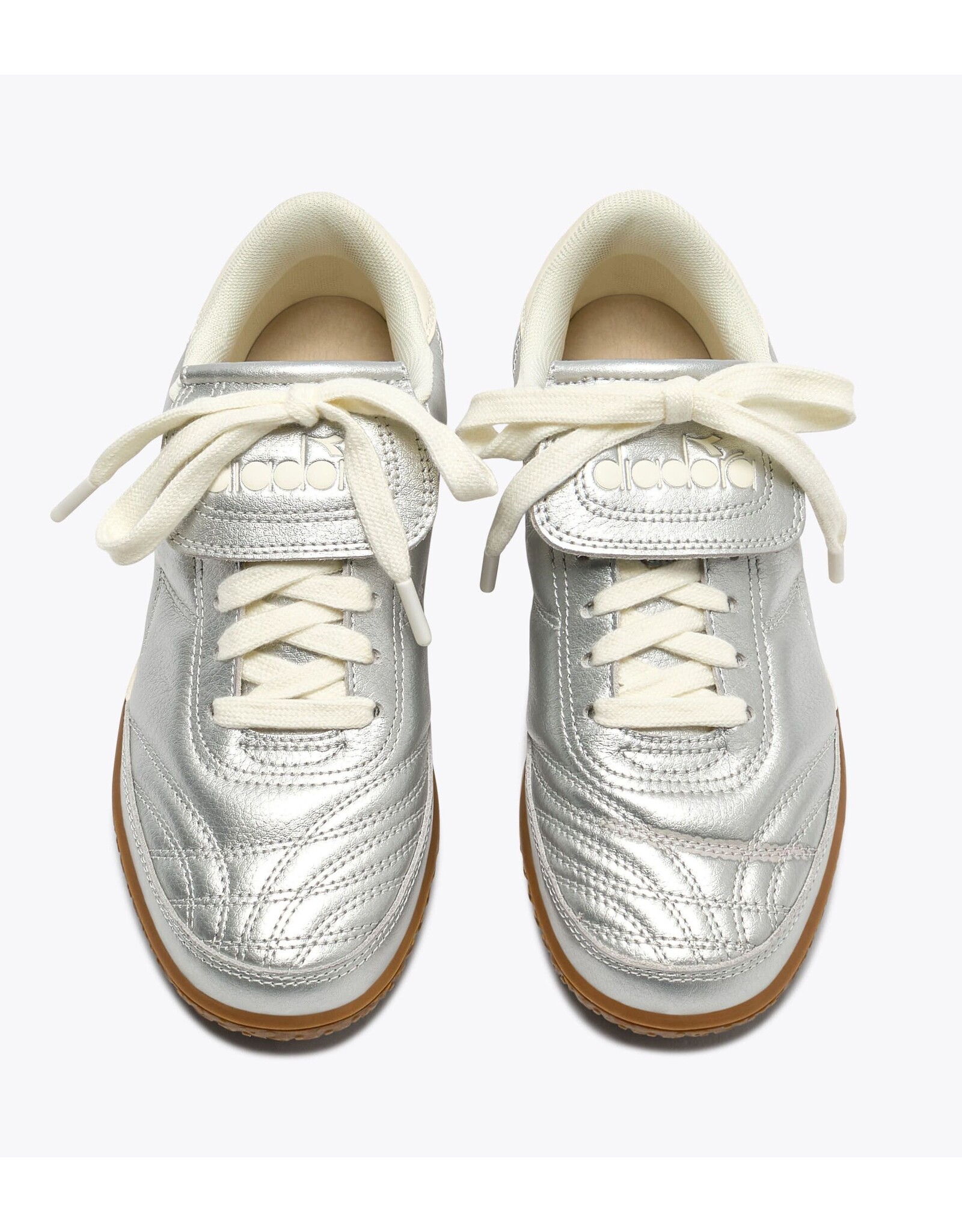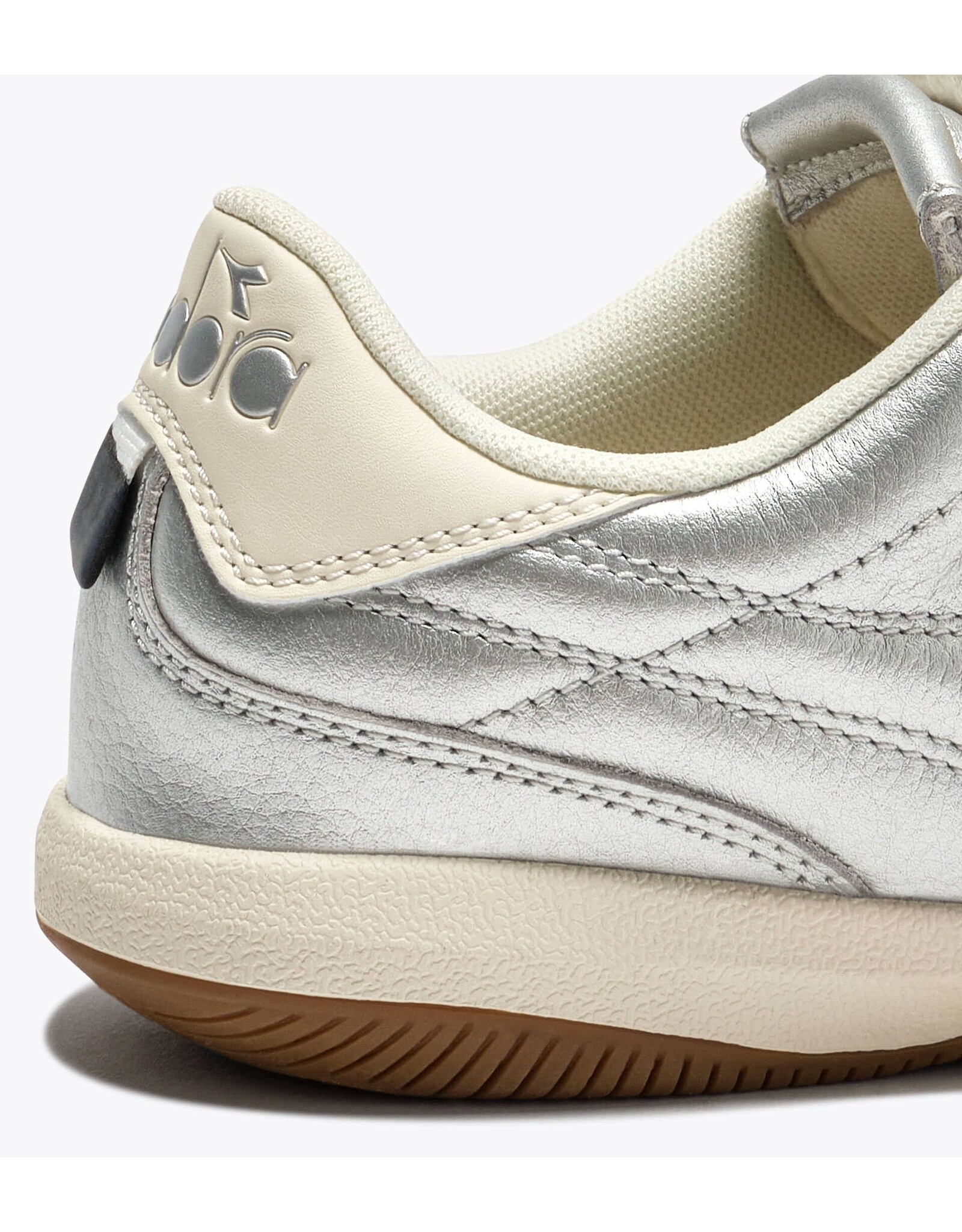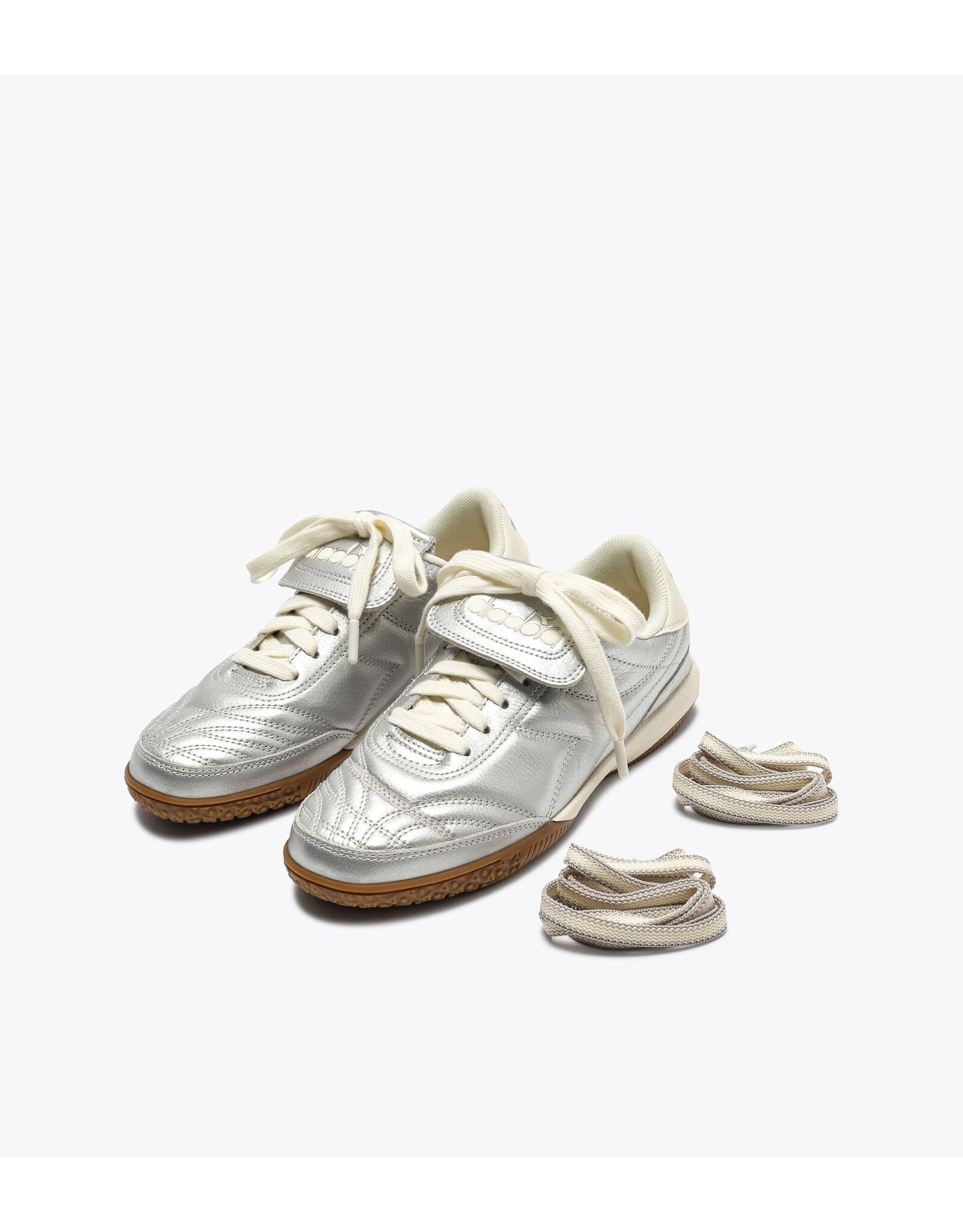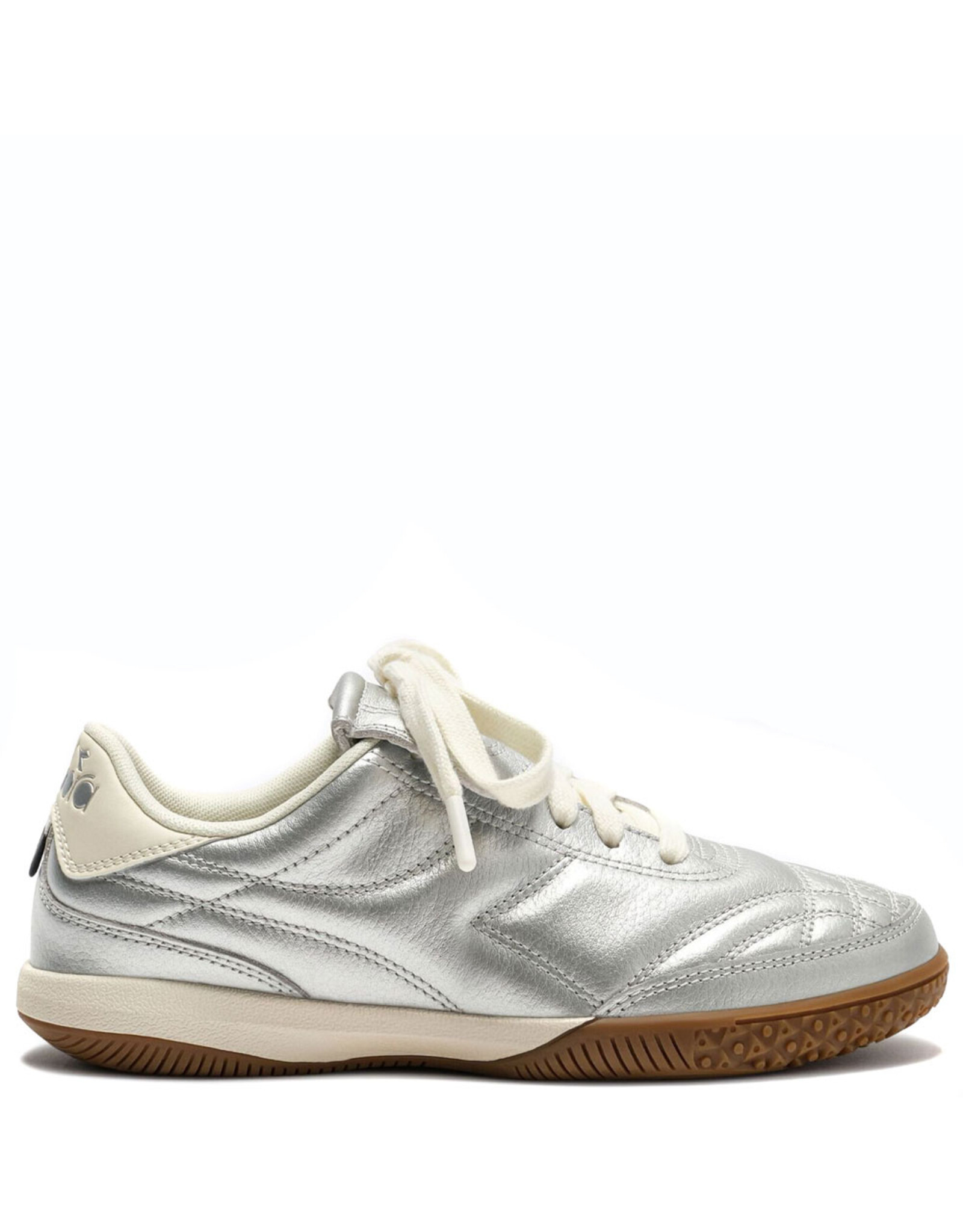 Gold Indoor Metallic brings terrace style into the 2000s with bold metallic tones and a full laminated leather upper. This version borrows the fold-over tongue from classic football boots for a refined, sport-inspired look. And the signature gum sole, lifted straight from Diadora’s handball archives, is that one detail you’ve loved since the ’80s.