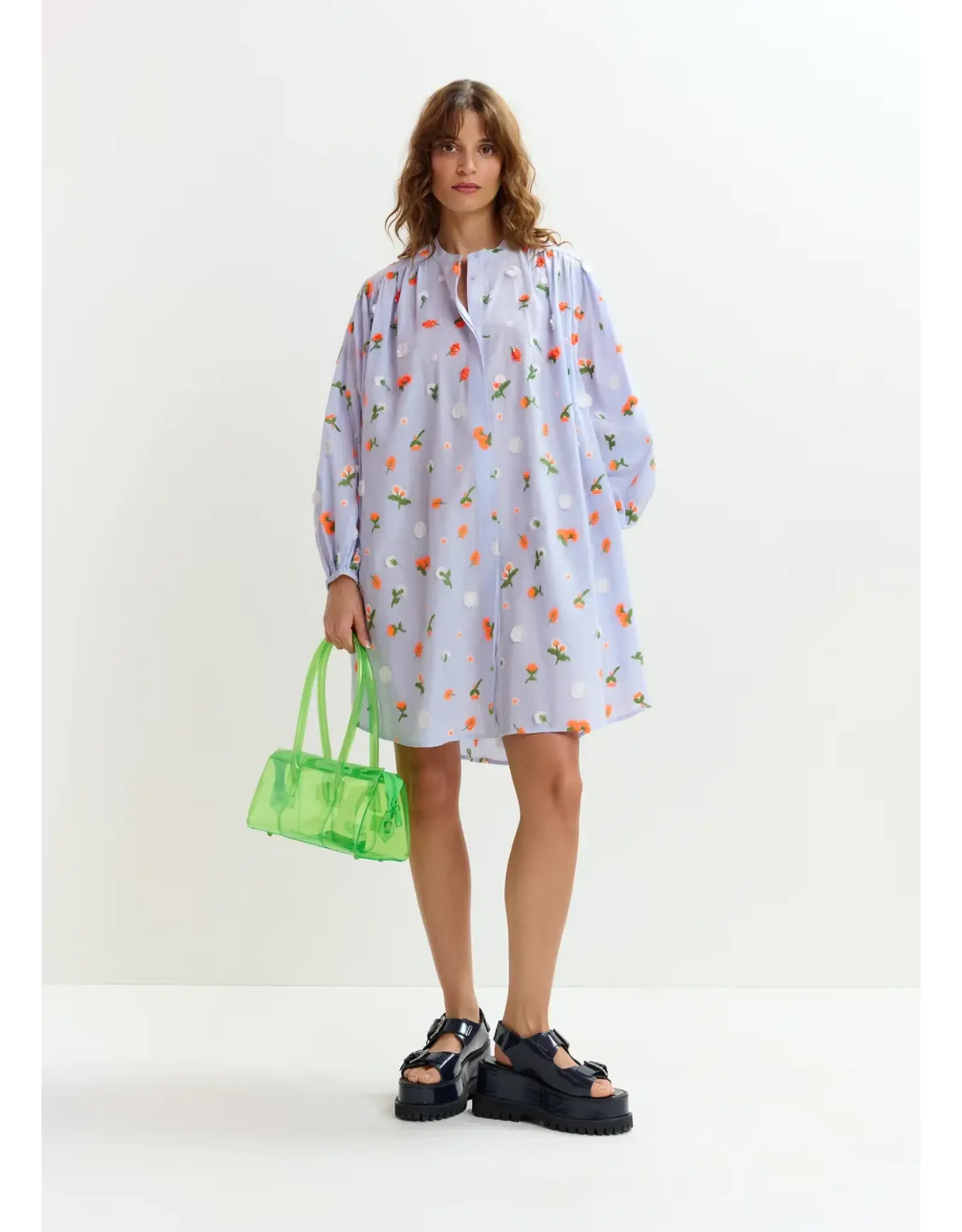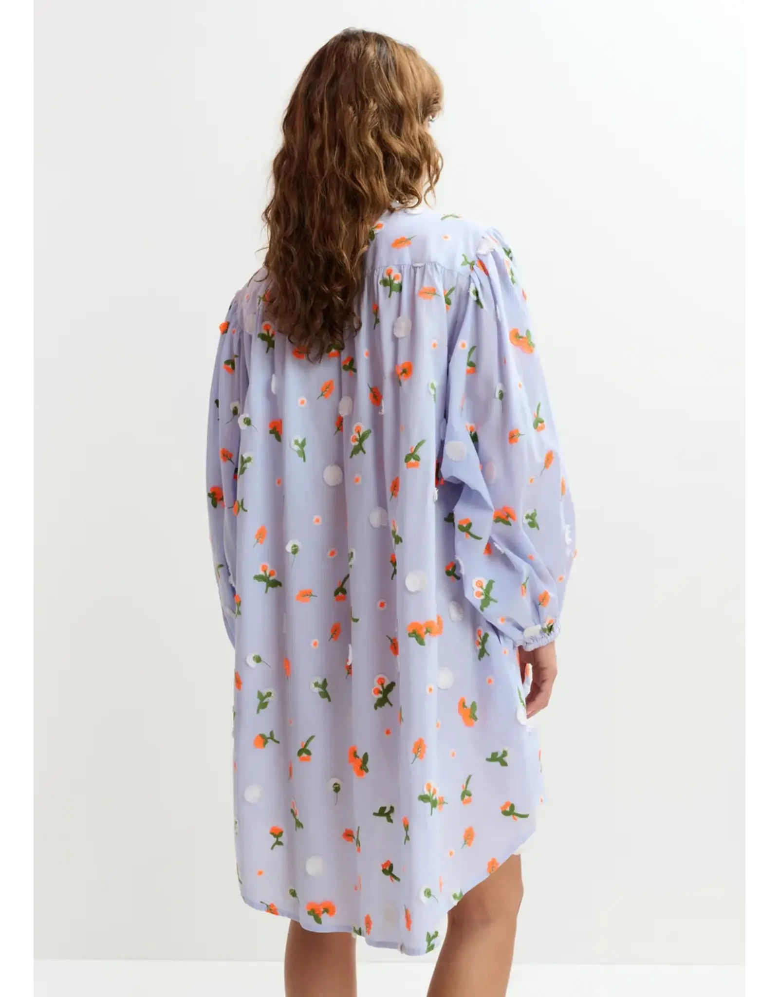 Hemdjurk met knielengte vervaardigd van 100% katoen, een verzorgde en toch comfortabele keuze voor casual dagen. Het oversized silhouet is afgewerkt met een maokraag en volumineuze 3/4-mouwen met elastische uiteinden die het silhouet extra volume geven. De pailletten, kralen en stras creëren voor een verfijnde uitstraling, terwijl discrete steekzakken zorgen voor functionaliteit.