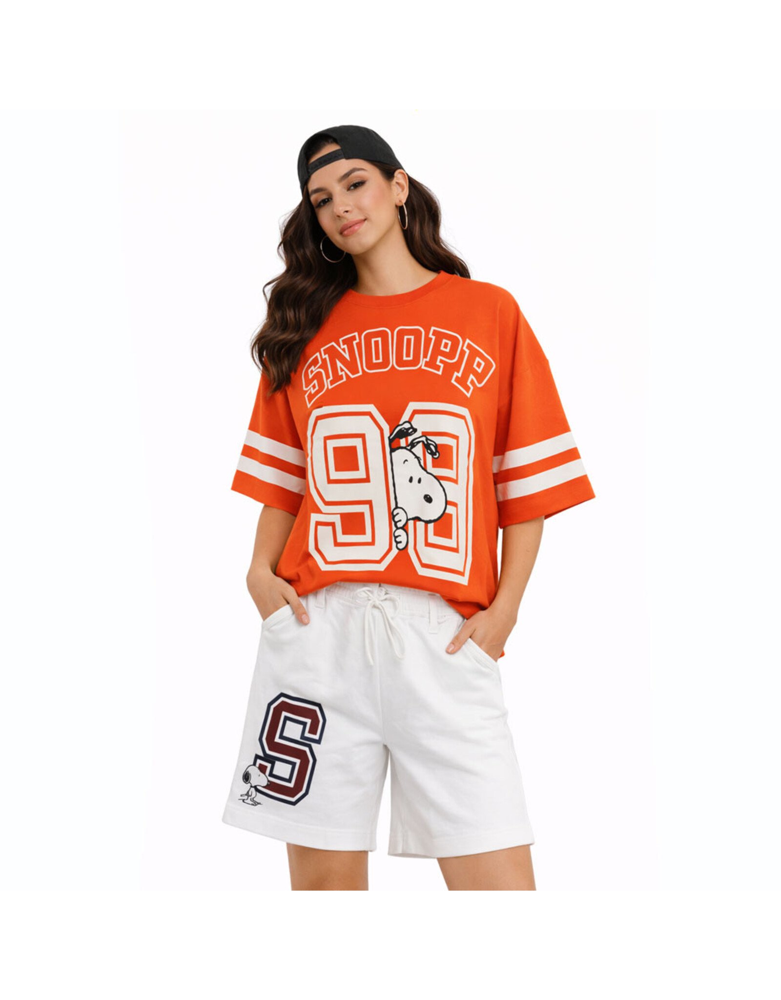 De short is uitgevoerd in een diepe navy kleur en afgewerkt met een opvallende “S”-print en een subtiele Snoopy-print op het been. Dankzij de elastische tailleband met trekkoord biedt dit model een relaxte pasvorm en optimaal draagcomfort. De zachte sweatstof zorgt voor een casual en moeiteloze look.