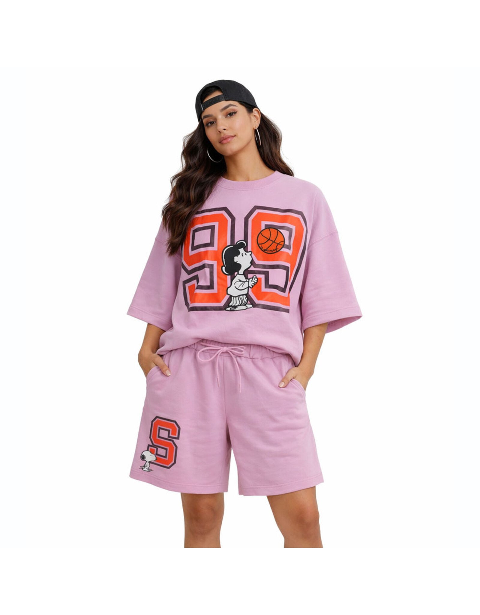 De short is uitgevoerd in een diepe navy kleur en afgewerkt met een opvallende “S”-print en een subtiele Snoopy-print op het been. Dankzij de elastische tailleband met trekkoord biedt dit model een relaxte pasvorm en optimaal draagcomfort. De zachte sweatstof zorgt voor een casual en moeiteloze look.