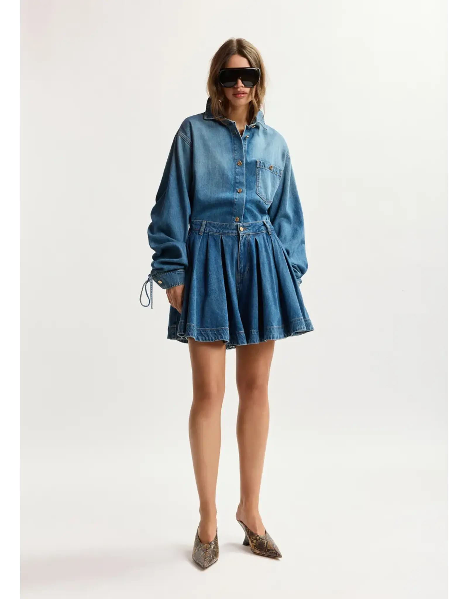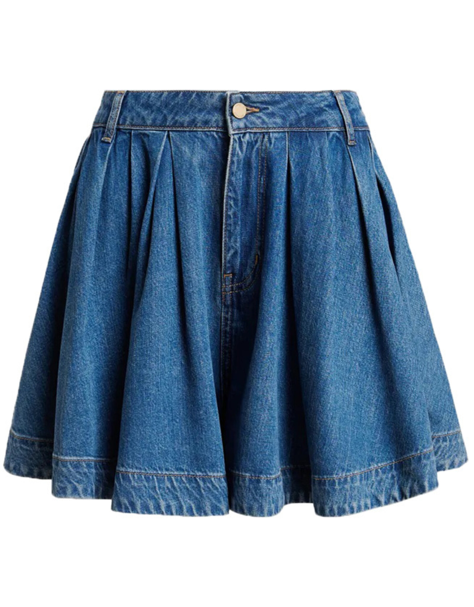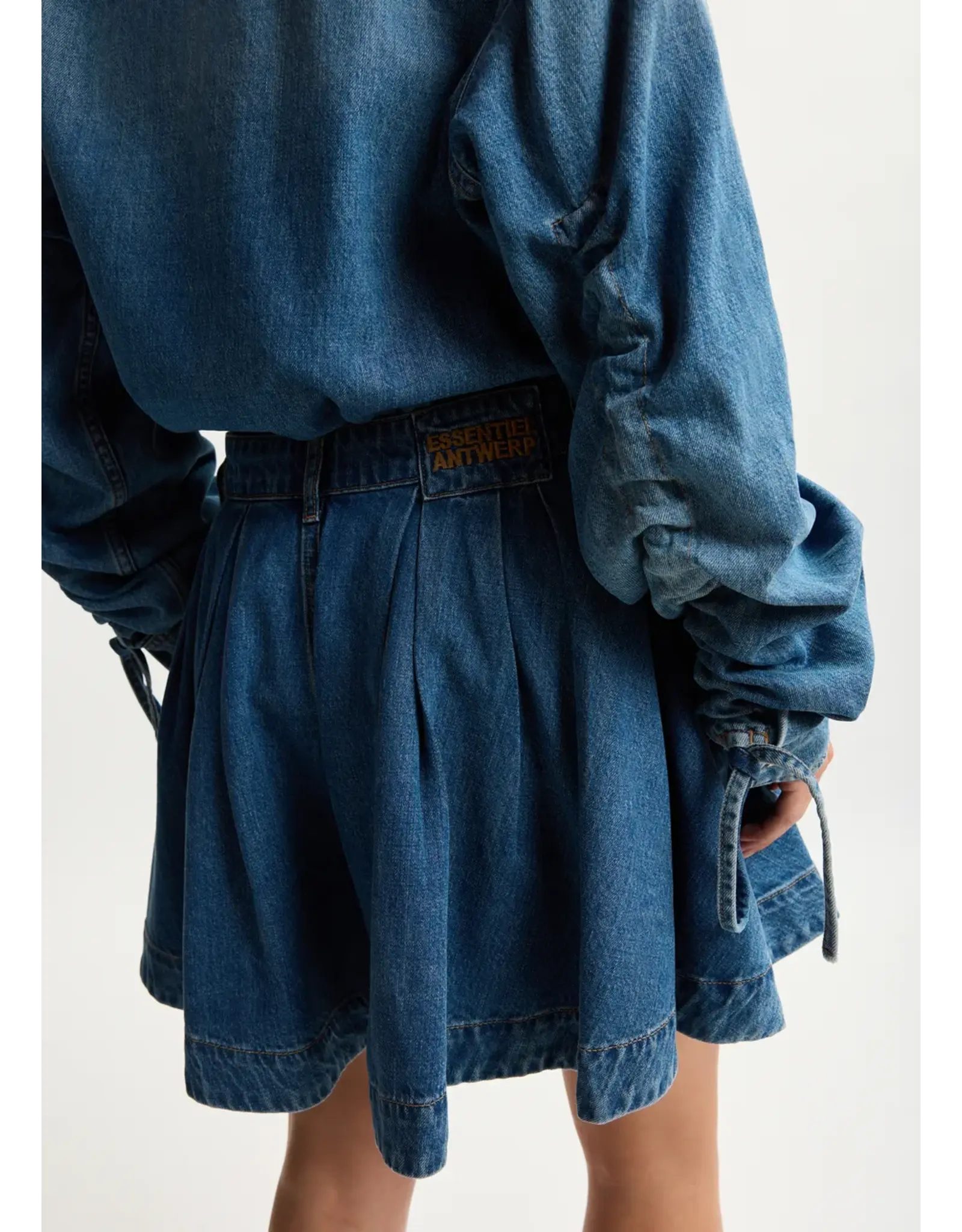 Jeansshort vervaardigd van een biologisch katoenmix in een geplisseerd ontwerp voor een volumineus silhouet. Ontworpen met een klassieke rits- en knoopsluiting en riemlussen voor een gestructureerde pasvorm. Steekzakken en een lipje met merklogo maken het ontwerp helemaal af met subtiele kenmerkende details.