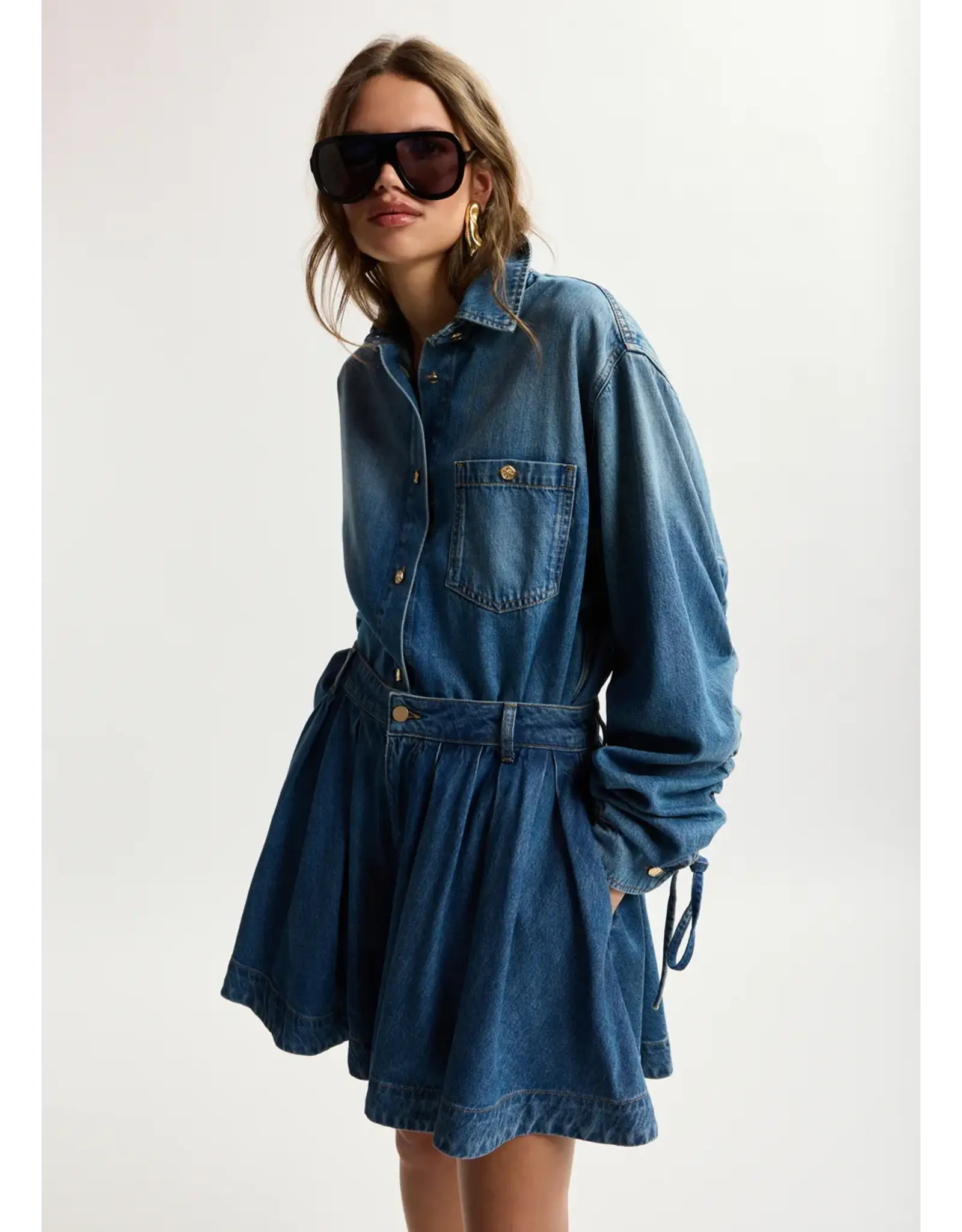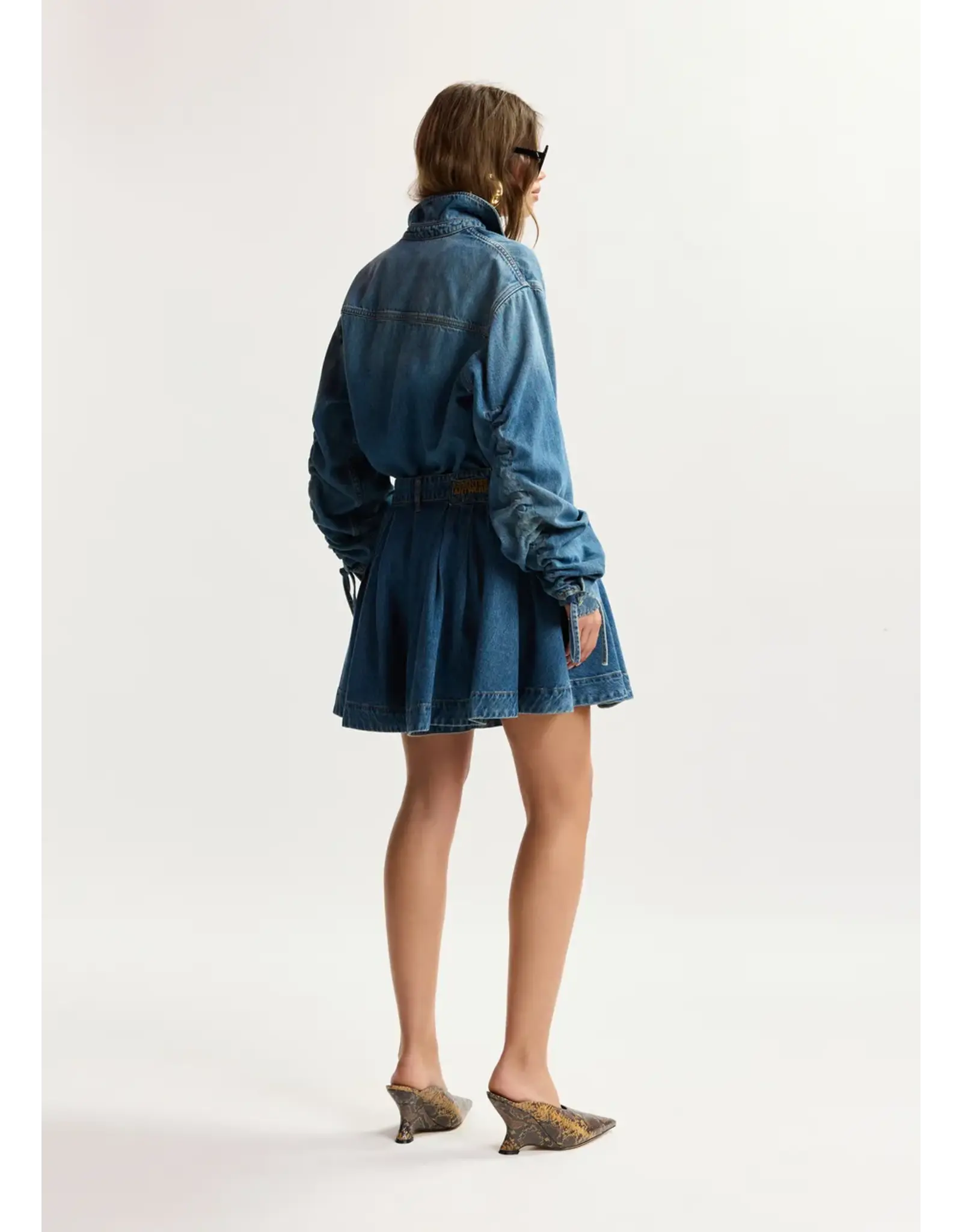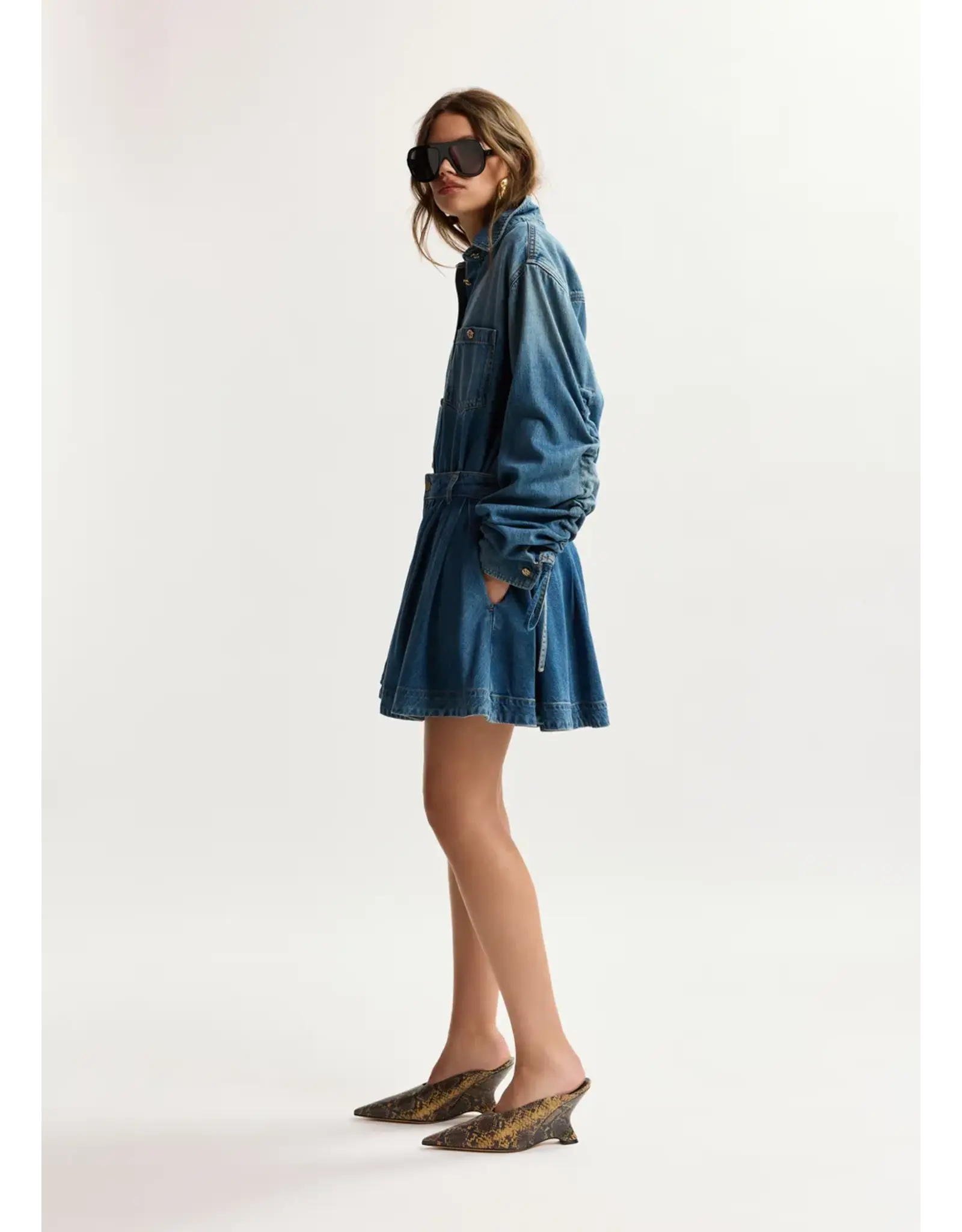 Jeansshort vervaardigd van een biologisch katoenmix in een geplisseerd ontwerp voor een volumineus silhouet. Ontworpen met een klassieke rits- en knoopsluiting en riemlussen voor een gestructureerde pasvorm. Steekzakken en een lipje met merklogo maken het ontwerp helemaal af met subtiele kenmerkende details.