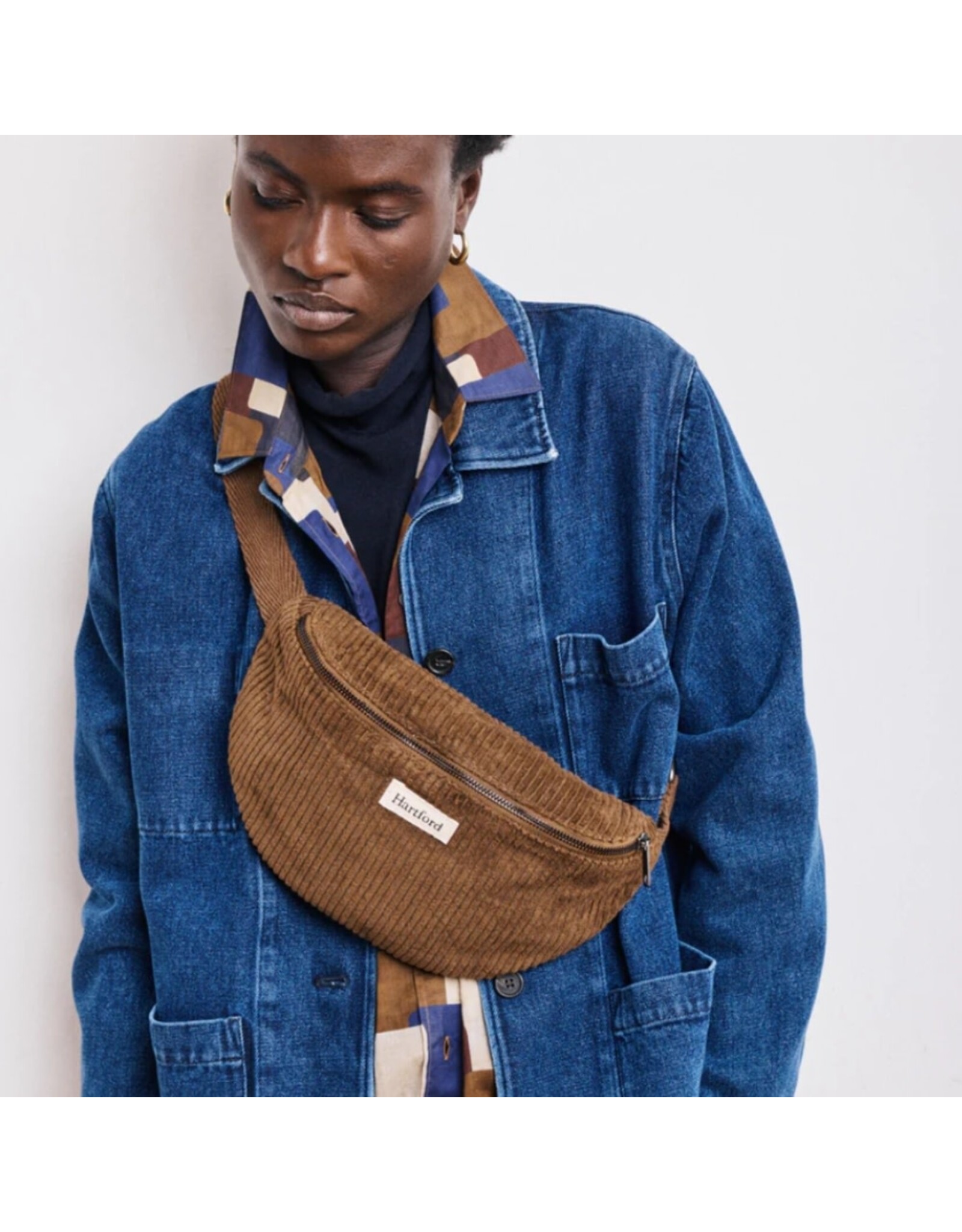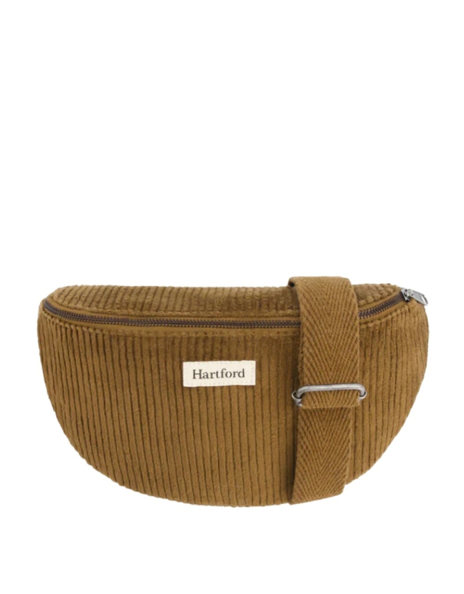 Een tas van corduroy met ecru Hartford-label op de voorkant. Ritssluiting en verstelbare schouderband.
