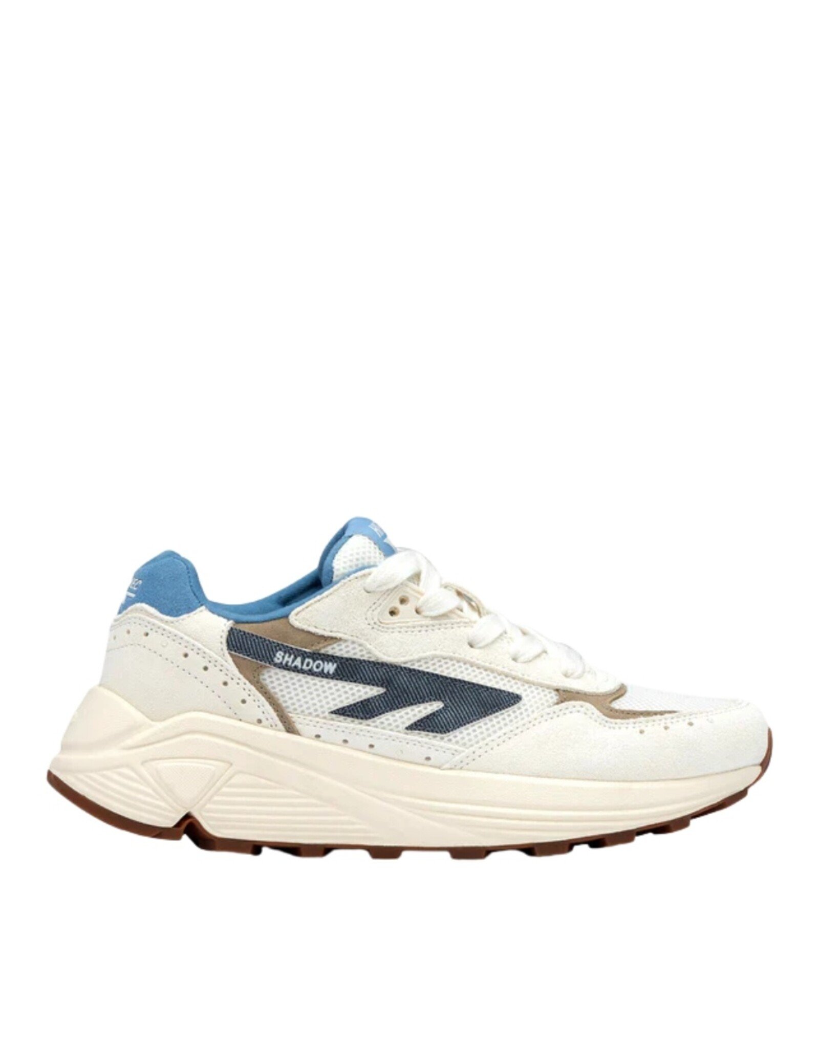 Sportieve Hi-Tec sneaker met lichtblauwe, beige en jeans details.