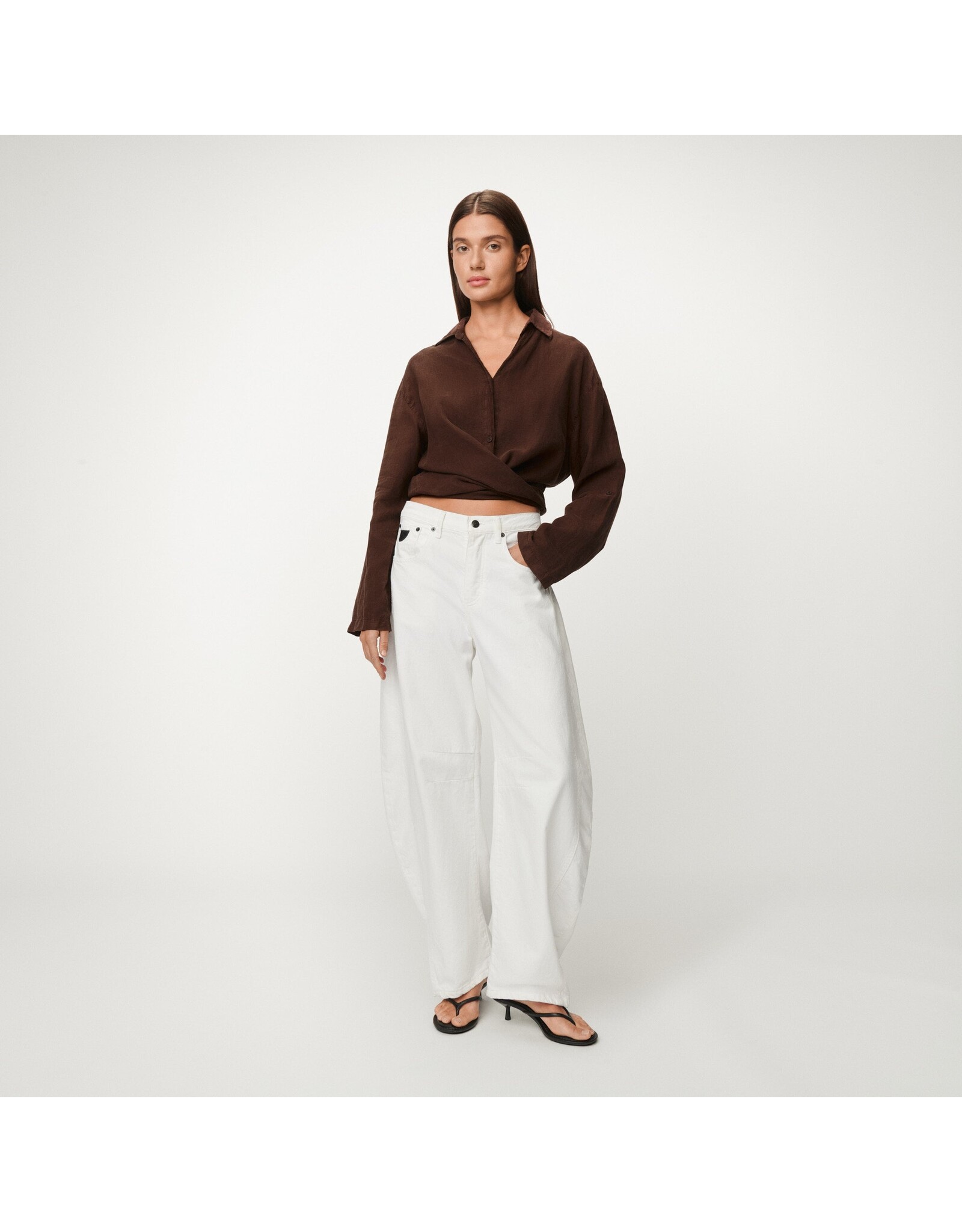 Linnen met contrasterende kleuren of een dessin kan doorlopen. Was een linnen kledingstuk daarom zeker de eerste paar wasbeurten op de hand of apart in de machine (maximaal 30ºC). In beide gevallen kunt u een anti-doorloop-doekje. Gebruik weinig vloeibaar wasmiddel en voeg 1 dl natuurazijn toe, dat houdt de kleuren beter vast. Laat bij handwas het kledingstuk nooit in het water staan. Breng het kledingstuk in model voordat u het laat drogen.