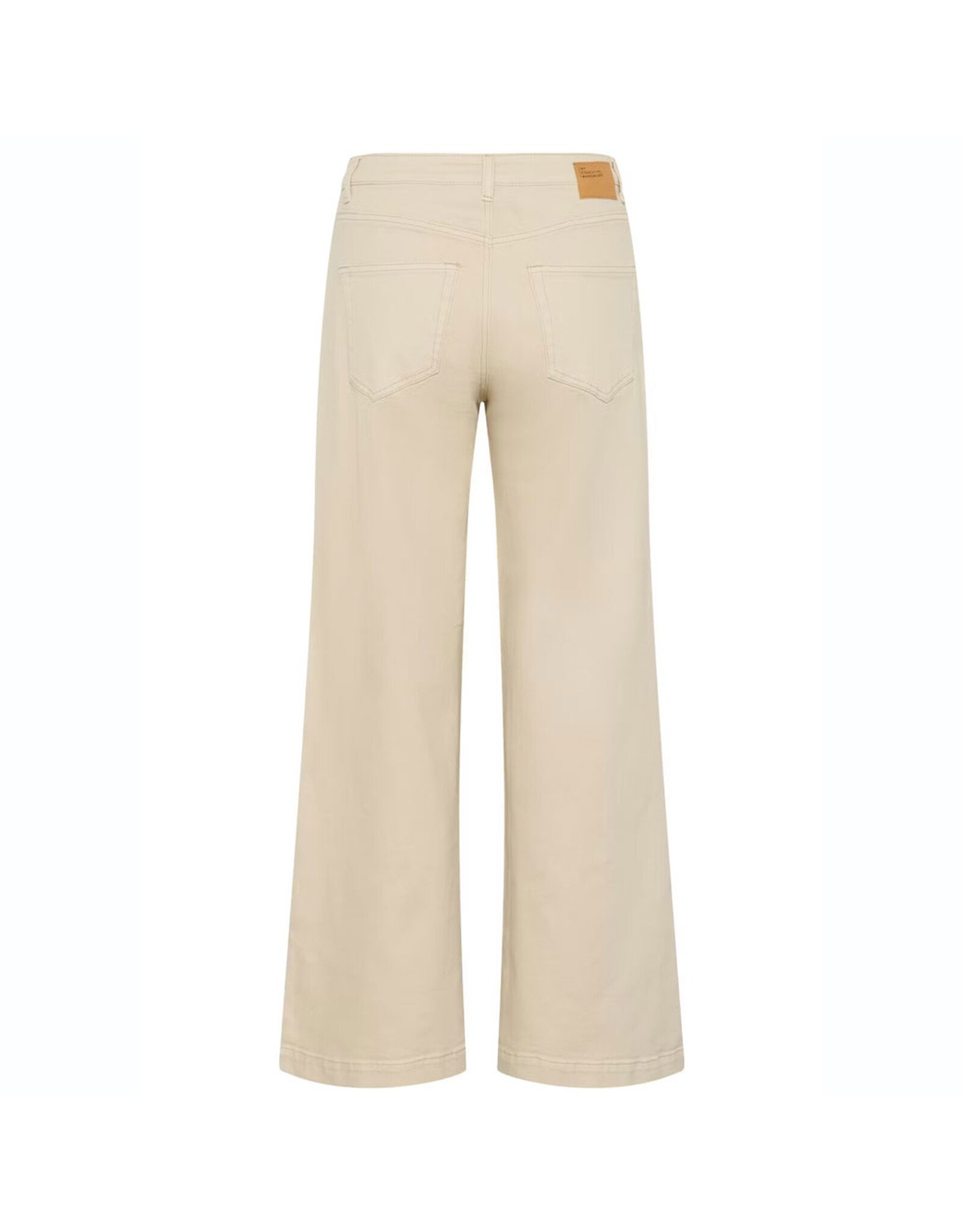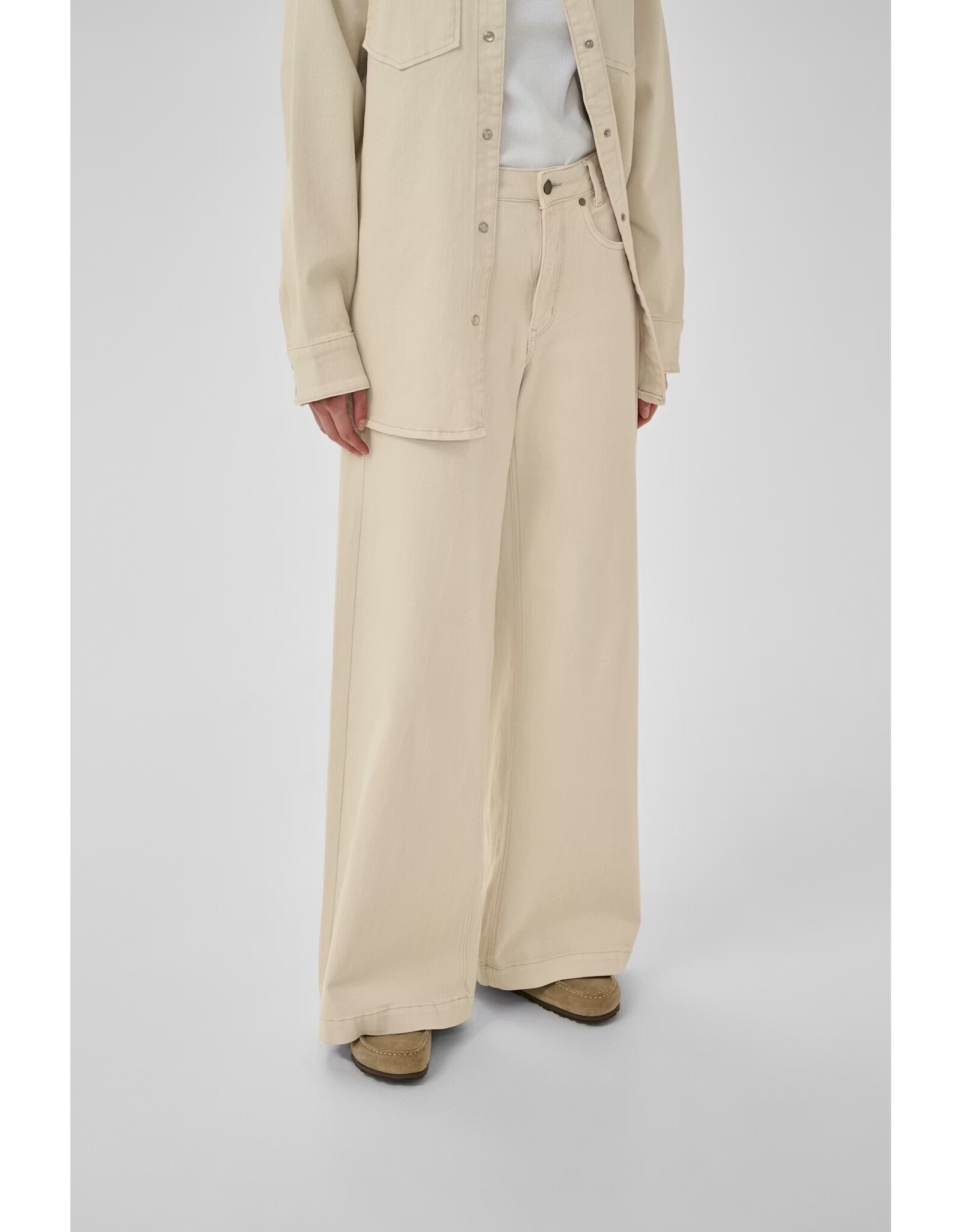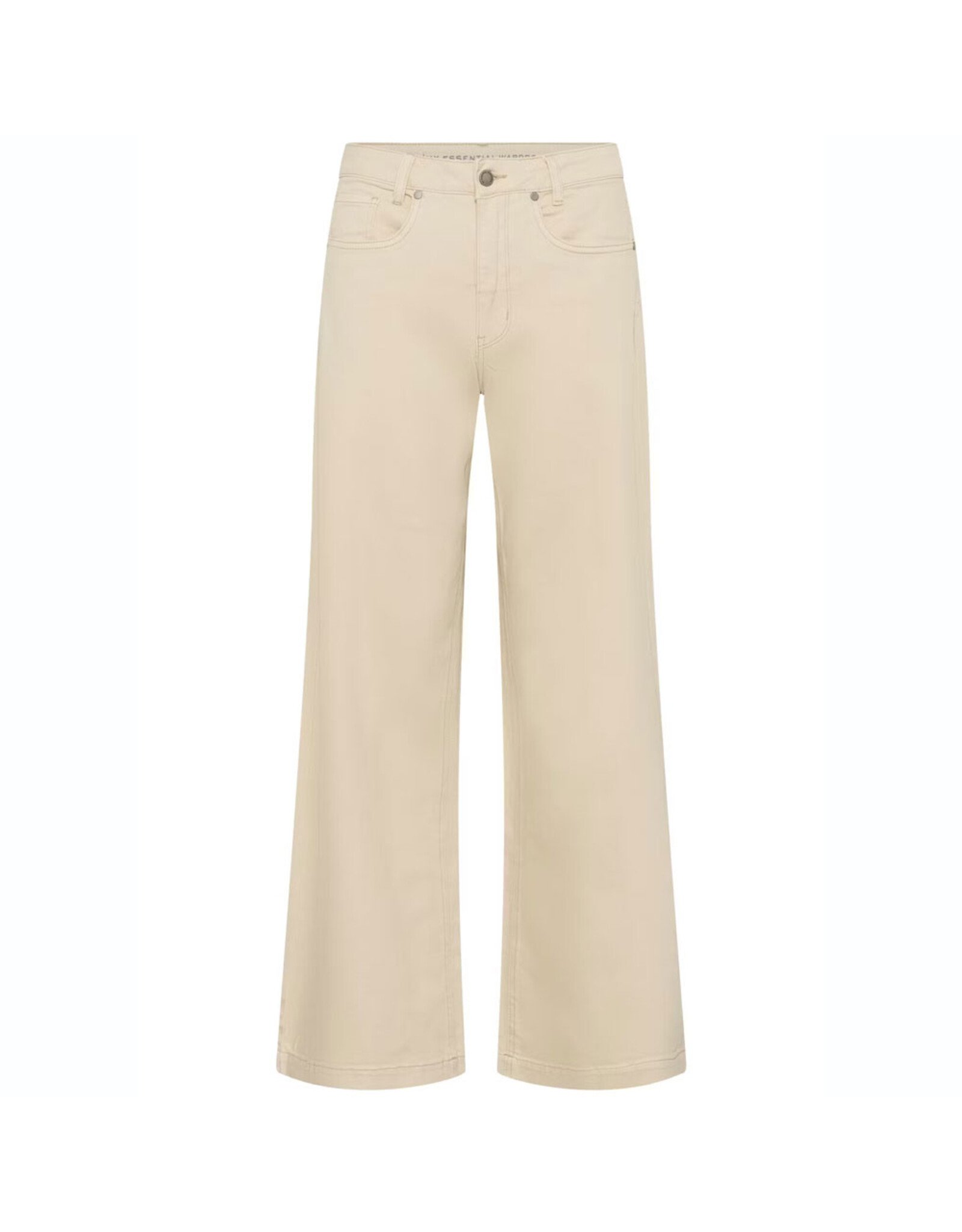 Wide leg jeans met hoge taille en gestructureerde pasvorm. Het klassieke vijfzakkenmodel en wijde pijpen zorgen voor een relaxte, stijlvolle look.