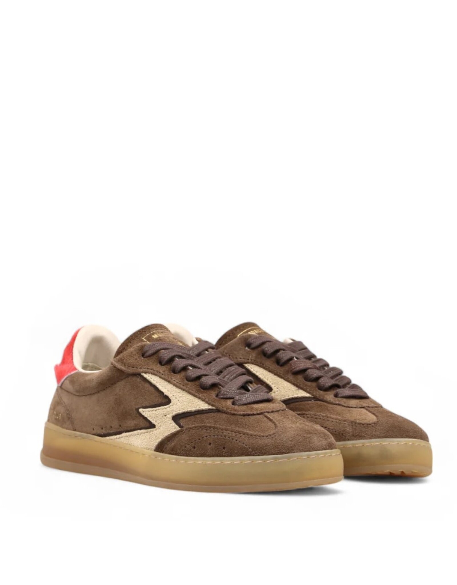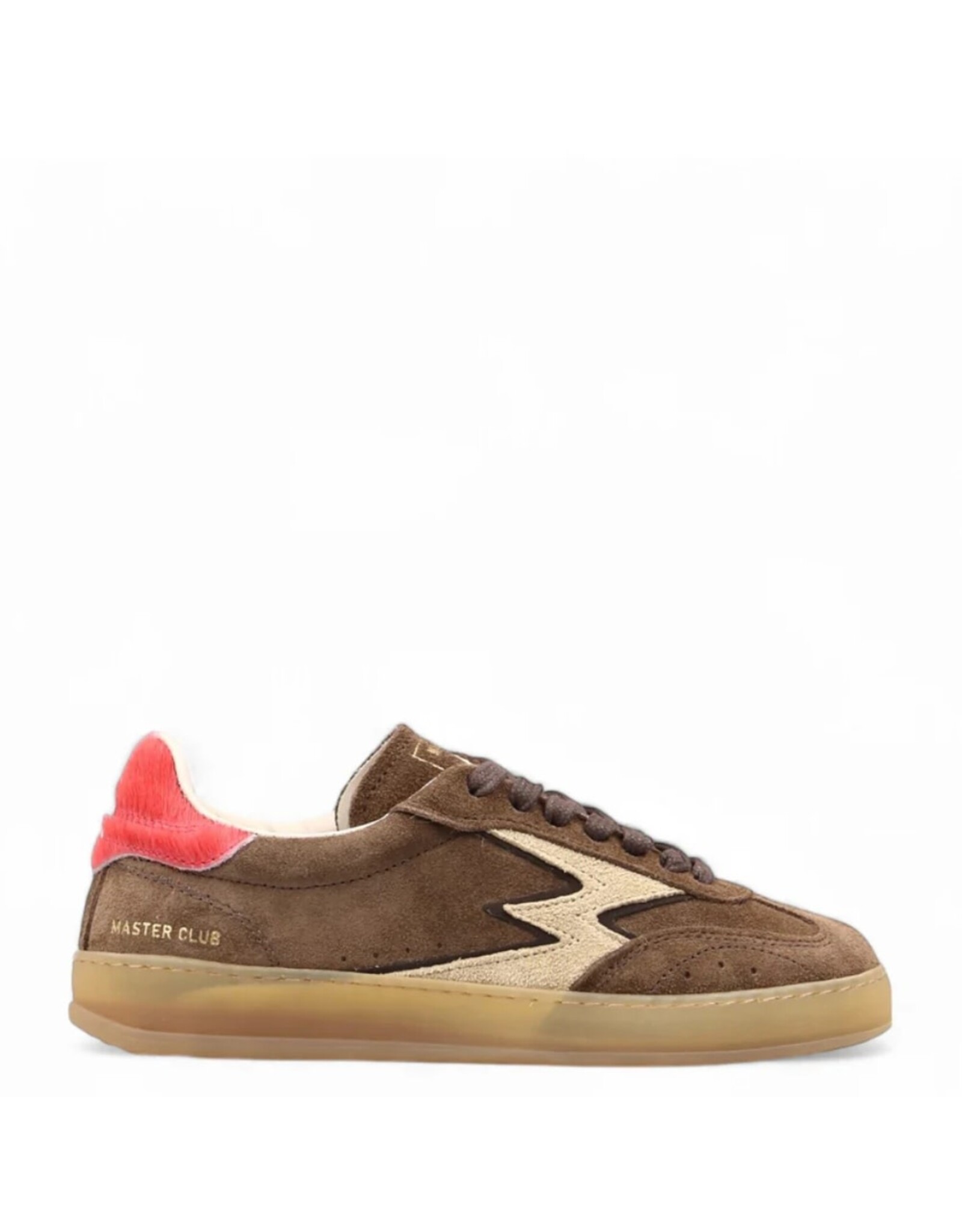 Lage cacaokleurige suède damessneaker, gemaakt in Italië