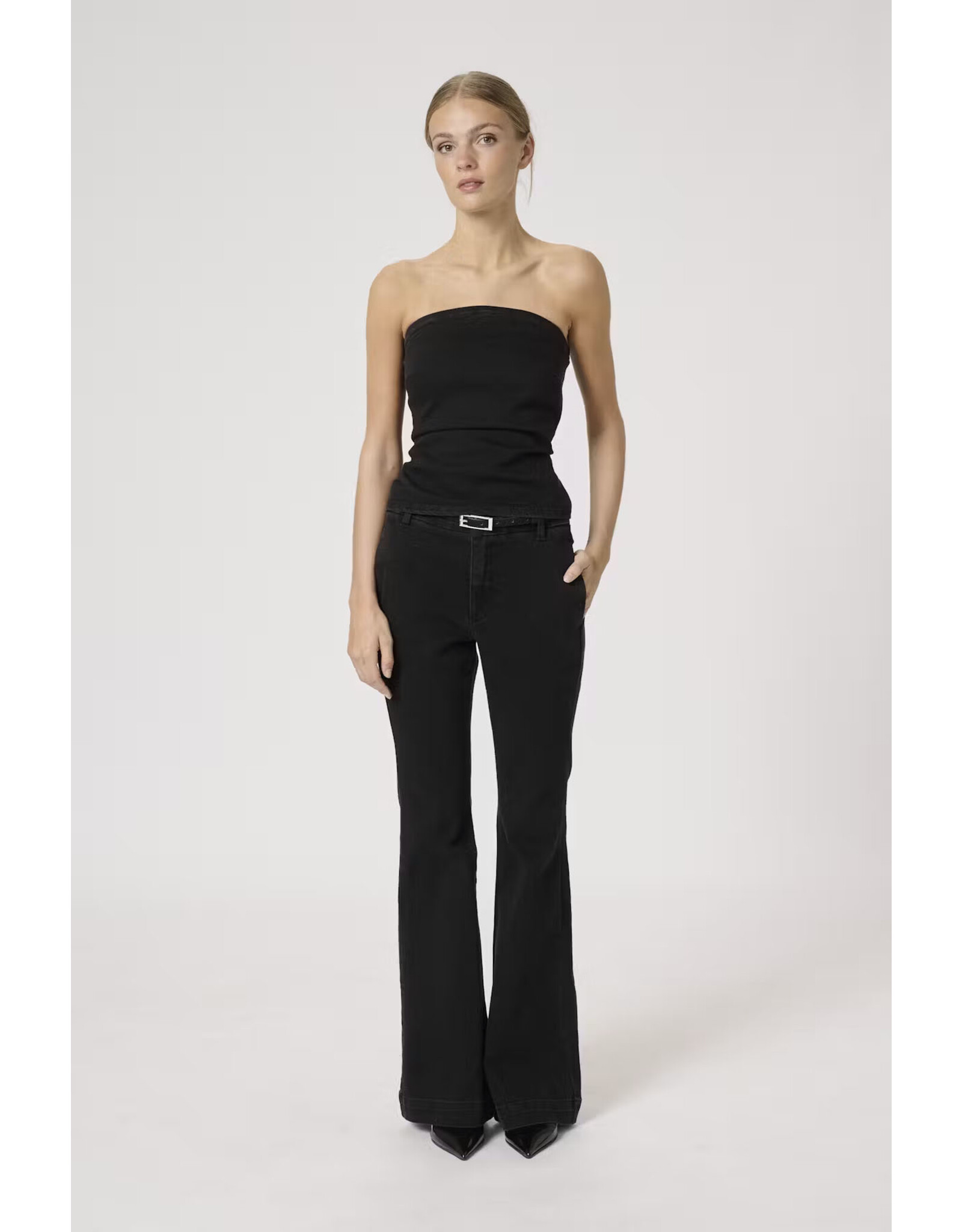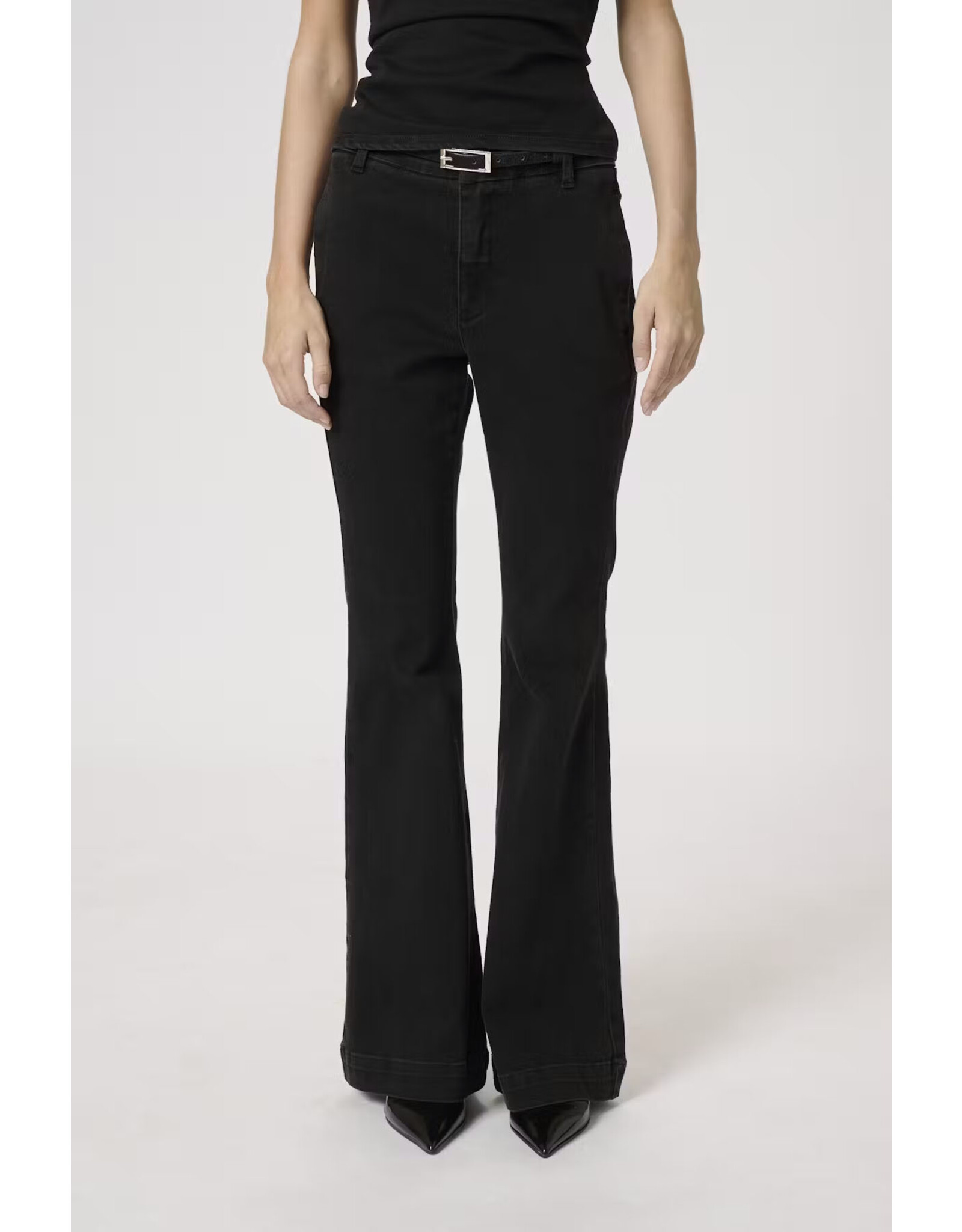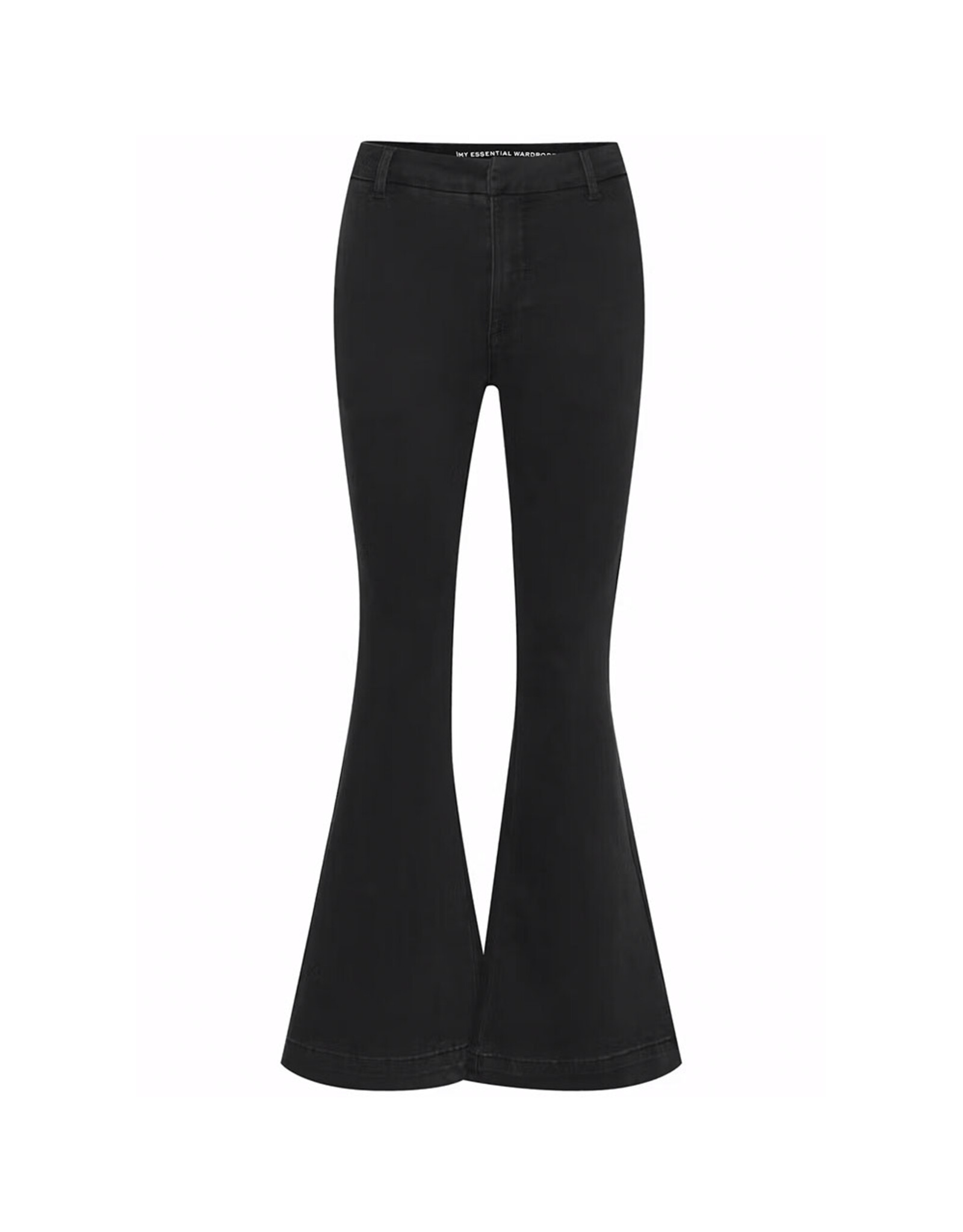 Deze bootcut jeans van My Essential wardrobe is een tijdloze keuze voor wie houdt van een flatterende en elegante jeans. Met een hoge taille en licht uitlopende pijpen creëert deze jeans een mooi silhouet dat je benen langer laat lijken. Combineer deze bootcut jeans met een aansluitende top voor een gestroomlijnde look, of draag hem met een oversized trui en enkellaarsjes voor een casual, retro-stijl.