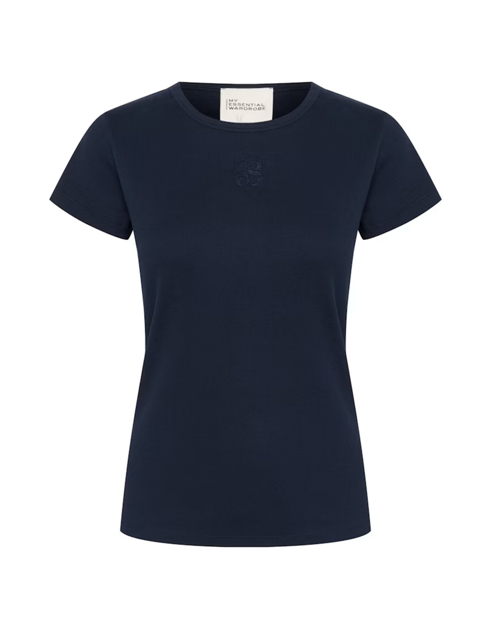 Het MandyMW Logo T-shirt van My Essential Wardrobe is een stijlvol en veelzijdig T-shirt in de kleur 'Dark Sapphire'. Het shirt heeft een klassieke ronde hals en korte mouwen, en is voorzien van een subtiel logo op de borst, wat zorgt voor een tijdloze uitstraling. Gemaakt van hoogwaardige materialen biedt dit T-shirt zowel comfort als duurzaamheid. Het is eenvoudig te combineren met diverse outfits, van casual tot meer geklede looks.