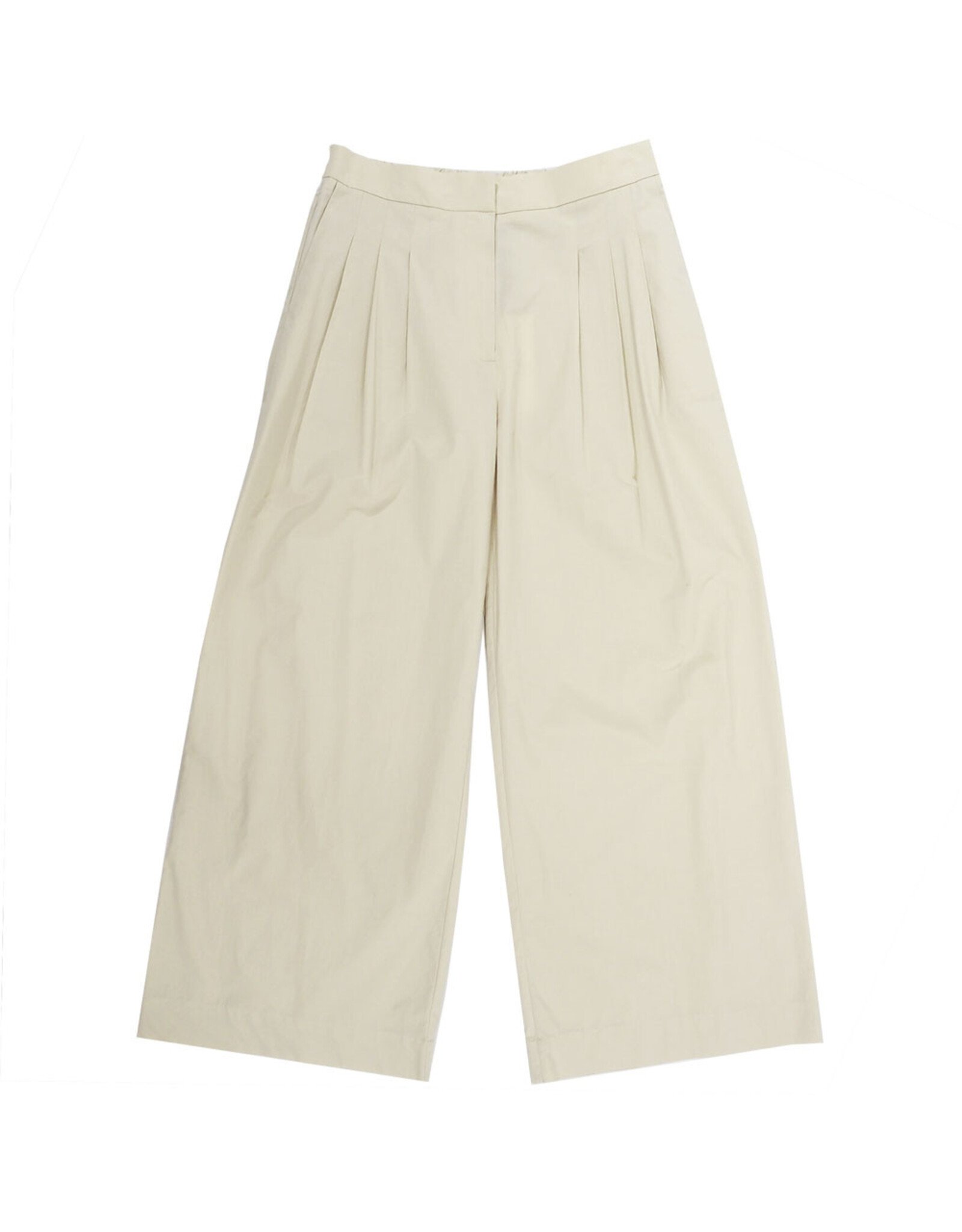 Wide-leg poplin trousers with front darts and elasticated back, designed for a balanced and comfortable fit. The wide cut falls straight down the leg, maintaining a clean and tidy aesthetic. A simple style, perfect for everyday looks with a contemporary cut.