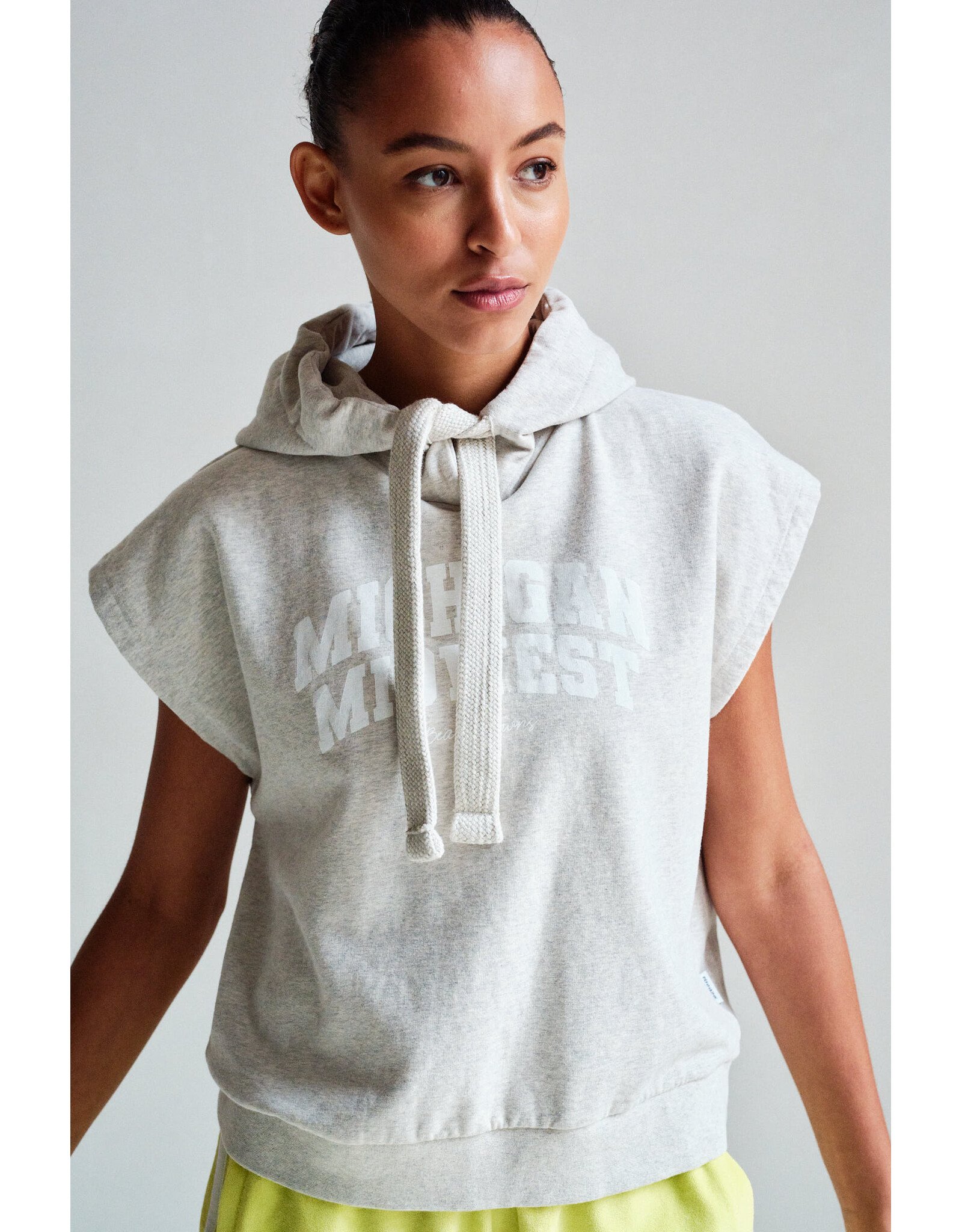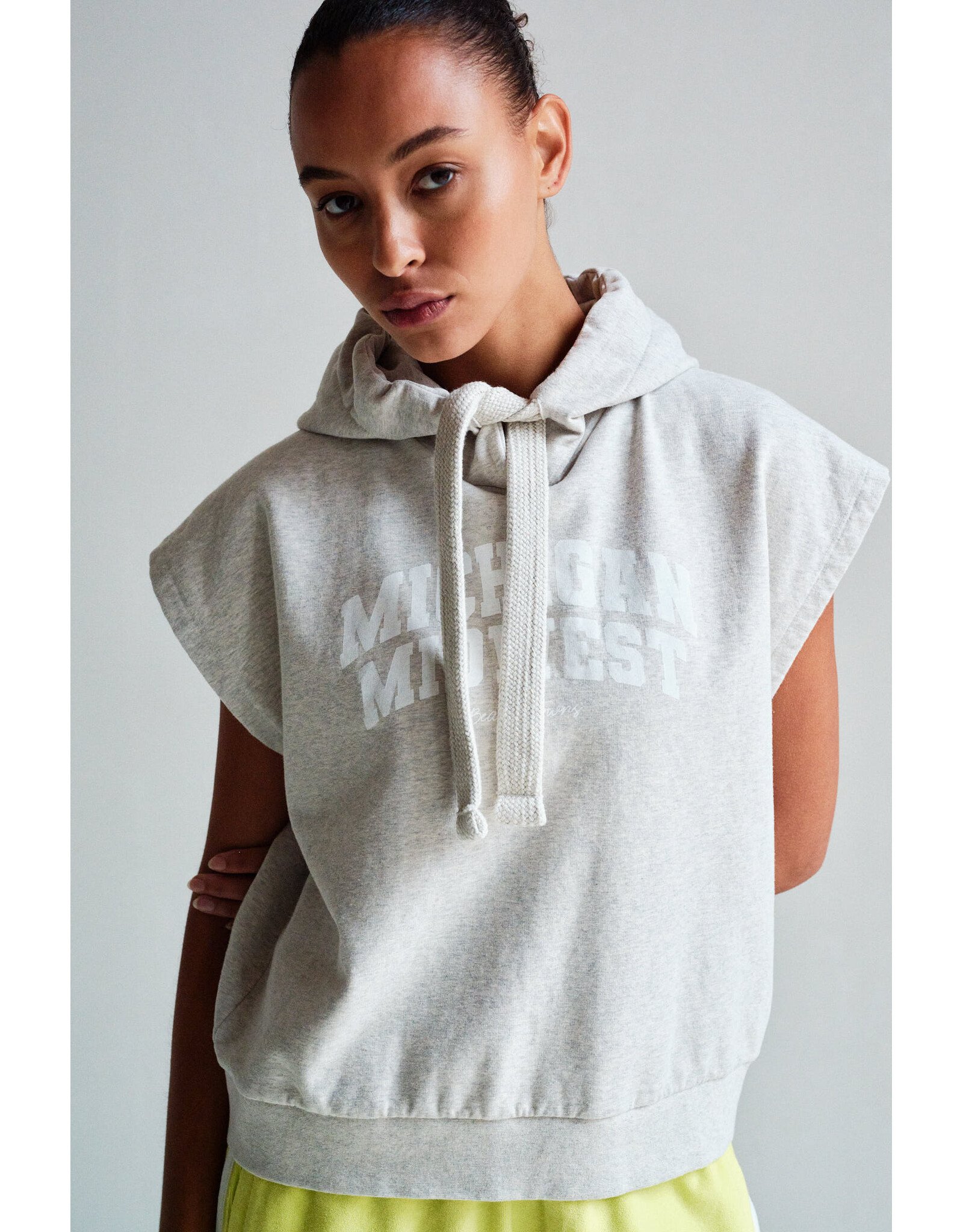 Effortless layering meets contemporary style with this sleeveless hoodie. The relaxed silhouette features a striking front print that adds visual interest to your everyday wardrobe. Perfect for transitional seasons or as a versatile layer under jackets.