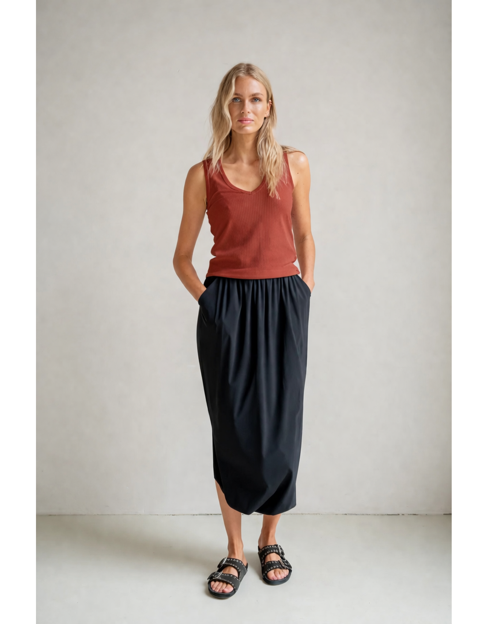 This simple top adds an elegant touch to any everyday outfit. Designed with a flattering V-neckline, ribbed texture and fitted silhouette, it creates a refined look that’s easy to style. Pair it with tailored trousers for a timeless, classic summer outfit.