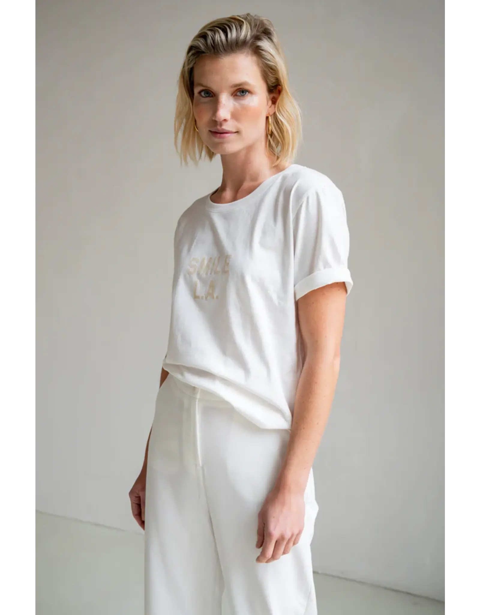 Basic t-shirt van Penn&Ink N.Y met ronde hals en korte mouwen. Het t-shirt heeft een opvallende LA-print op de voorkant.