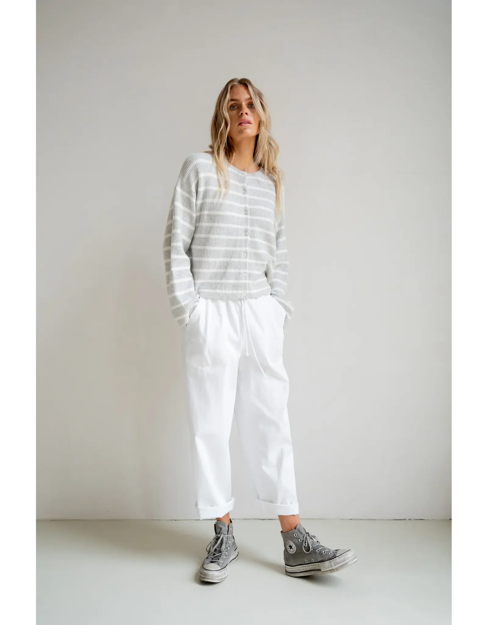 These straight fit trousers feature large front pockets and a relaxed silhouette with an elasticated waistline. Crafted from lightweight denim, they offer breathable comfort and are perfect for warm summer days and effortless everyday wear.