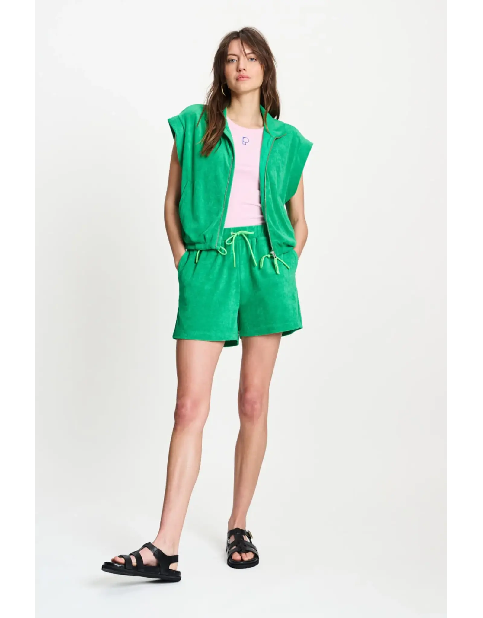 Deze groene short van zacht badstof materiaal is perfect voor een casual, zomerse look. De contrasterende koord in de tailleband zorgt voor een speelse touch en een comfortabele pasvorm.