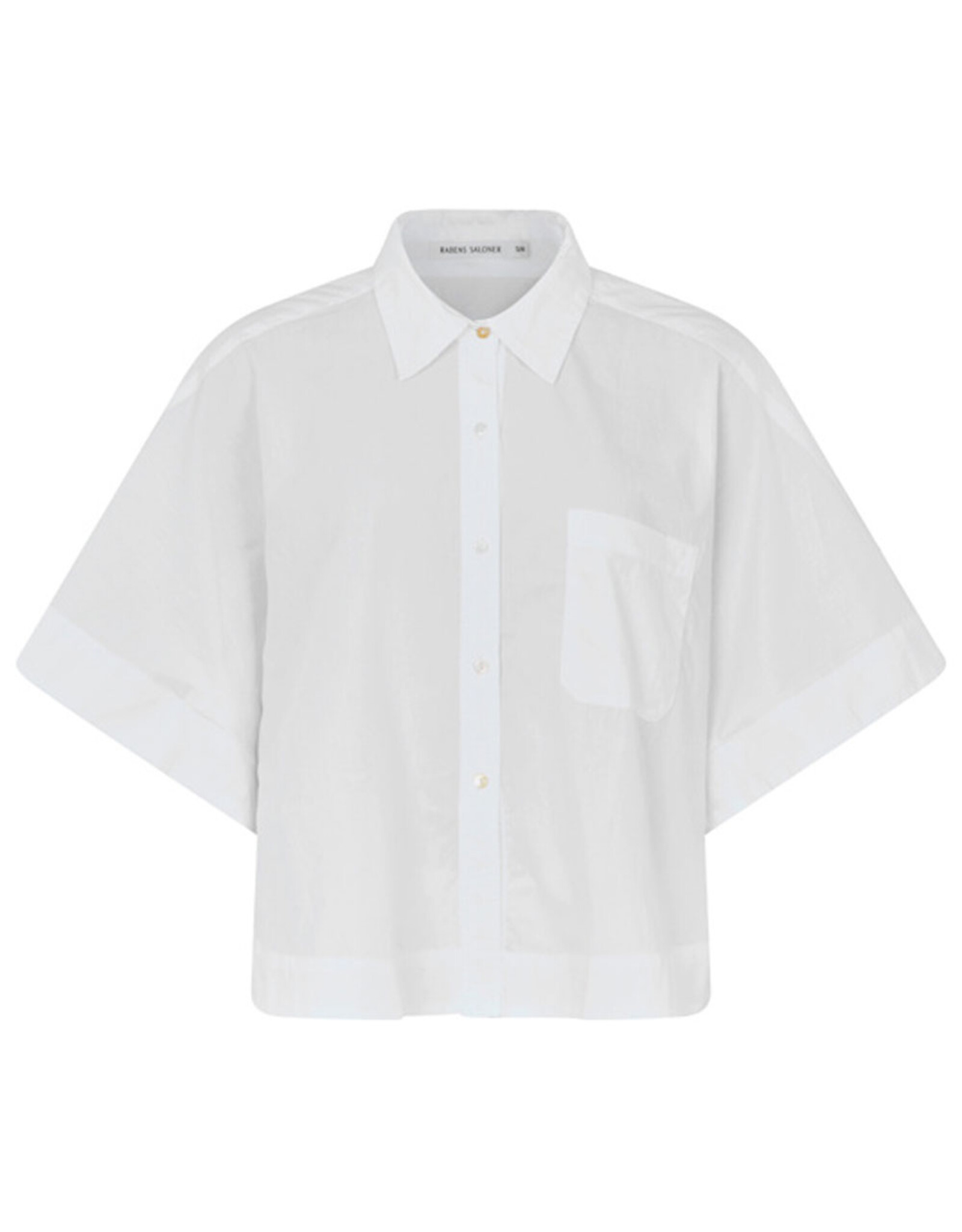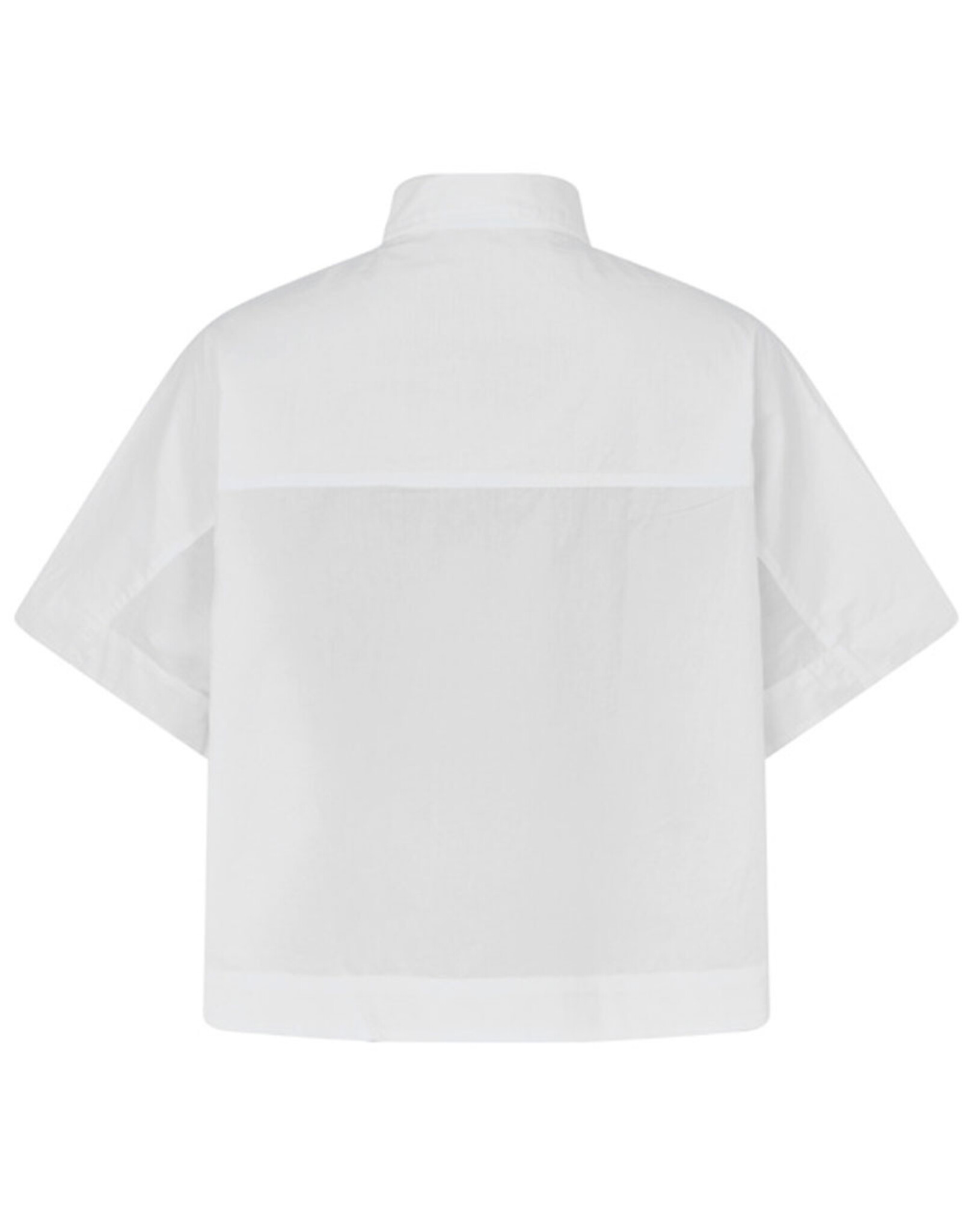 Het overhemd wordt gekenmerkt door een boxy, korte pasvorm met halflange, oversized mouwen, knoopsluiting over de hele lengte, borstzak en een ronde zoom.