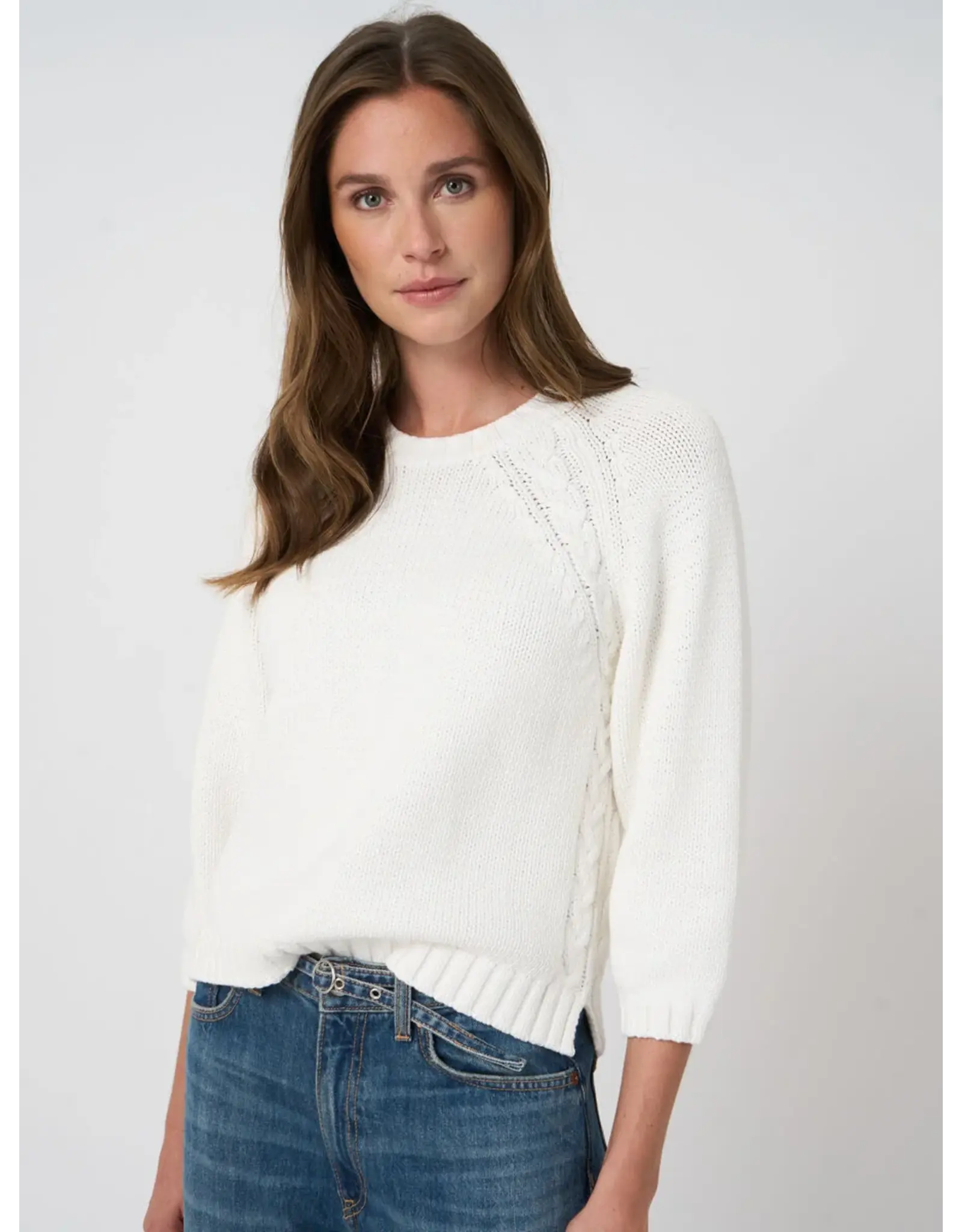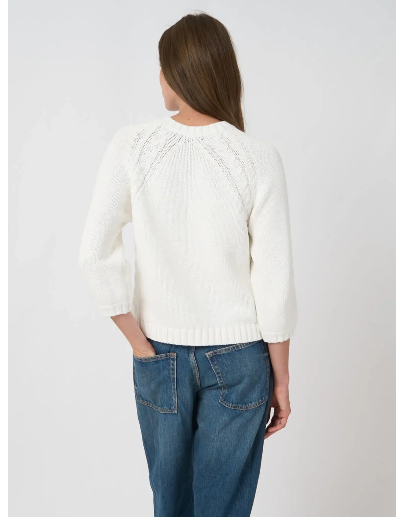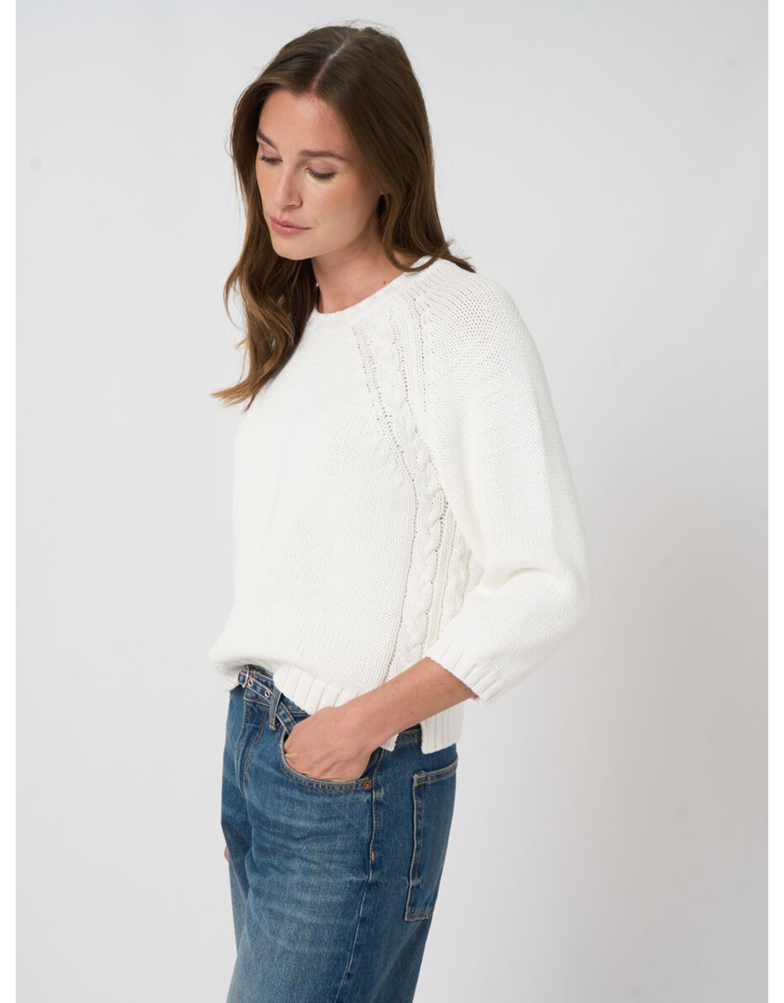 Gespannen uit luchtige katoenmix, voelt deze chunky knit van REPEAT cashmere zacht textuur met een subtiel grofmazige effect en kabelgelijnde raglan naden. Losse regular fit en rechte silhouet met 3/4 mouwen, geribde ronde hals, ribbreisel zoom en zijsplitten. Moeiteloos alledaags draagbaar, ideaal als laag.