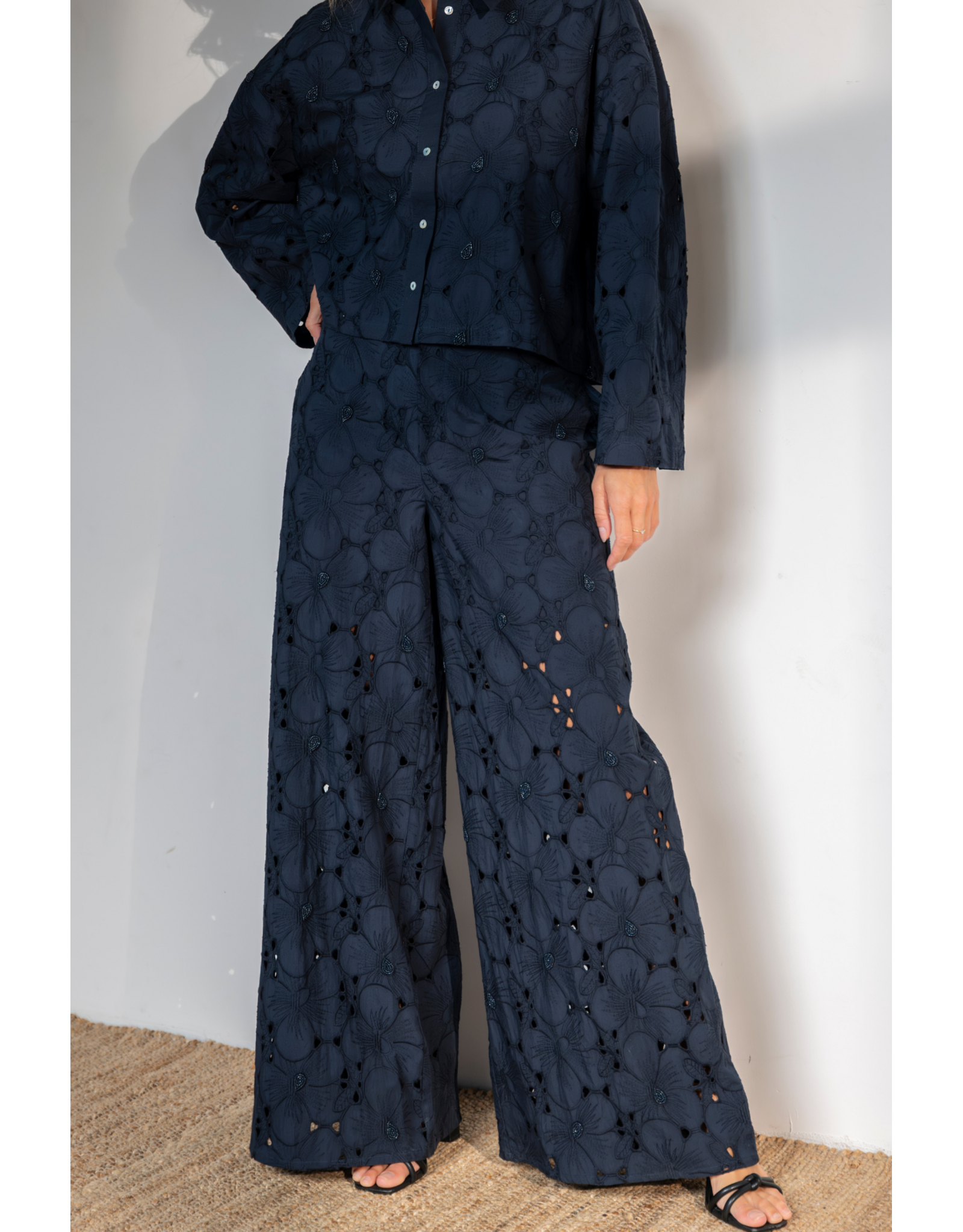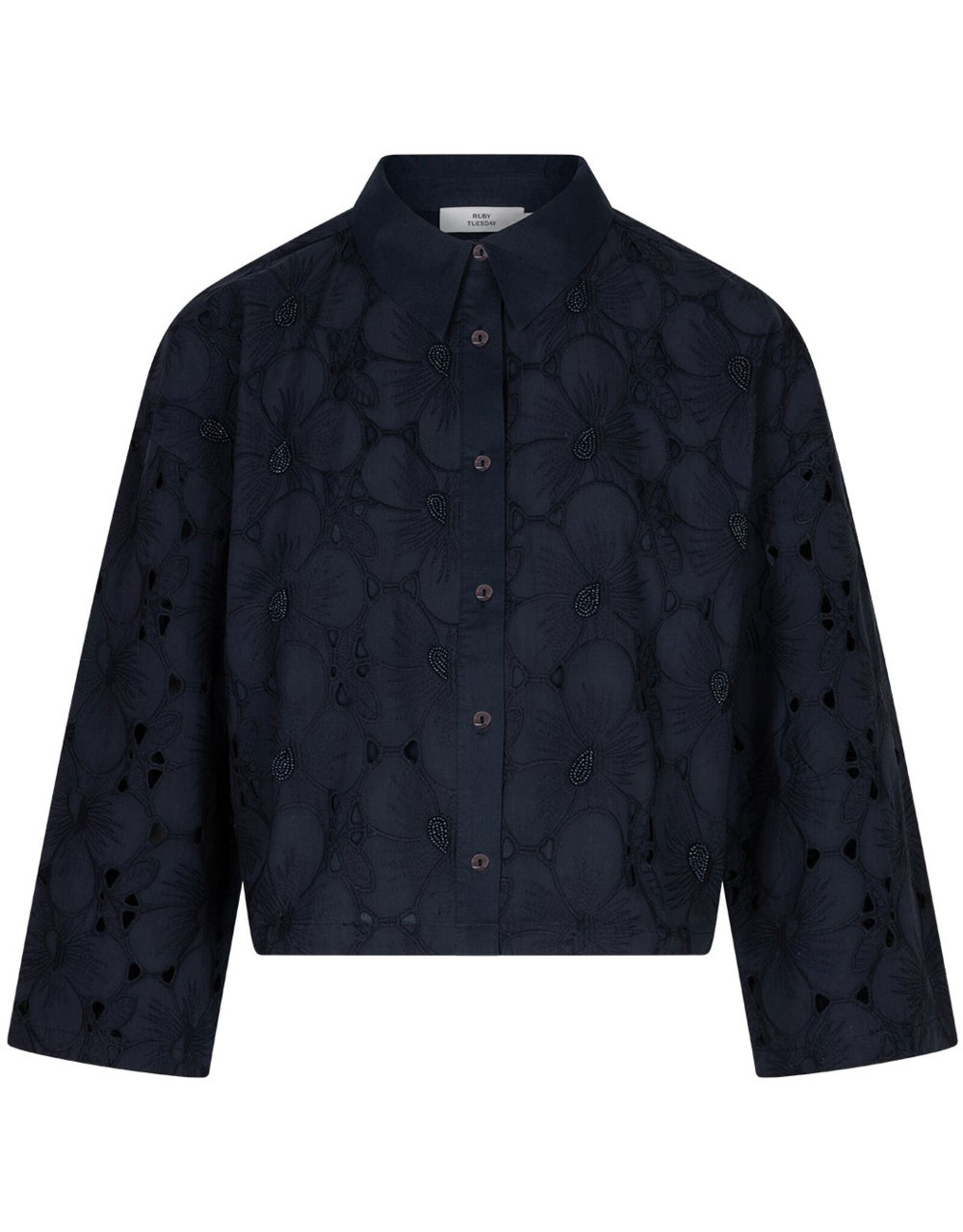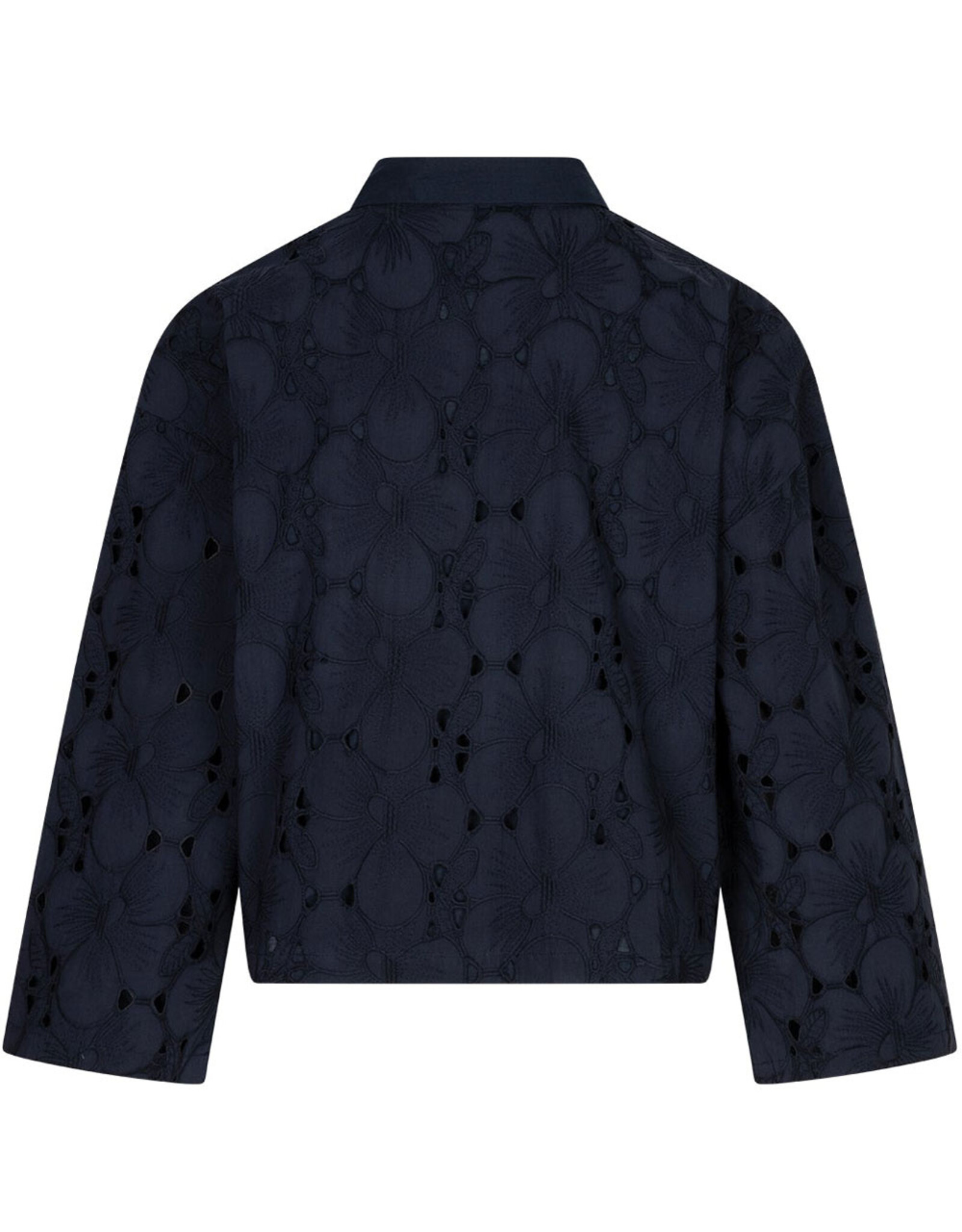 IANTE shirt blouse is een verfijnd, uniek item. Deze blouse, in een tijdloze donkerblauwe kleur, is vervaardigd uit 100% biologisch katoen. Het subtiele borduursel en het kraaltjes patroon geven dit model een unieke en luxe uitstraling. Perfect te combineren met de IARNO embroidered+beads pants voor een complete, stijlvolle outfit. Een veelzijdig item voor een elegante garderobe.