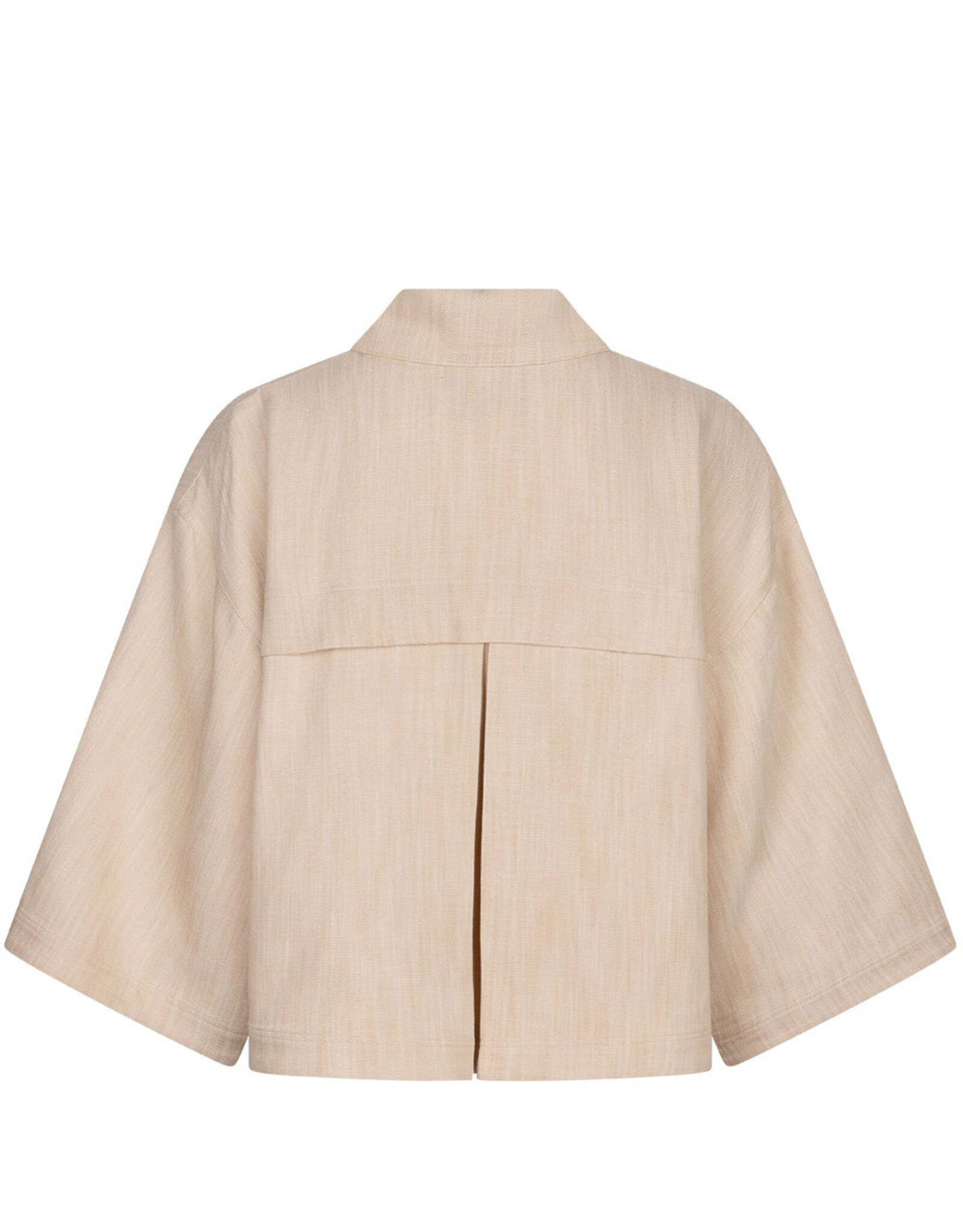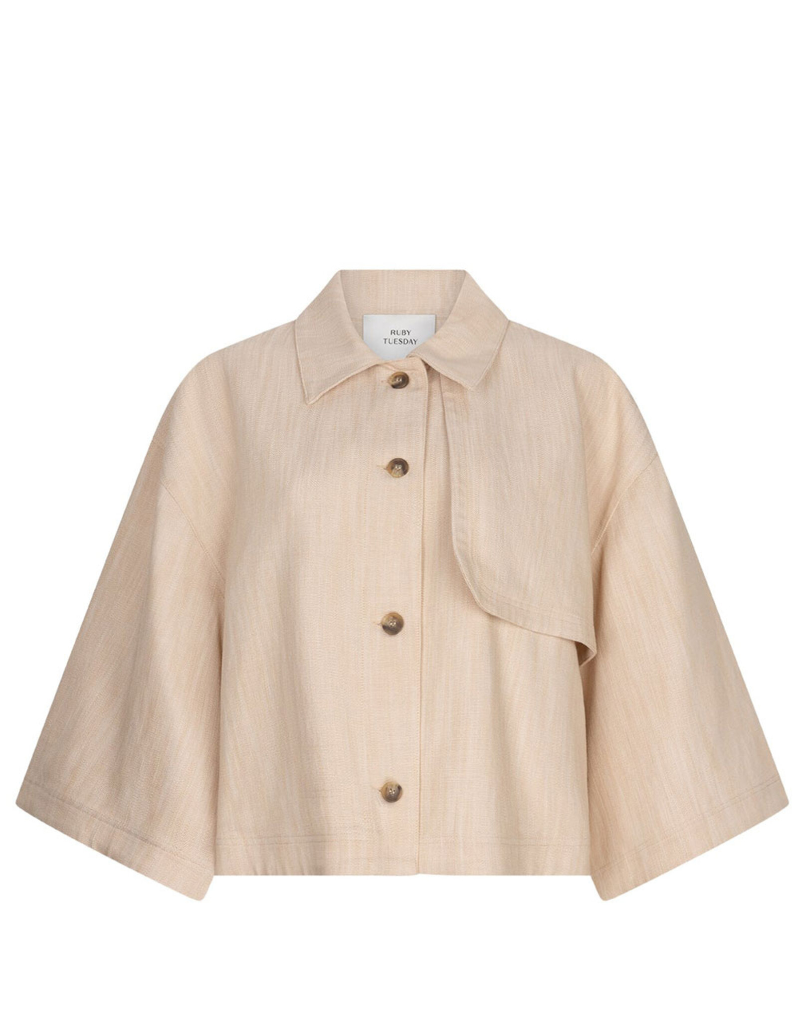 Poncho style jacket in de kleur zand. Een tijdloos en veelzijdig item van Ruby Tuesday. Deze jacket is gemaakt van een hoogwaardige en duurzame kwaliteit stof (80% Ecovero viscose, 19% Polyester, 1% Elastaan). De zandkleurige jacket is een perfecte toevoeging aan jouw garderobe en biedt een effortless chic uitstraling. Combineer het met de PATHO straight trousers of CAULIN pants voor een stijlvolle outfit. Een statement piece dat vakmanschap en elegantie uitstraalt.