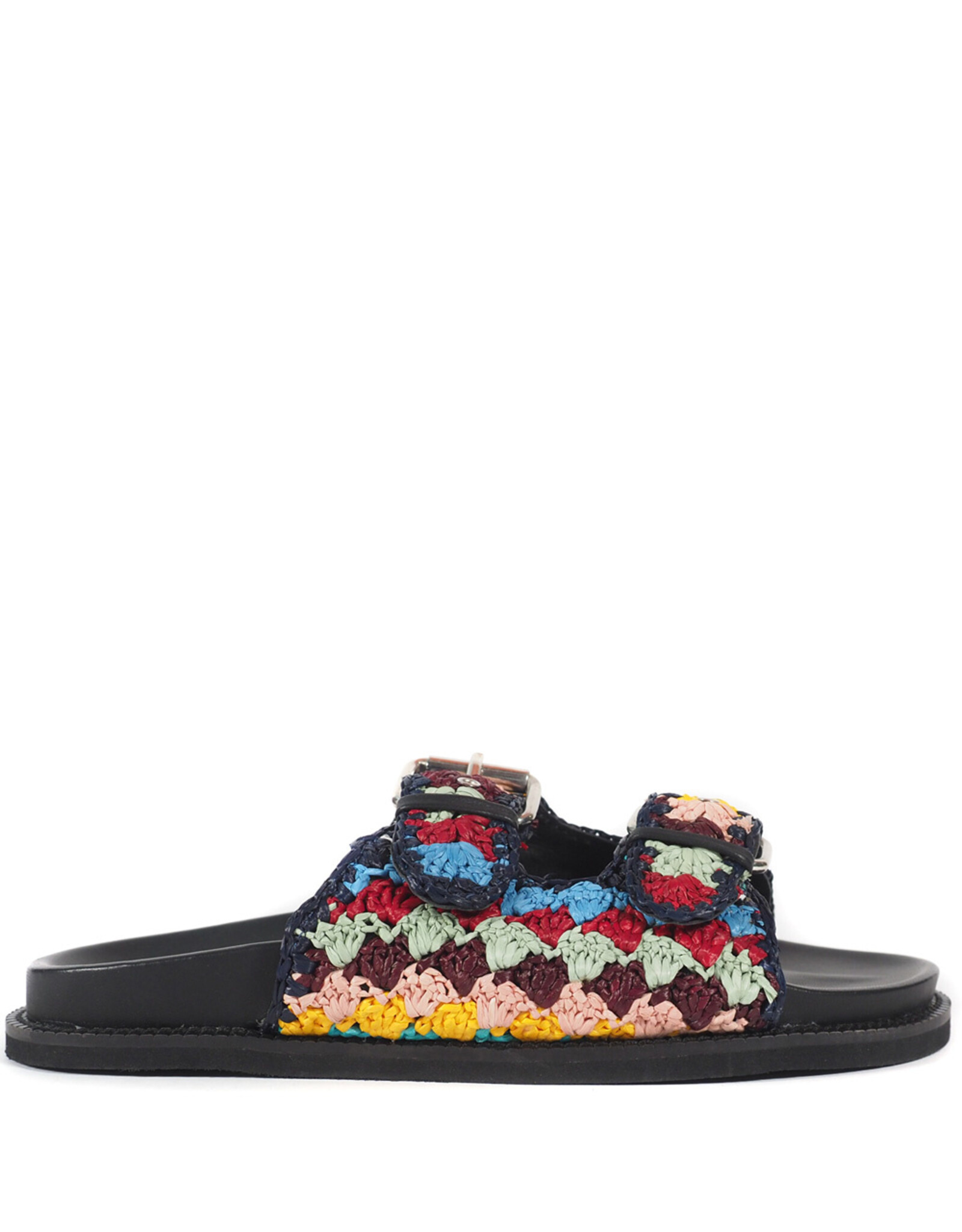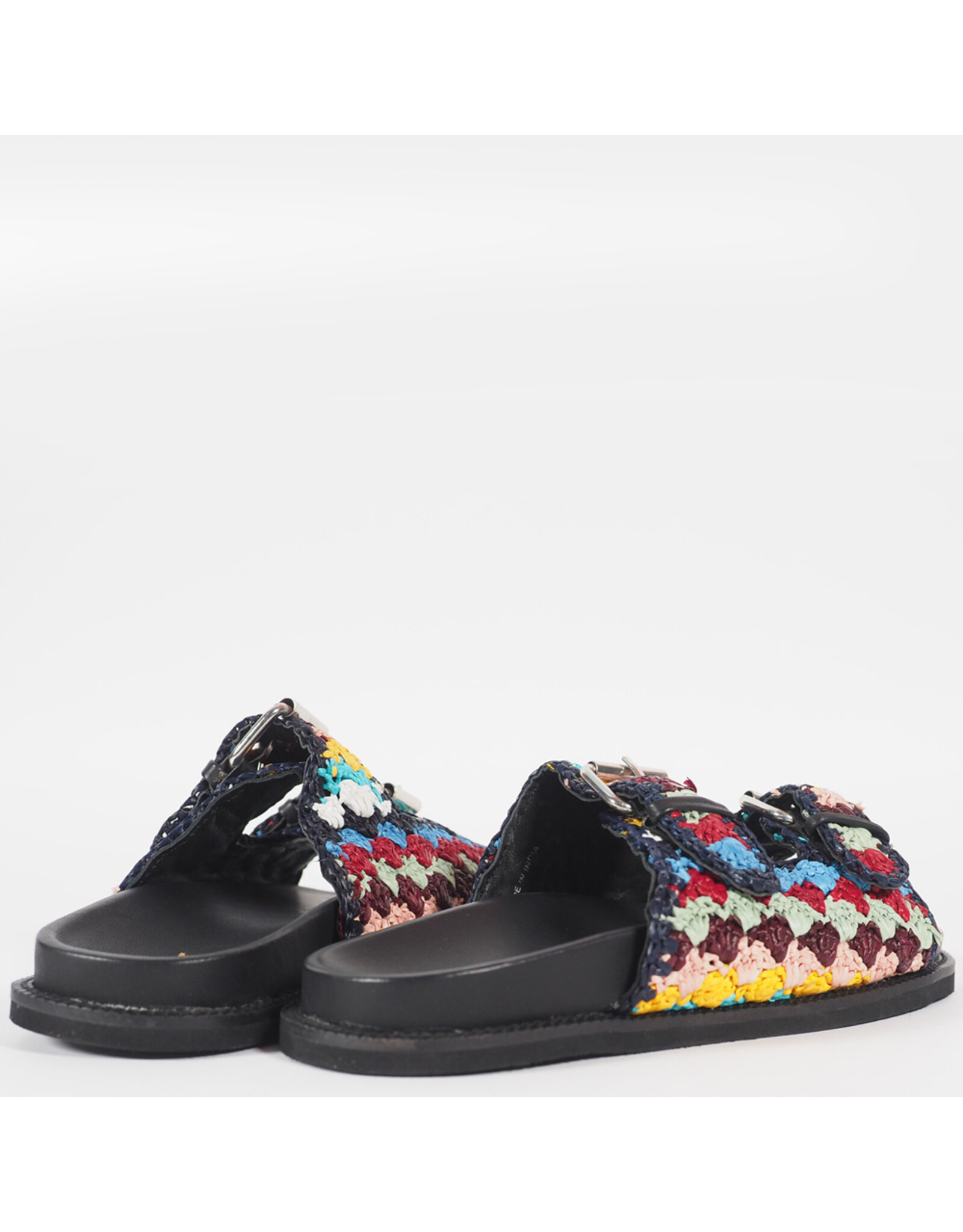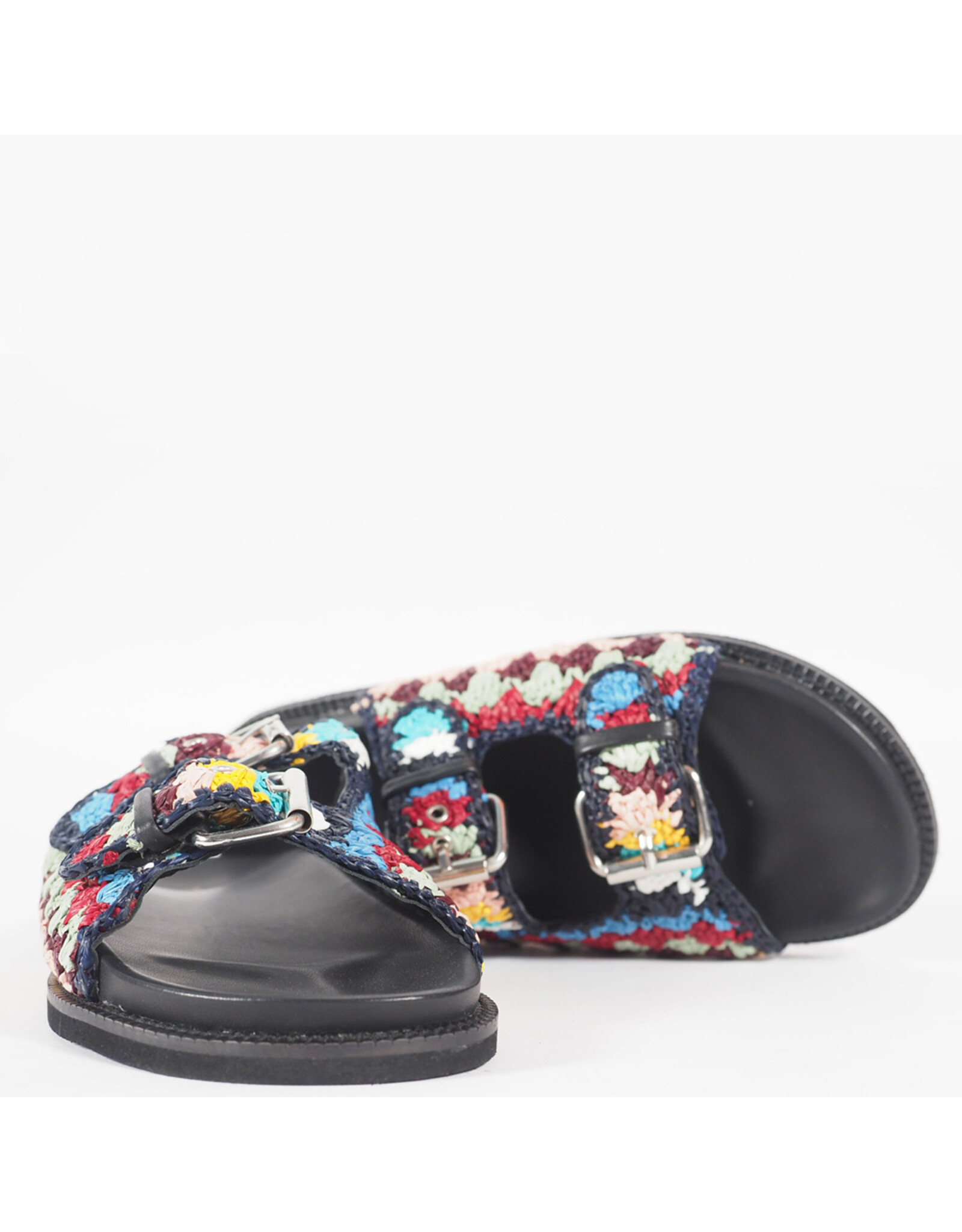 De Nuku sandalen geven je zomergarderobe een frisse, ambachtelijke touch. Ze zijn gemaakt van kleurrijk geweven raffia en hebben verstelbare dubbele bandjes met goudkleurige gespen voor een veilige en stijlvolle pasvorm. De zachte zool zorgt voor comfort de hele dag, waardoor ze de perfecte combinatie zijn van functionaliteit en charme.