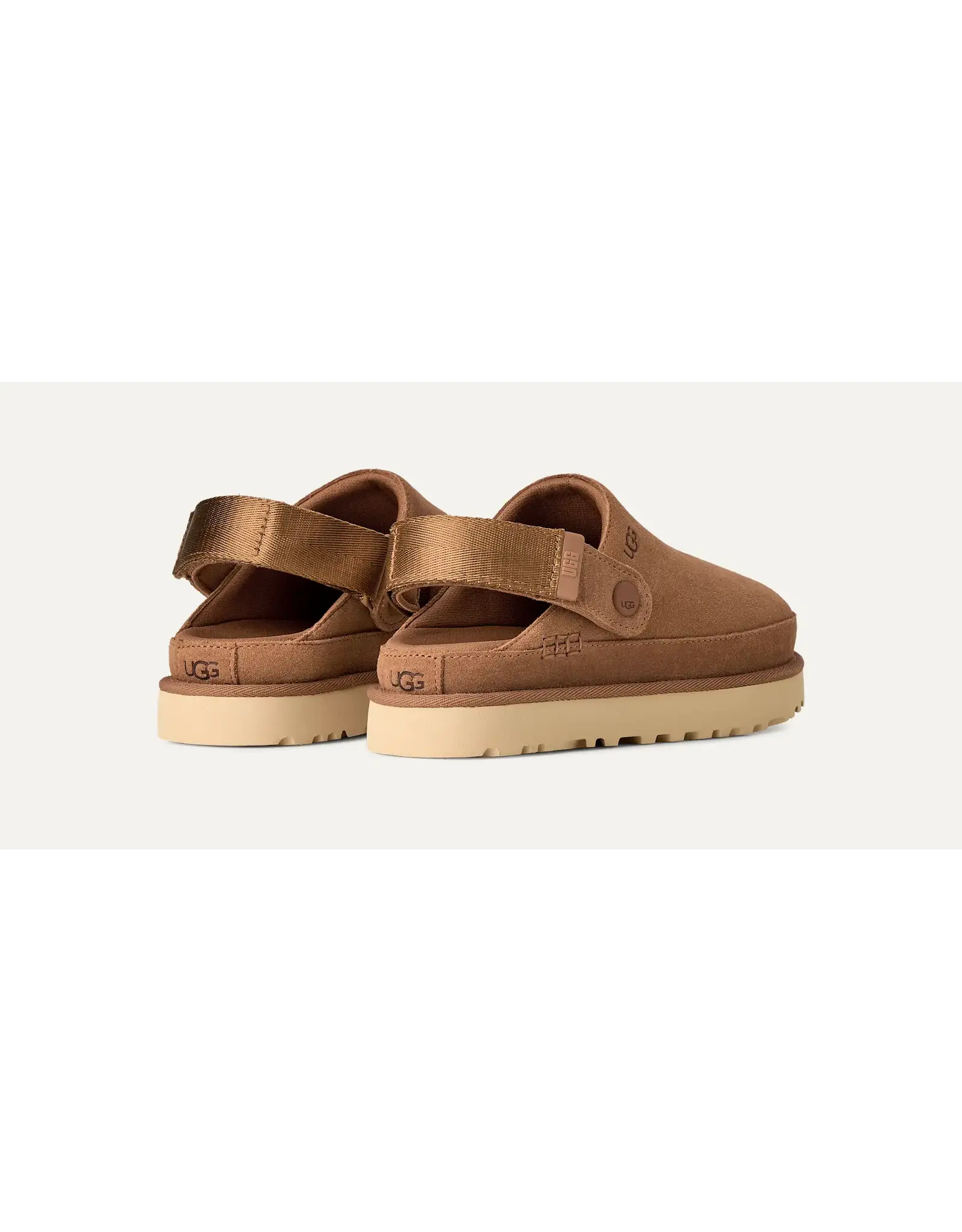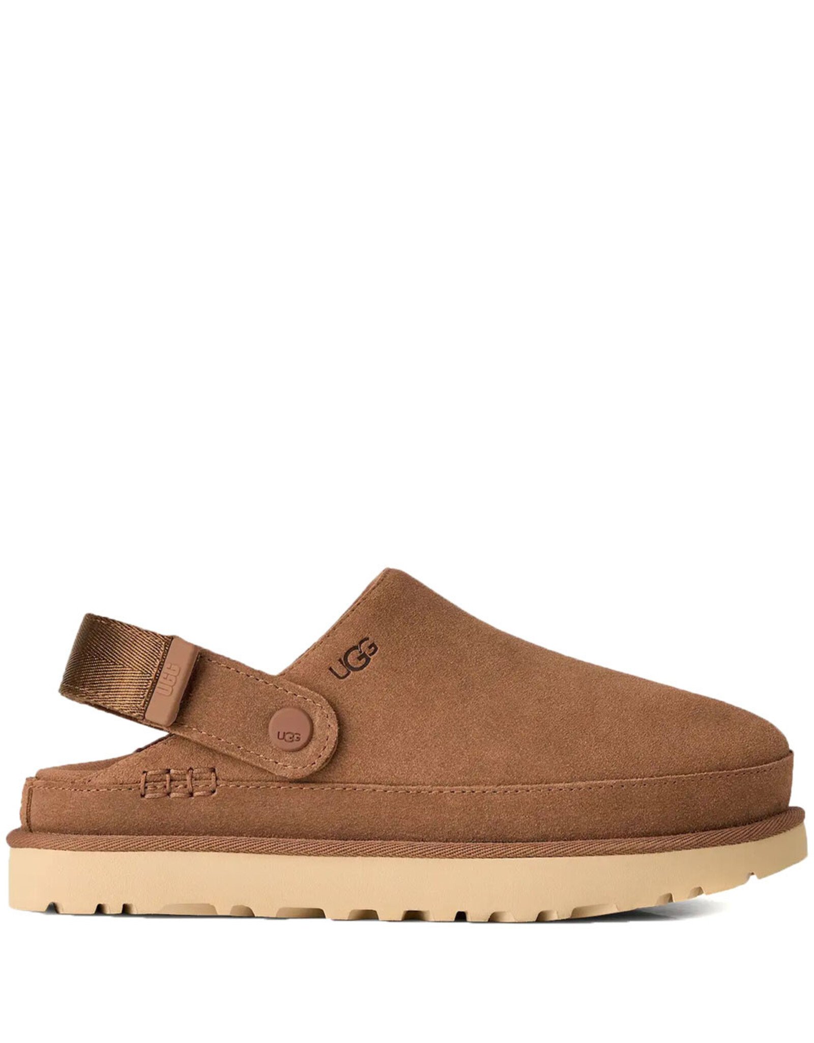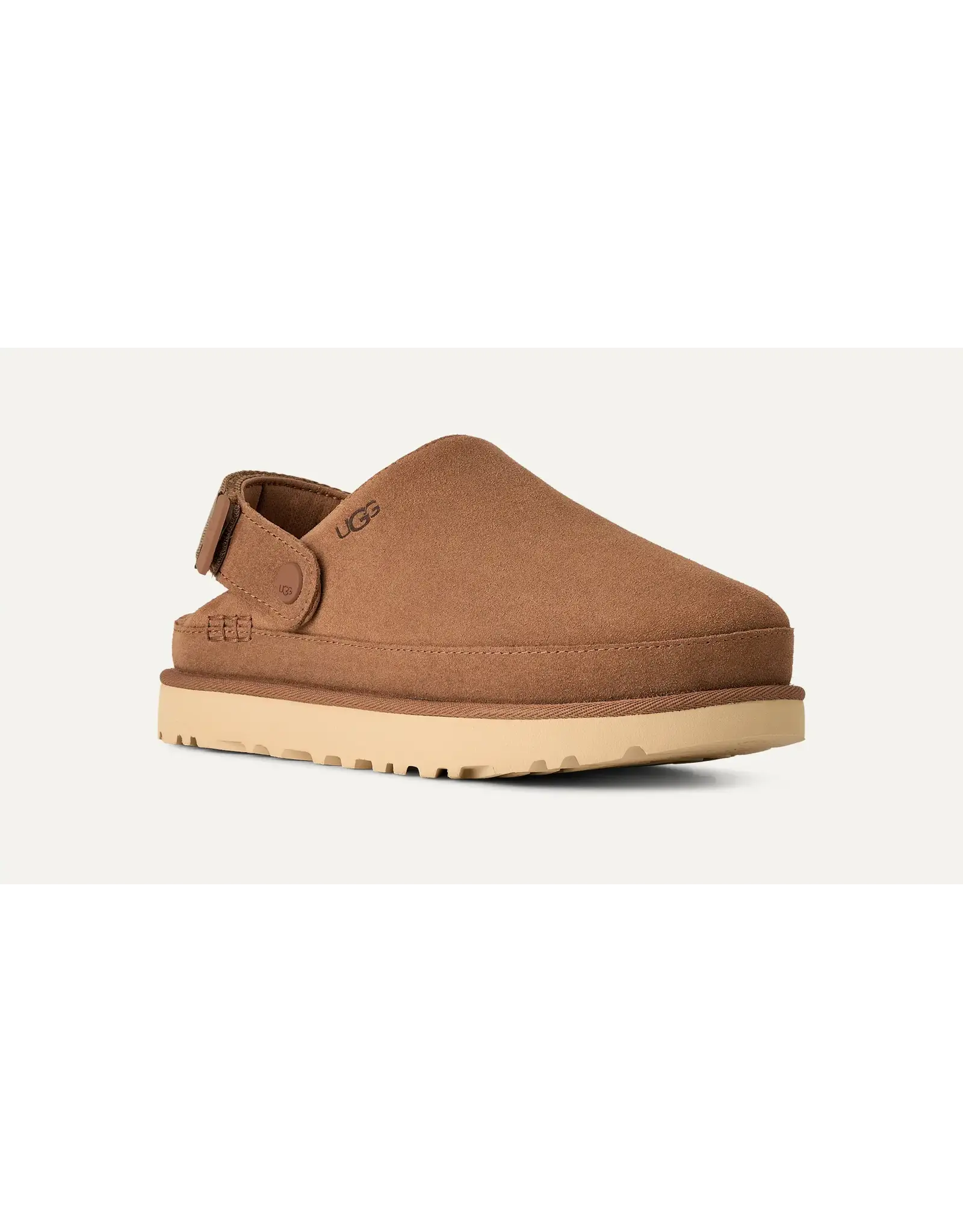 Deze veelzijdige klomp met plateauzool is gemaakt van fluweelachtig suède en past overal bij. Als je naar een klomp grijpt, wil je comfort, en de Goldenstar-klomp levert dat! De hielband heeft een draaibaar ontwerp voor een 2-in-1-draagoptie. Draag hem als een hielbandje of gelaagd over de bovenkant voor gemakkelijk aan- en uittrekken. Een ultralichte buitenzool die de hele dag demping en ondersteuning biedt. De buitenzool van dit product is ofwel een EVA-buitenzool van suikerriet, een verantwoorde samenstelling die schuim bevat dat gemaakt is met suikerriet, waardoor we de afhankelijkheid van fossiele brandstoffen kunnen verminderen door ethyleen op basis van aardolie te vervangen, of een Treadlite by UGG™-buitenzool.