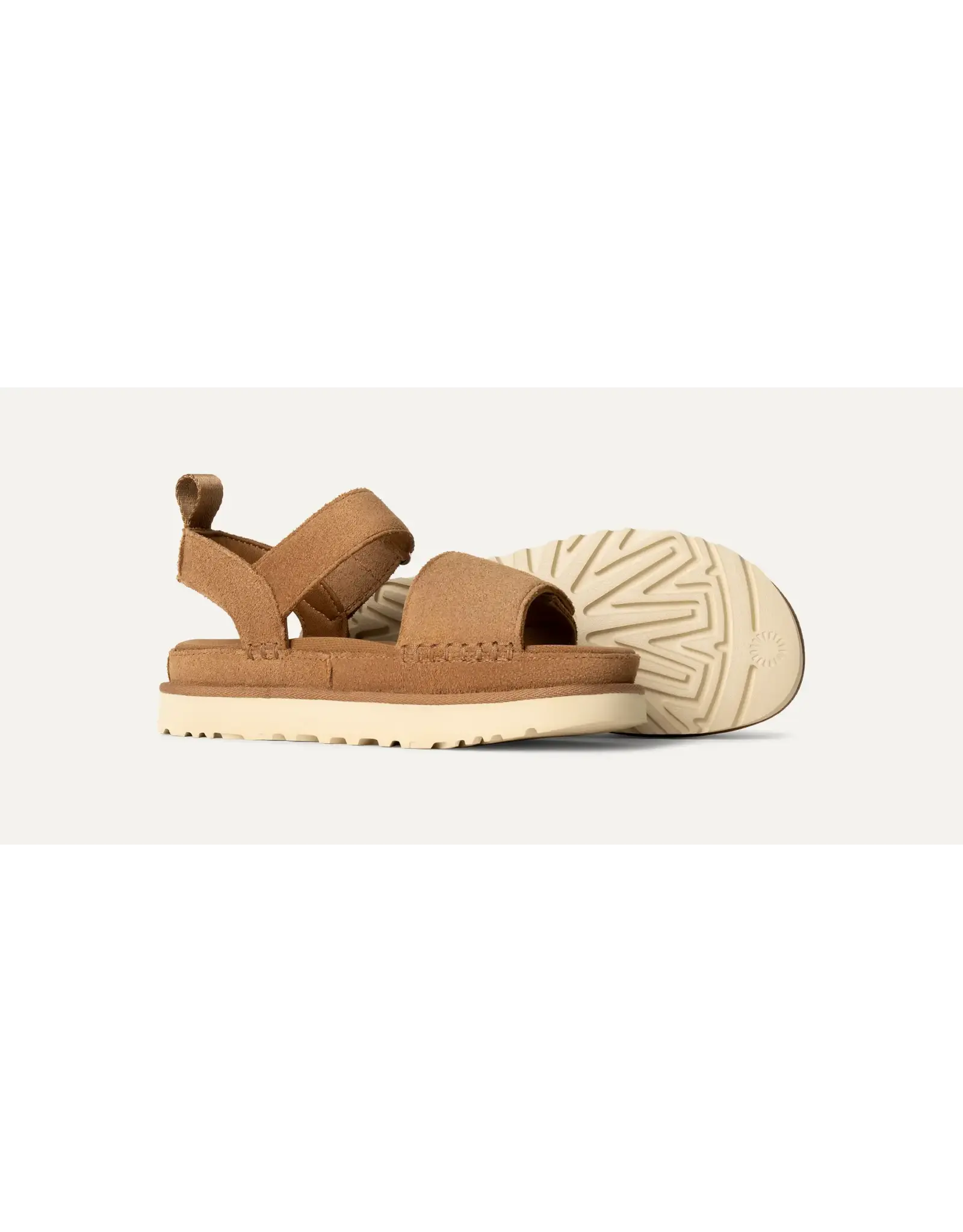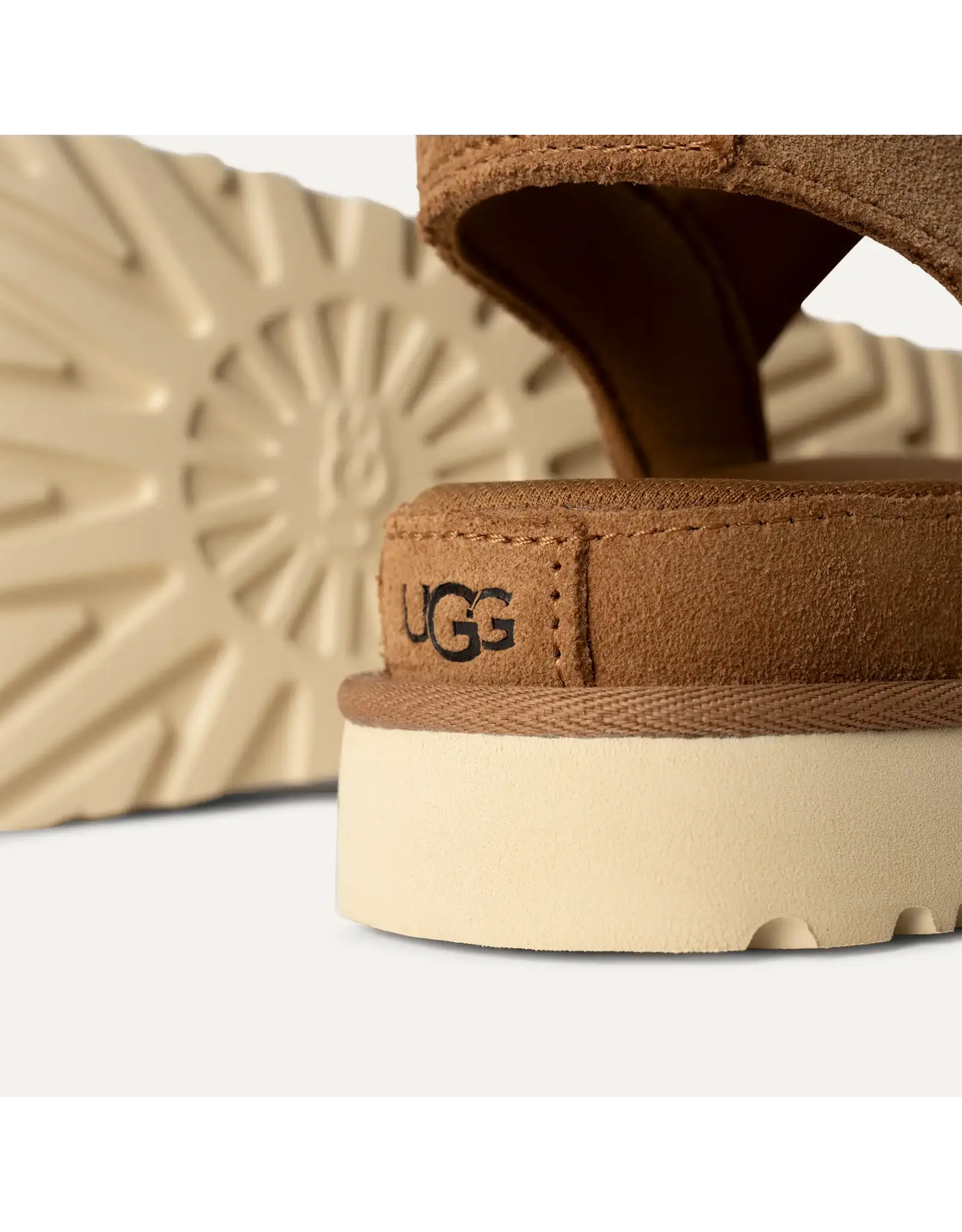 Jij bent een ster. Dit is de Goldenstar. Jullie zijn voor elkaar voorbestemd. Deze sandaal voelt net als de Classic UGG®-laars. Hij is gemaakt van fluweelzacht suède en voorzien van een ultrazacht maar ondersteunend voetbed van schuim en een lichtgewicht buitenzool, zodat je hem de hele dag door kunt dragen. Twee sets verstelbare bandjes zorgen voor een perfecte pasvorm voor comfortabele dagen onderweg. Kom bij de Goldenstar-fanclub. De buitenzool van dit product is ofwel een EVA-buitenzool van suikerriet, een verantwoorde samenstelling die schuim bevat dat gemaakt is met suikerriet, waardoor we de afhankelijkheid van fossiele brandstoffen kunnen verminderen door ethyleen op basis van aardolie te vervangen, of een Treadlite by UGG™-buitenzool. Dit product is gemaakt in een fabriek die vrouwen in onze toeleveringsketen ondersteunt met hulp van het HERproject. Dit samenwerkingsinitiatief gaat partnerschappen aan met merken zoals het onze om de zelfredzaamheid en opleidingsmogelijkheden van vrouwen op de werkvloer te stimuleren.