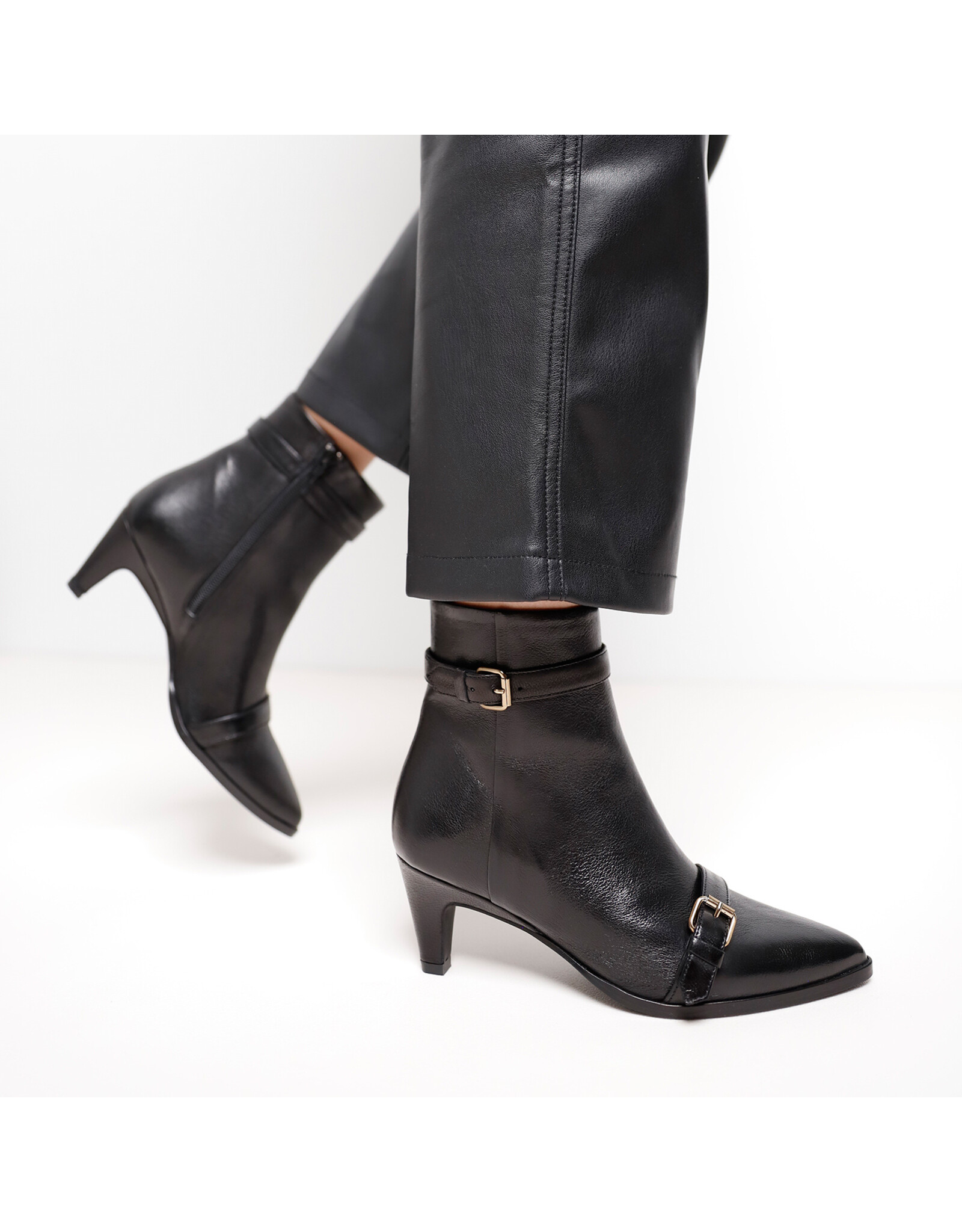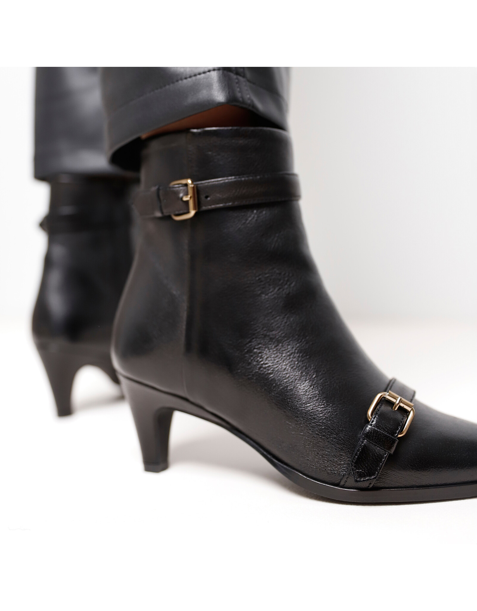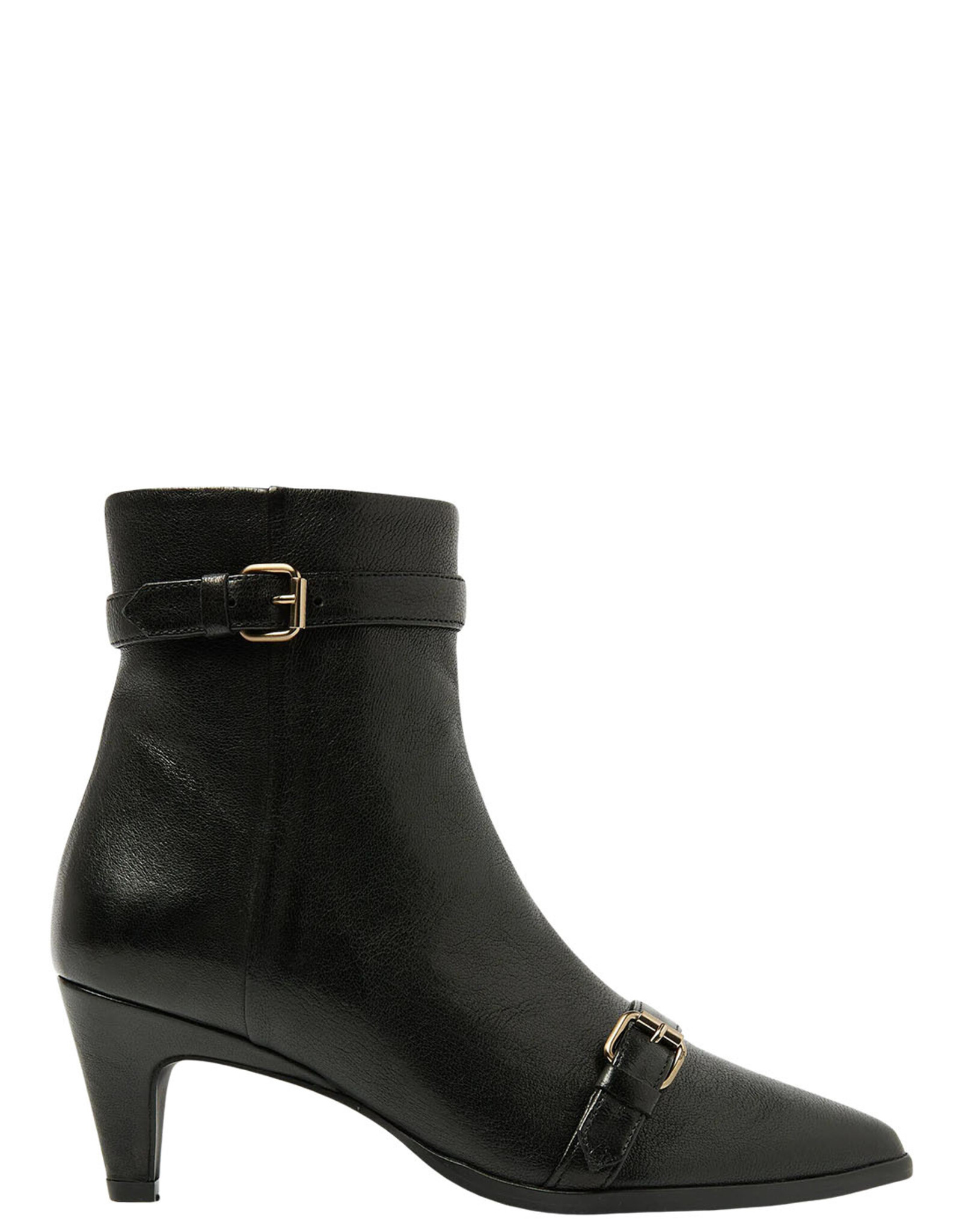 Classy meets cool. De Lina Dante boot van Via Vai is een laarsje met pit! Daar zorgen de kitten heel en spitse neus voor. De goudkleurige buckles op de wreef en om de schacht geven juist weer een stijlvolle en vrouwelijke touch aan het geheel. Dankzij de uitvoering in hoogwaardig Italiaans leer krijgen de zwarte laarsjes een luxueuze uitstraling.