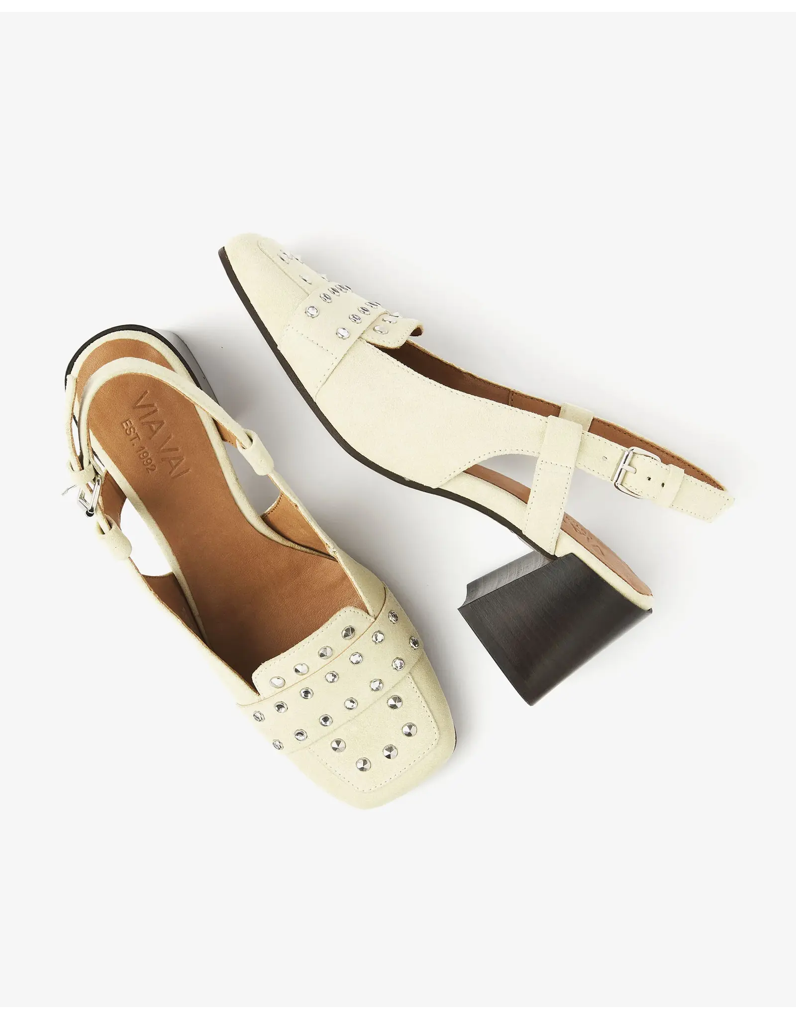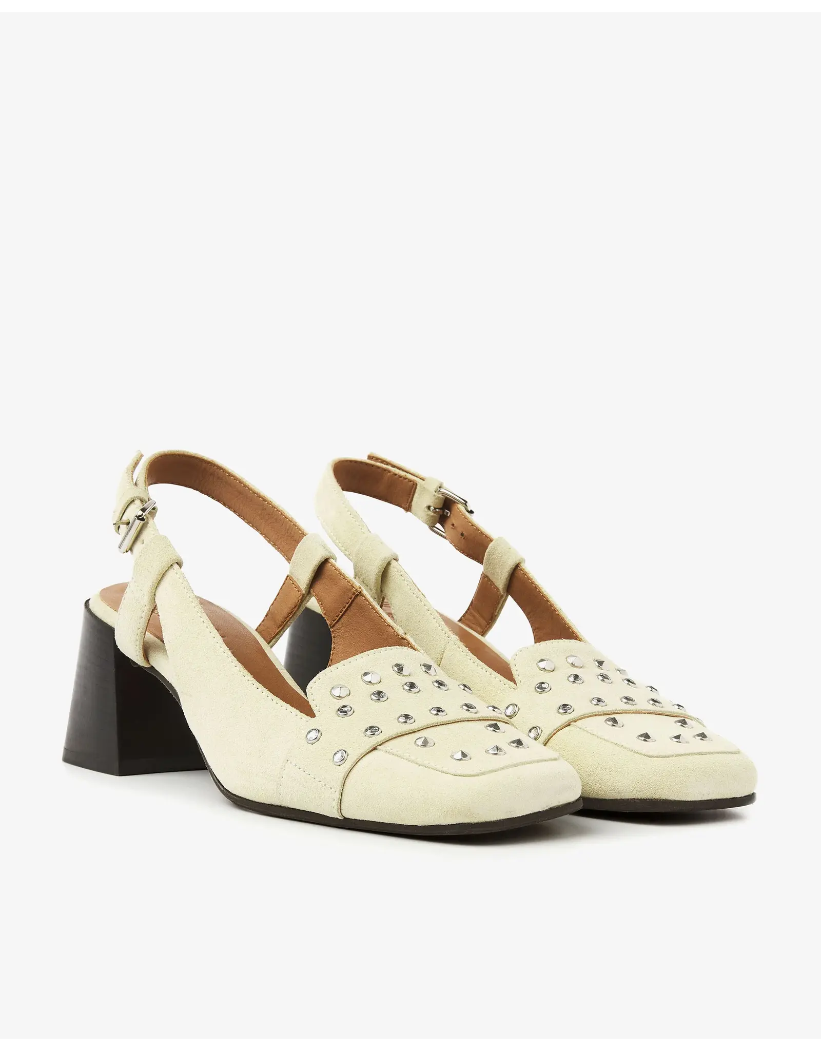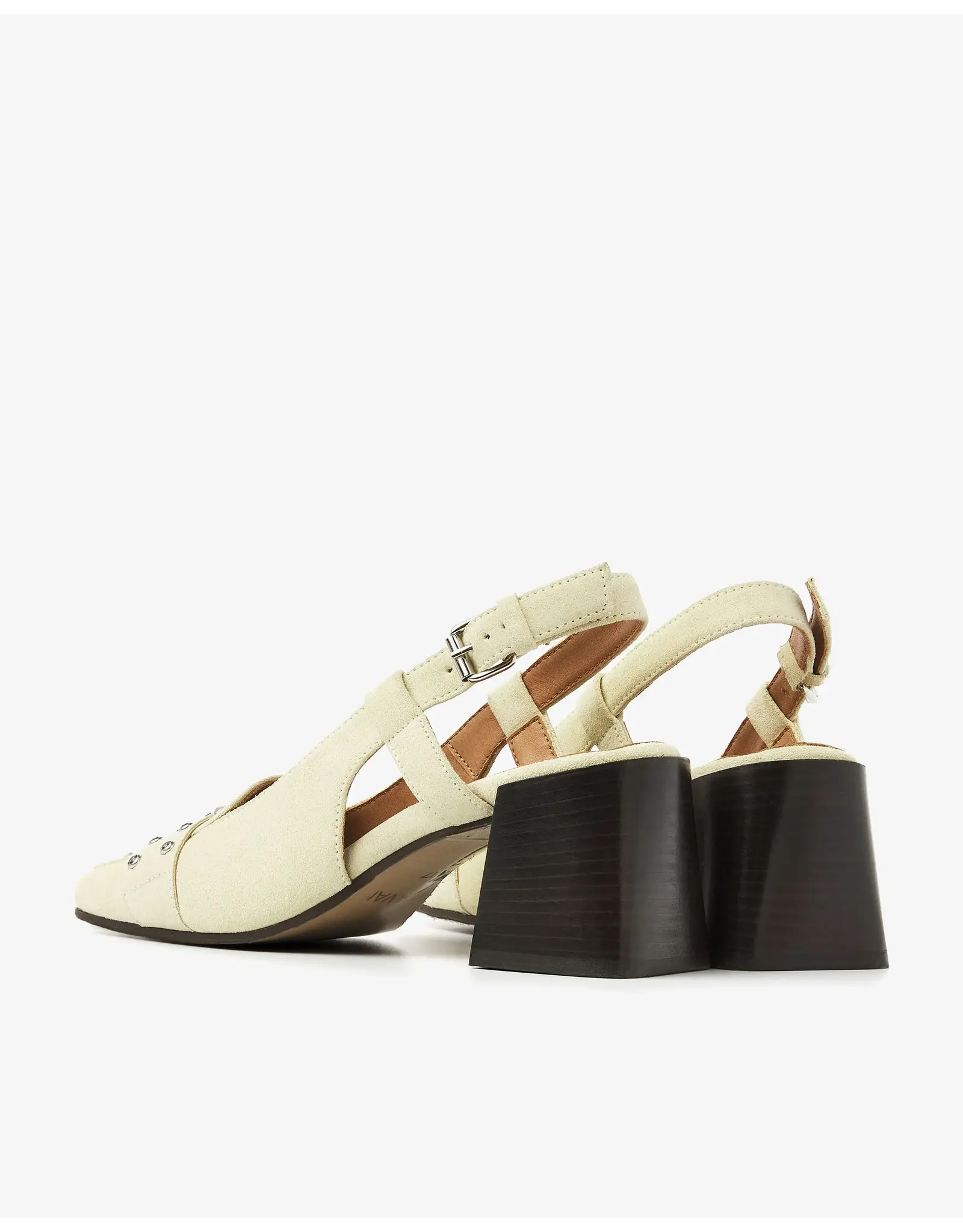 Meet Laine Julia, dé slingback die jouw outfit letterlijk en figuurlijk naar een hoger niveau tilt. Deze gele slingback is uitgevoerd in hoogwaardig suède en valt op door de eyectaching details. De zilveren studs op de neus creëren een playful look, terwijl de stevige blokhak zorgt voor een elegante uitstraling. De VIA VAI slingback is voorzien van een verstelbare sluiting en een leren binnenvoering. Ga voor een stijlvolle look met Laine Julia!